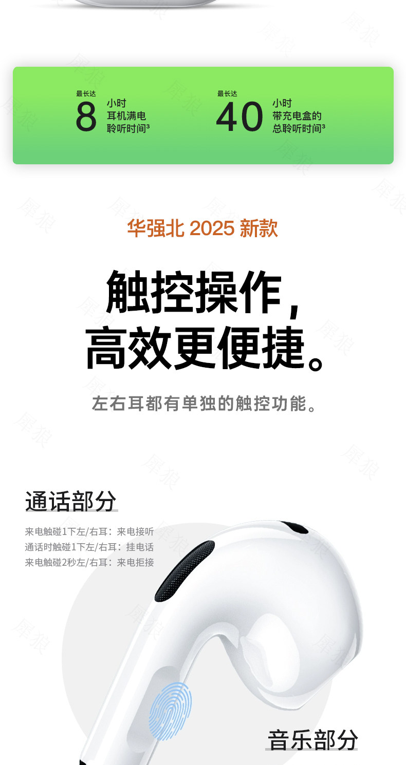 Huaqiang North наушники 7 поколений адаптация 2025 Новый беспроводной шумоподавление HD качество звука Bluetooth 50 двусторонний стереозвук