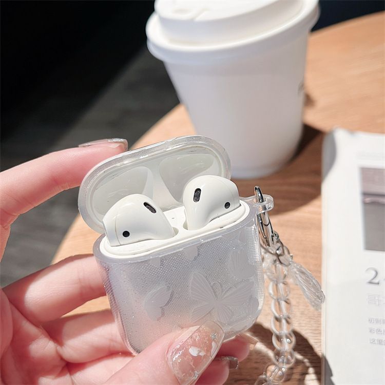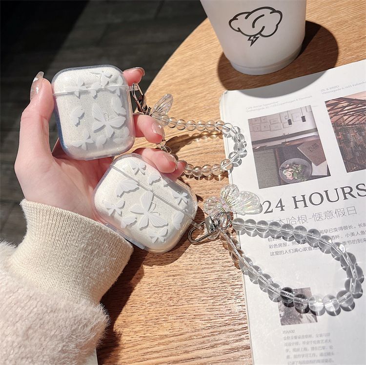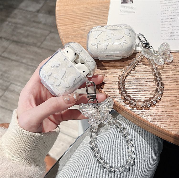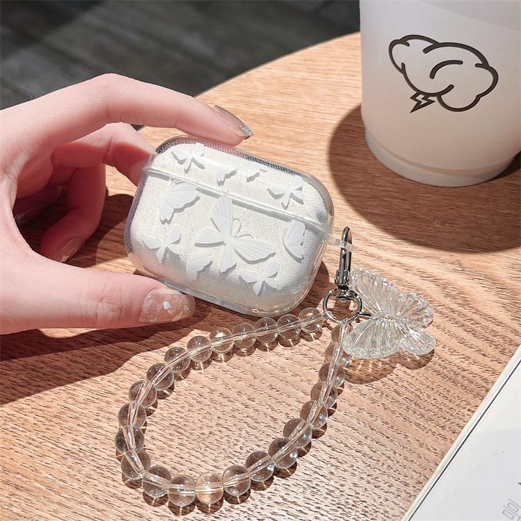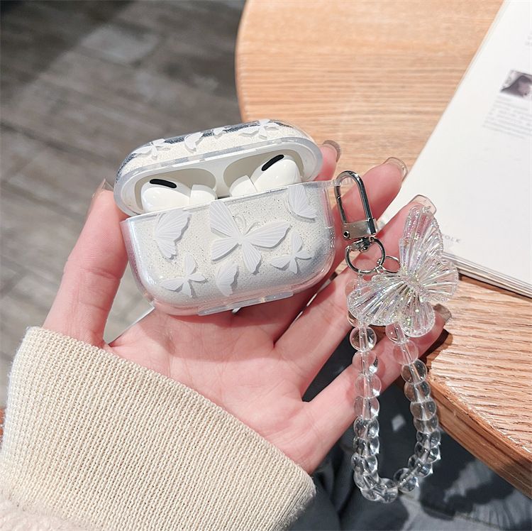 适用苹果站立闪粉ins满屏白色蝴蝶airpods 4蓝牙耳机壳保护套pro3