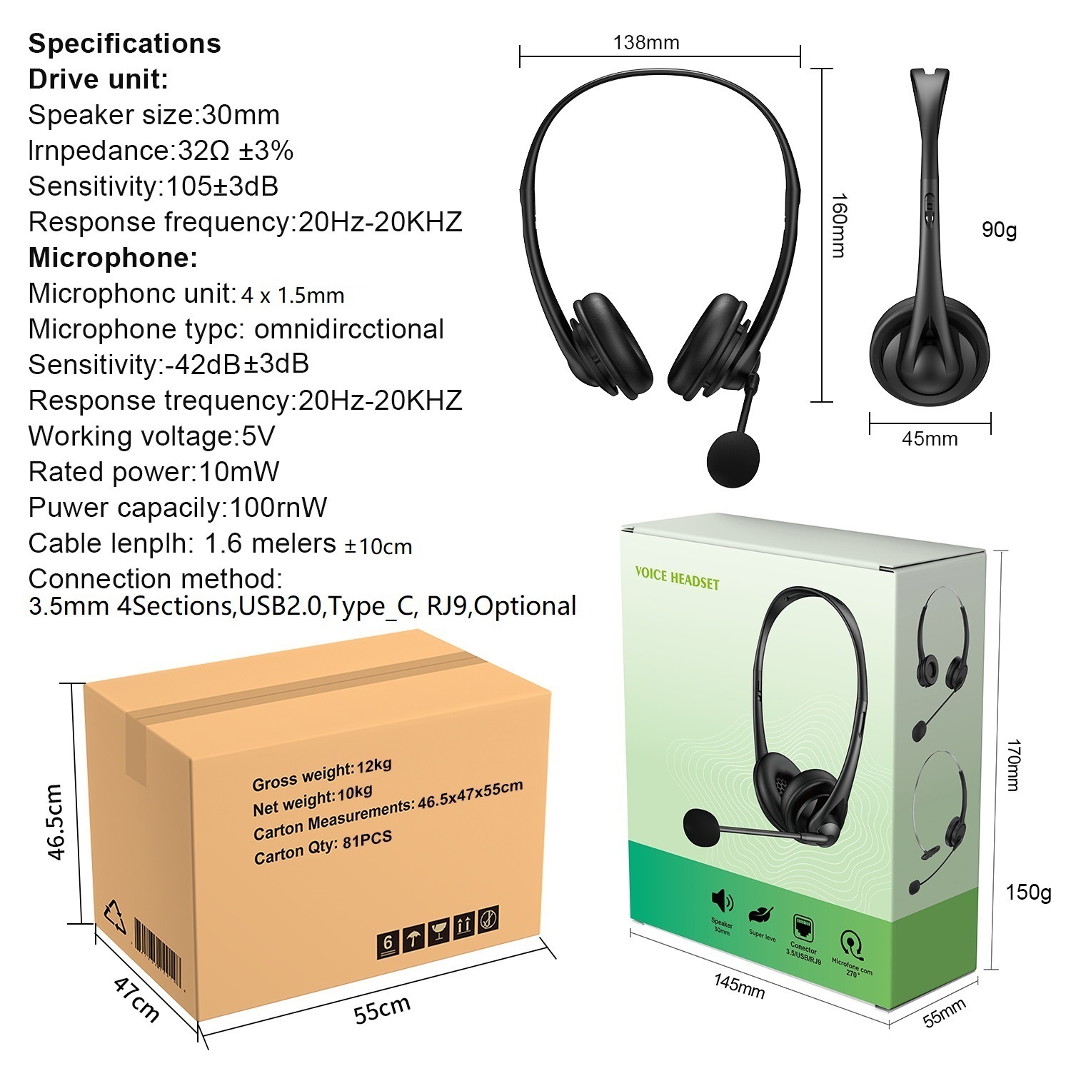 Телефонные наушники USB прослушивание шумоподавление наушники Huaqiang North Компьютерные студенты учатся обслуживать клиентов Новый трансграничный