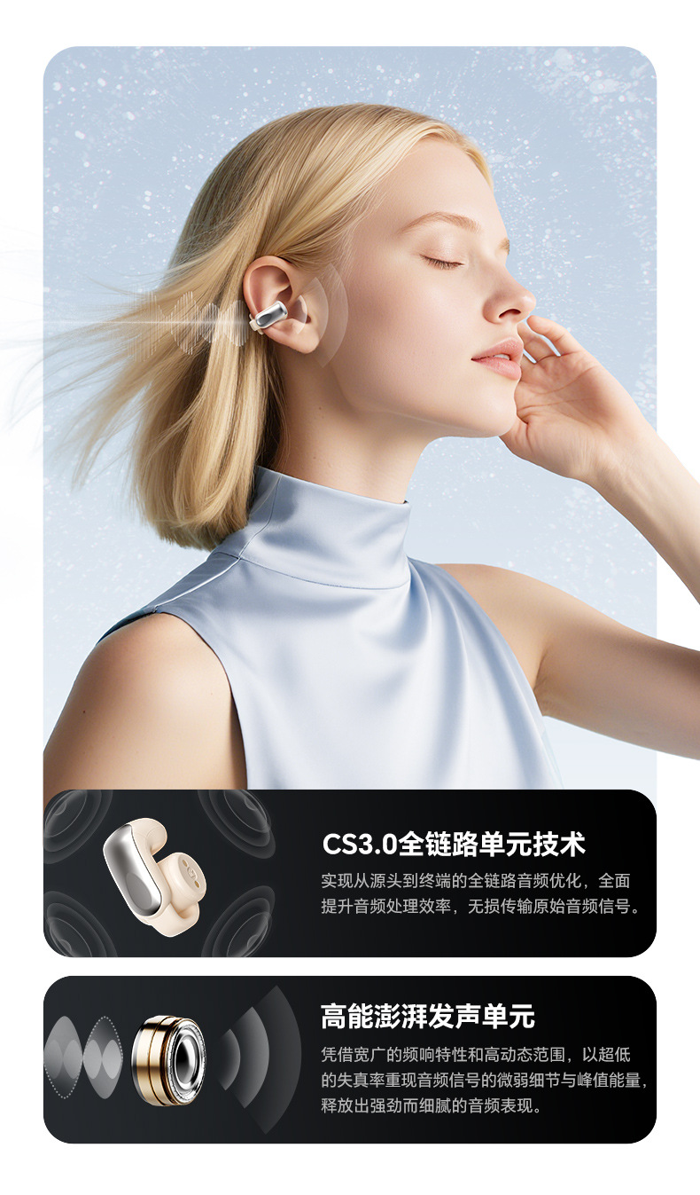 2025 Cross border Ear Clip Type New AI Translation Bluetooth Earphone Clip Long Range Sports Noise Reduction Wireless Earphones