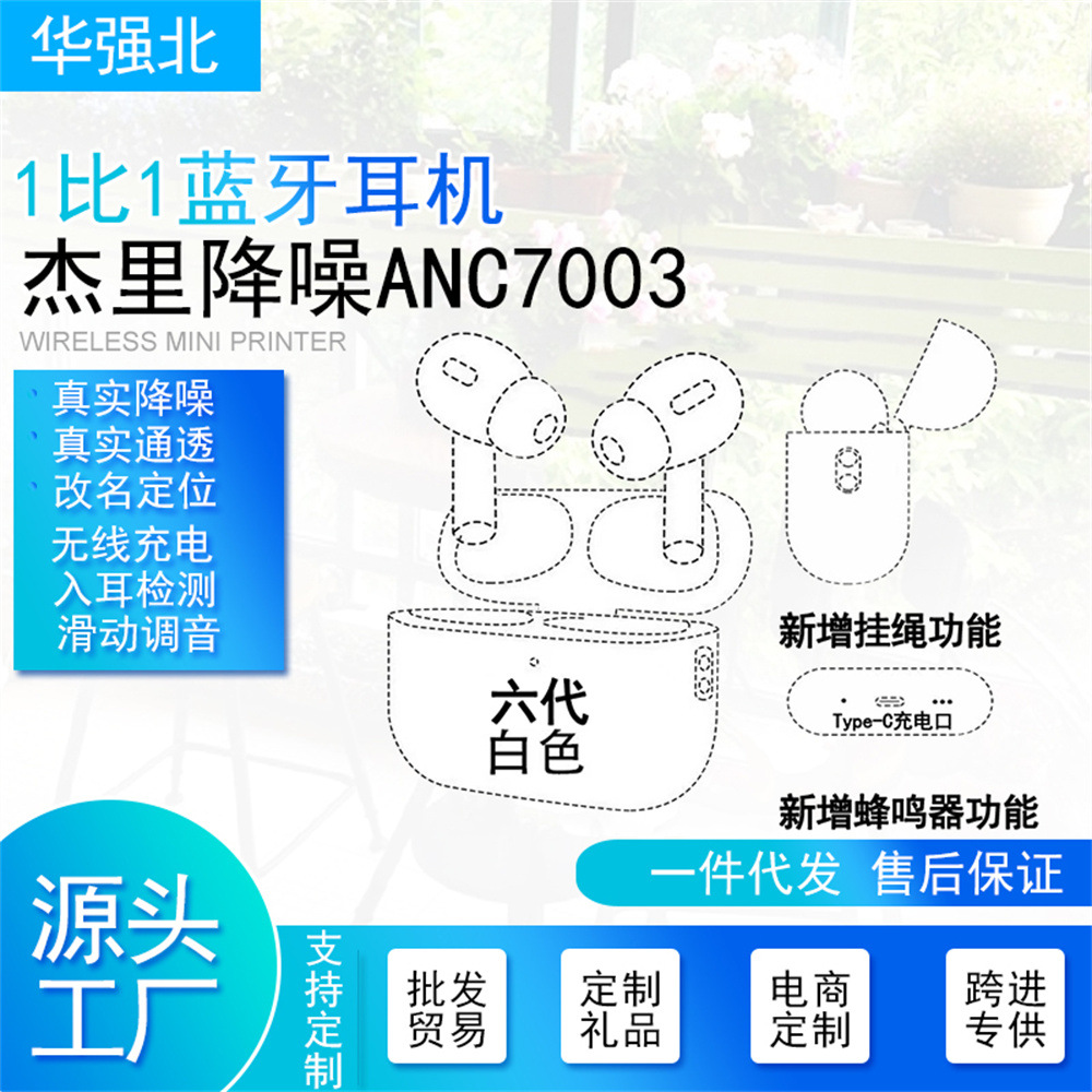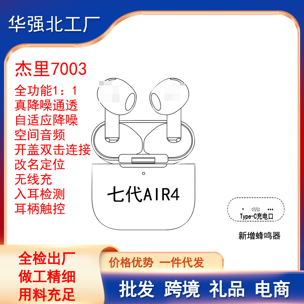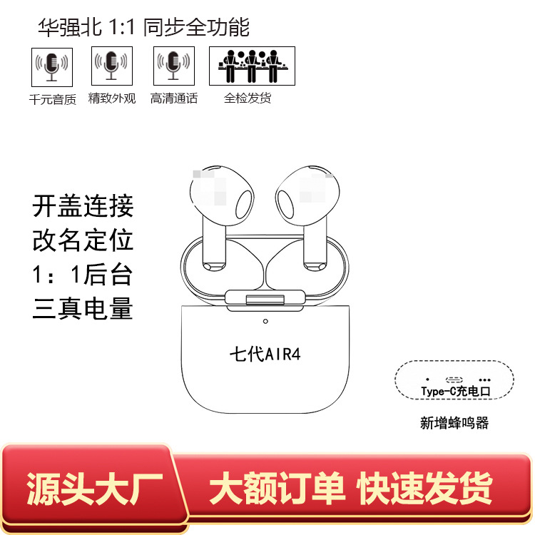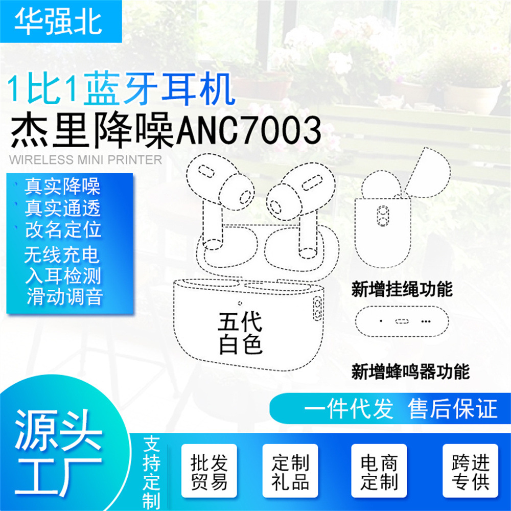 控制方式:入耳检测(光感) +降噪模式(真实)+通透模式(真实)+蜂鸣器+滑动音量调节+无线充电+开盖连接+改名定位+空间音频
