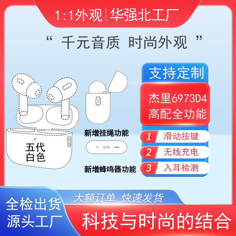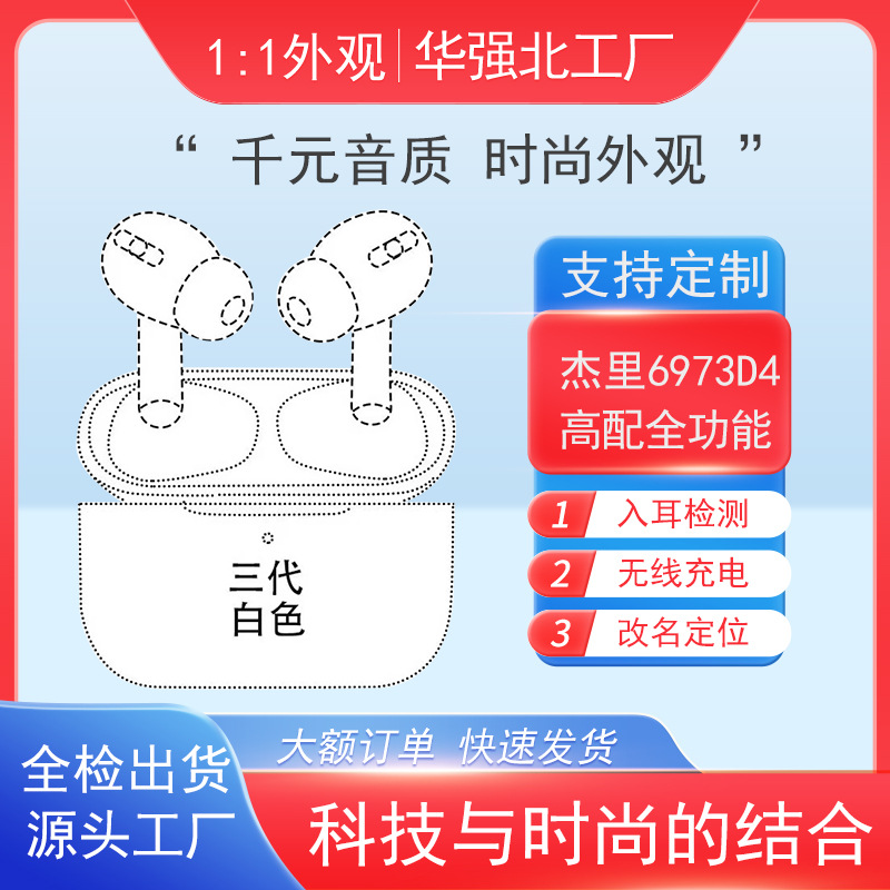 控制方式:新链接三真+磁吸无线充电+入耳检测(体感) +开盖连接+改名定位全套+空间音频