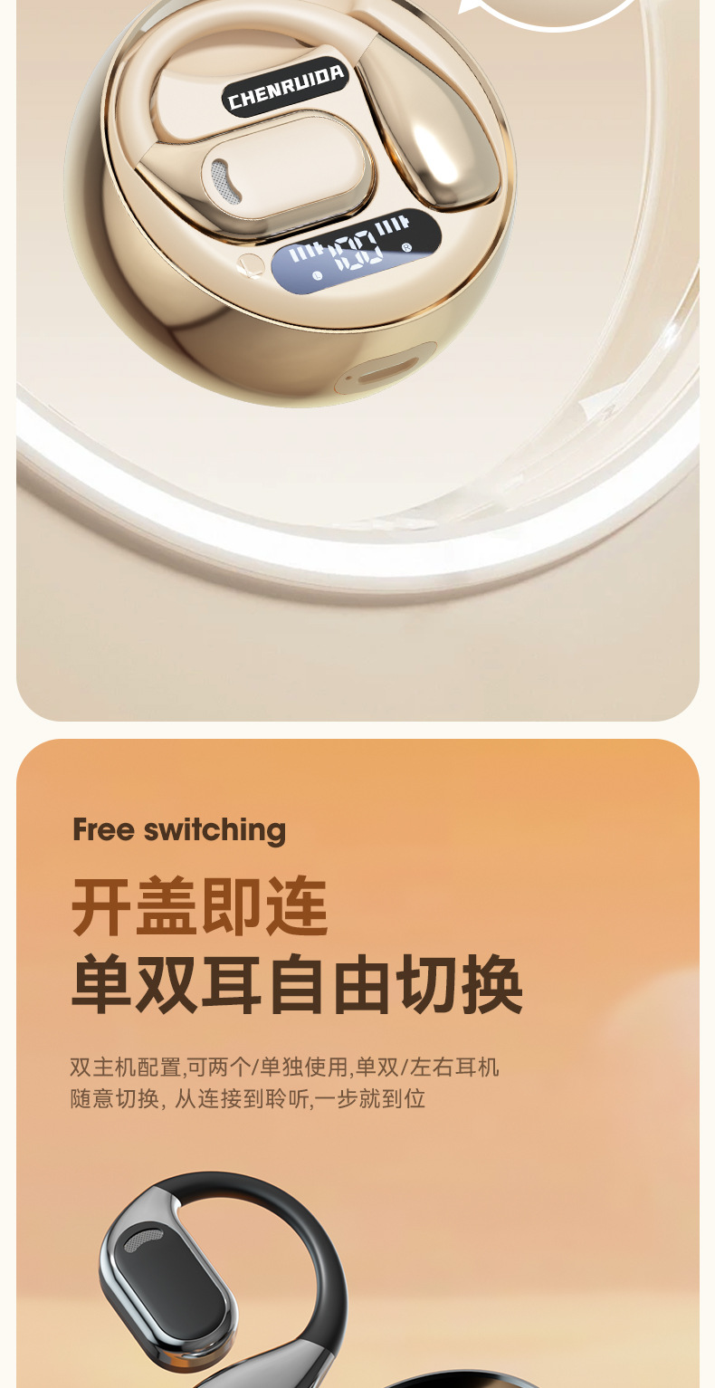 | function | bone conduction;Long-lasting battery life;call function;voice control;Support music;Digital display screen;E-sports low latency;other |