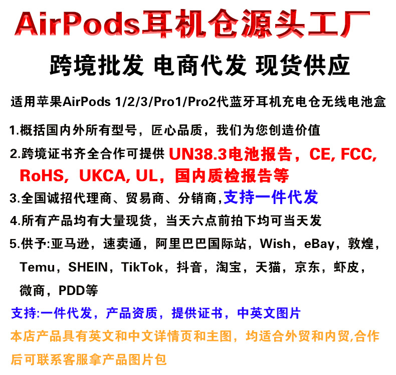 适用苹果AirPods Pro1/2/3充电仓电池盒蓝牙耳机配件单卖跨境专供