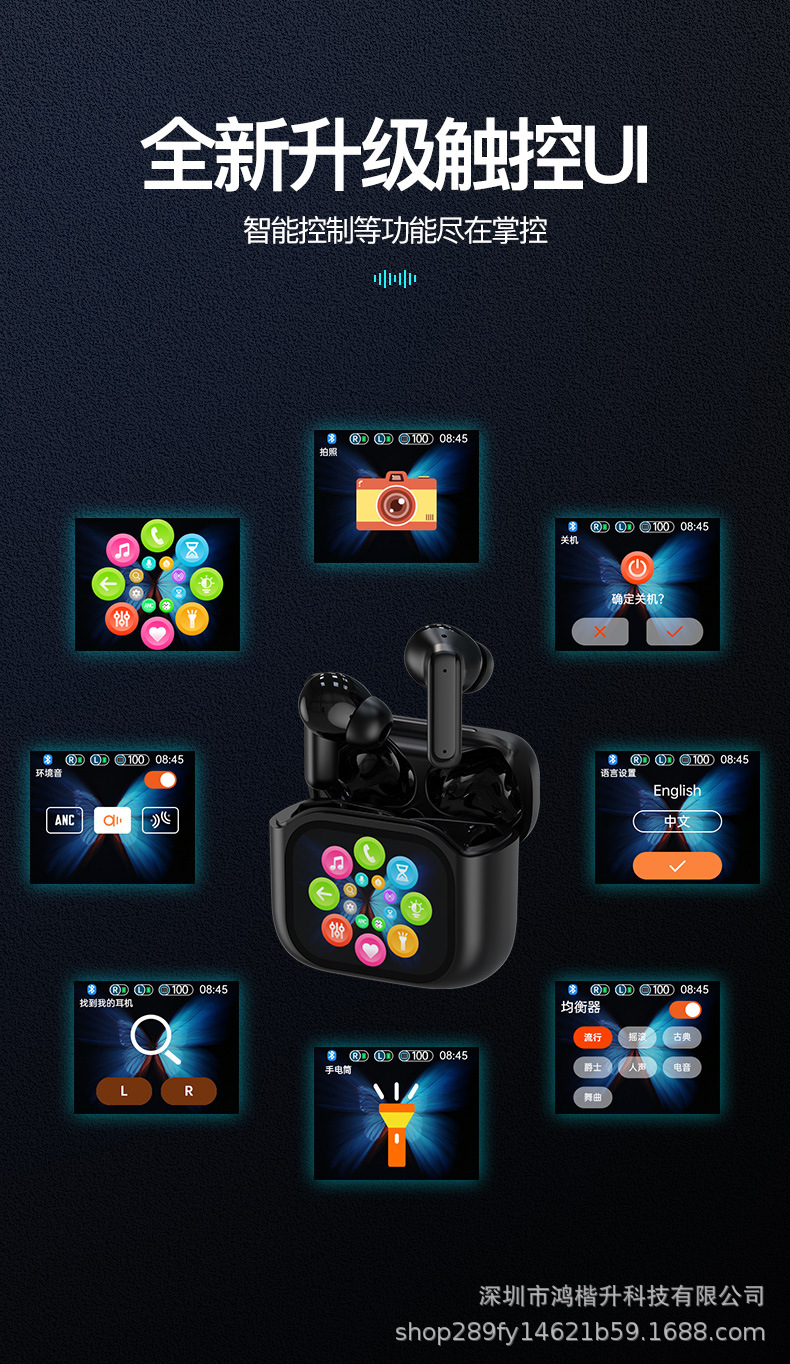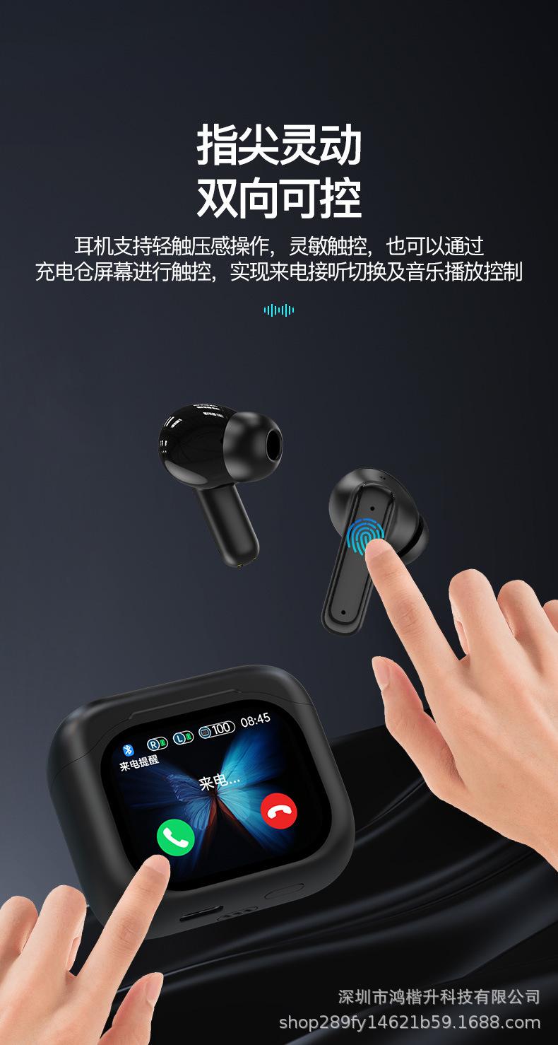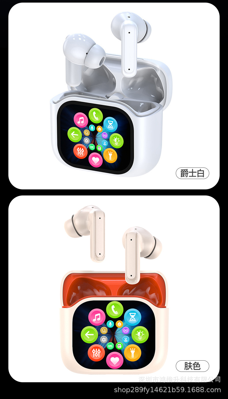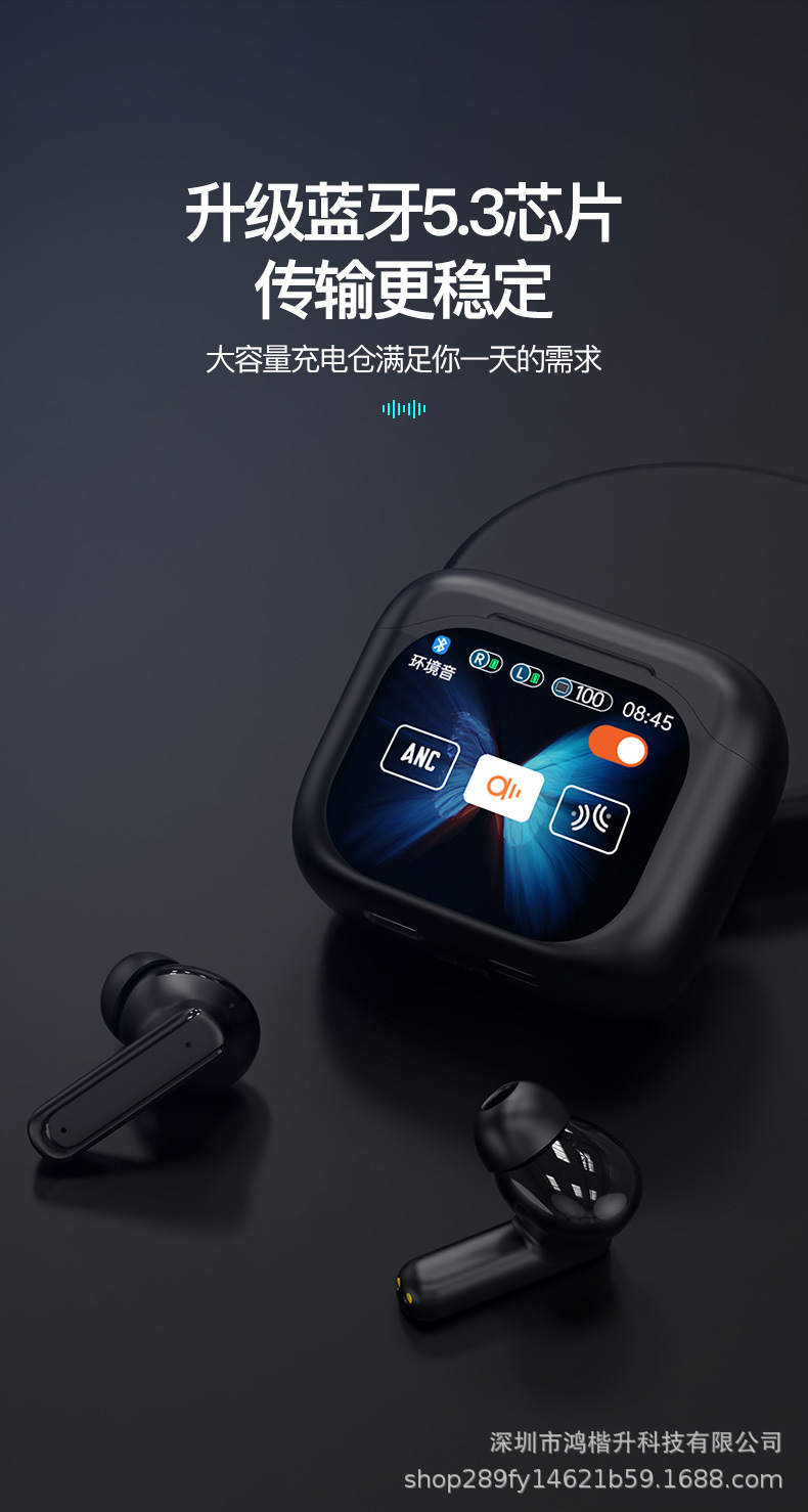 2024新款触屏降噪智能蓝牙耳机定制logo跨境外贸亚马逊热销爆款ENC/ANC降噪蓝牙耳机无线长续航入耳LCD彩屏商务运动耳机tws华强北耳机深圳数码,