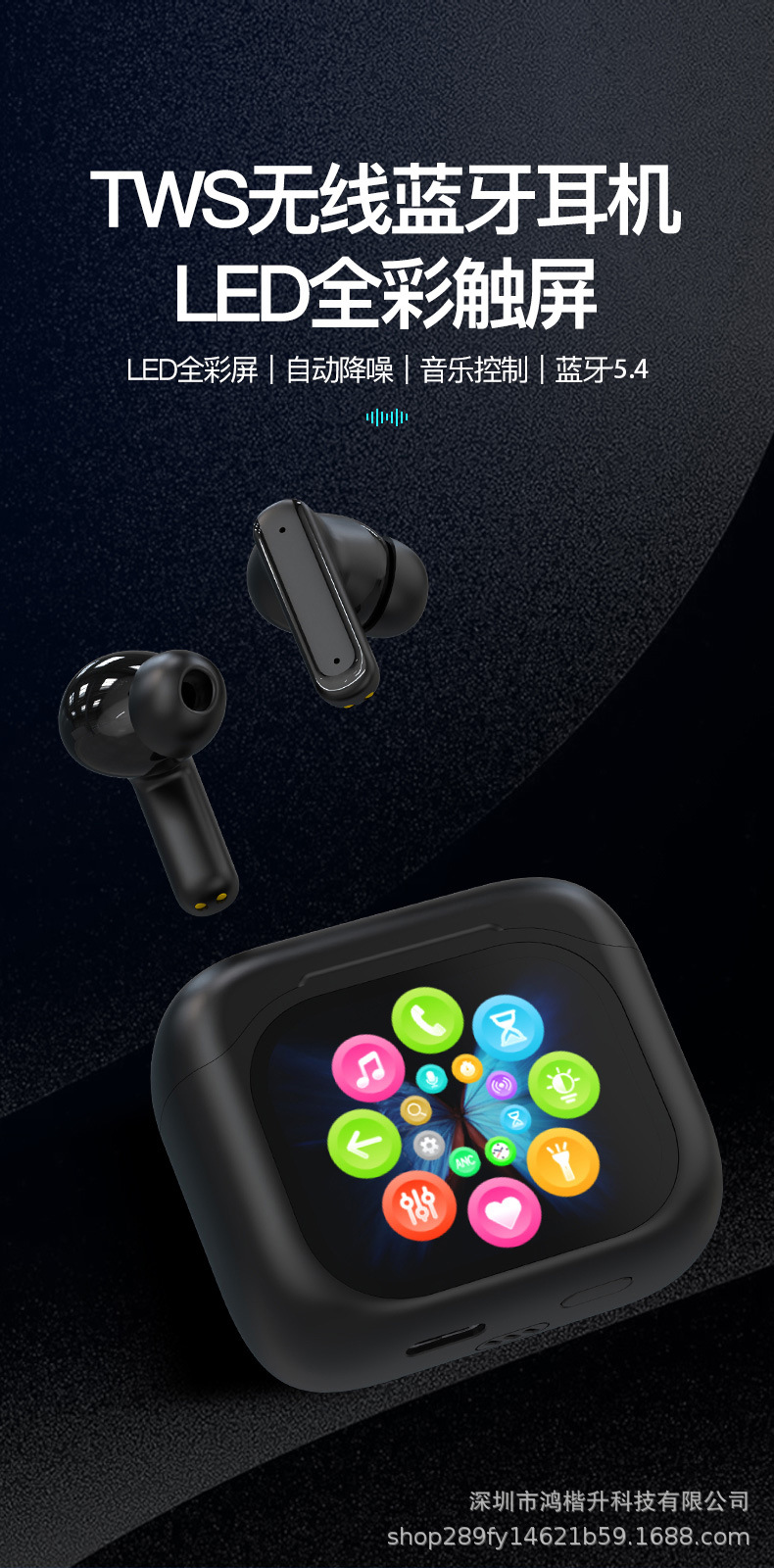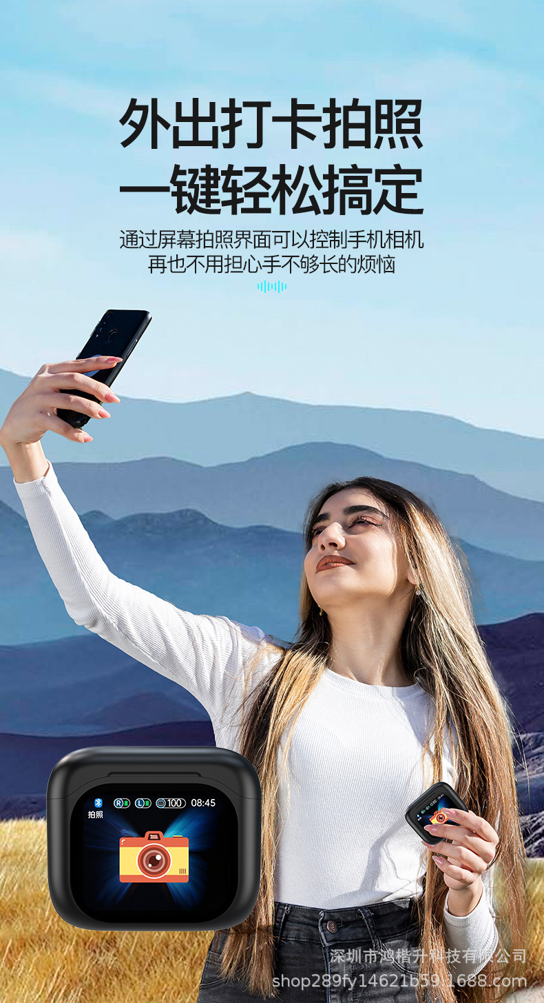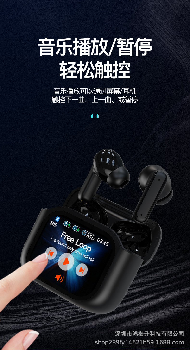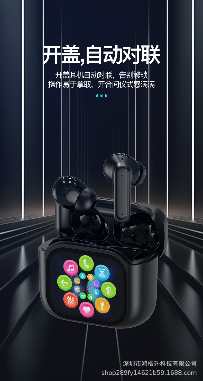2024新款触屏降噪智能蓝牙耳机定制logo跨境外贸亚马逊热销爆款ENC/ANC降噪蓝牙耳机无线长续航入耳LCD彩屏商务运动耳机tws华强北耳机深圳数码,