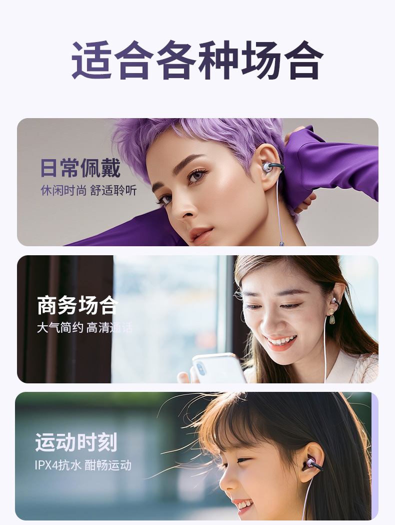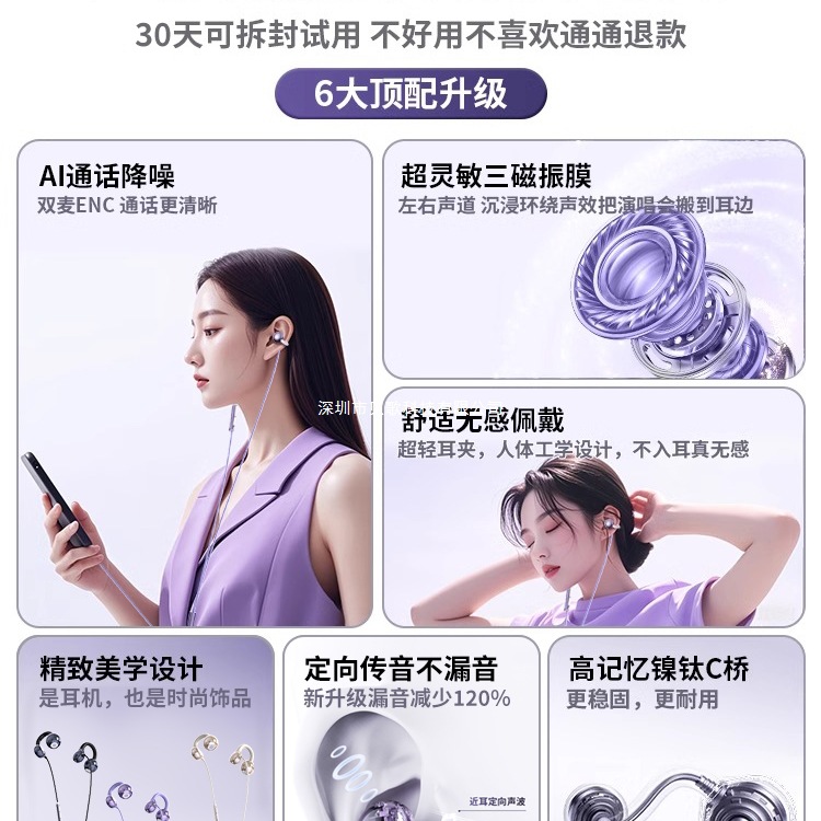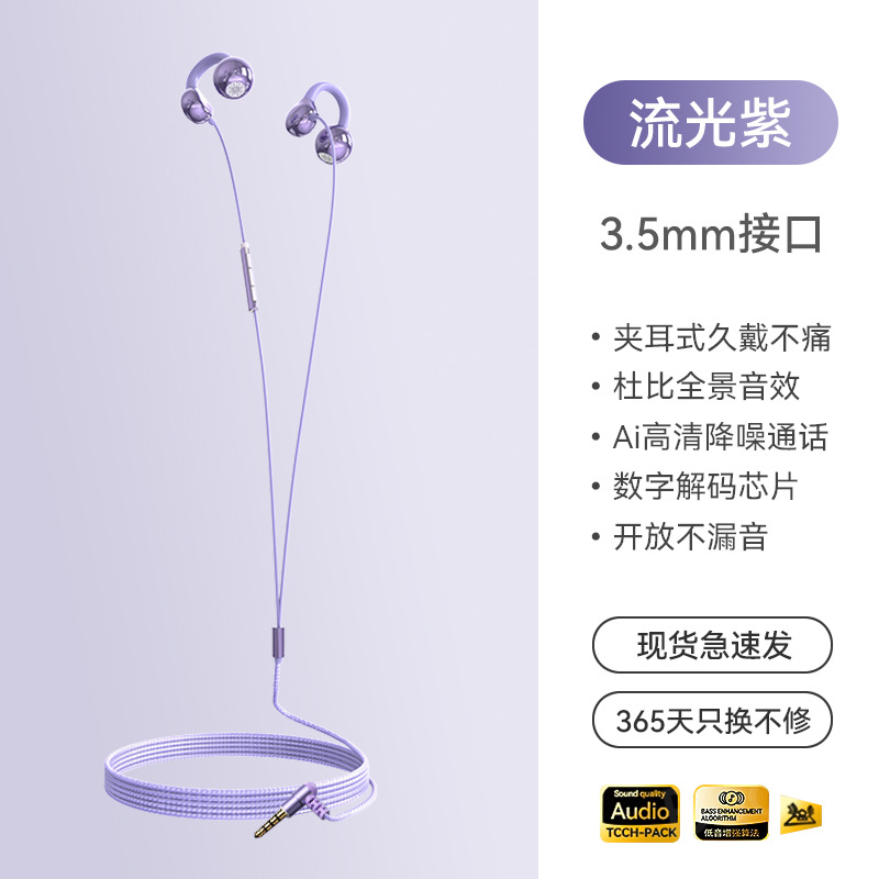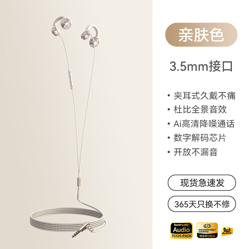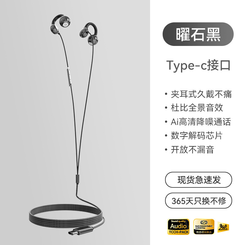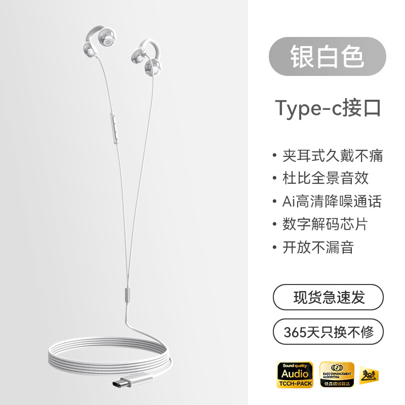 2025 New Wired Earphones with Ear Clip Type Long term Pain Free Typec Non in Ear High pitched Bone Conduction Hanging Ear Type