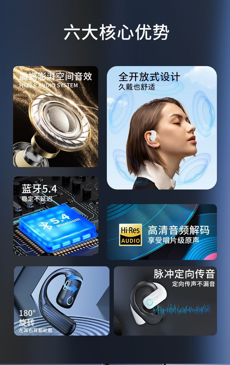 New B01 Left and Right Ear Hanging Universal Non in Ear Long lasting Pain free Long lasting Battery Life 5.4-Core Wireless Bluetooth Earphones