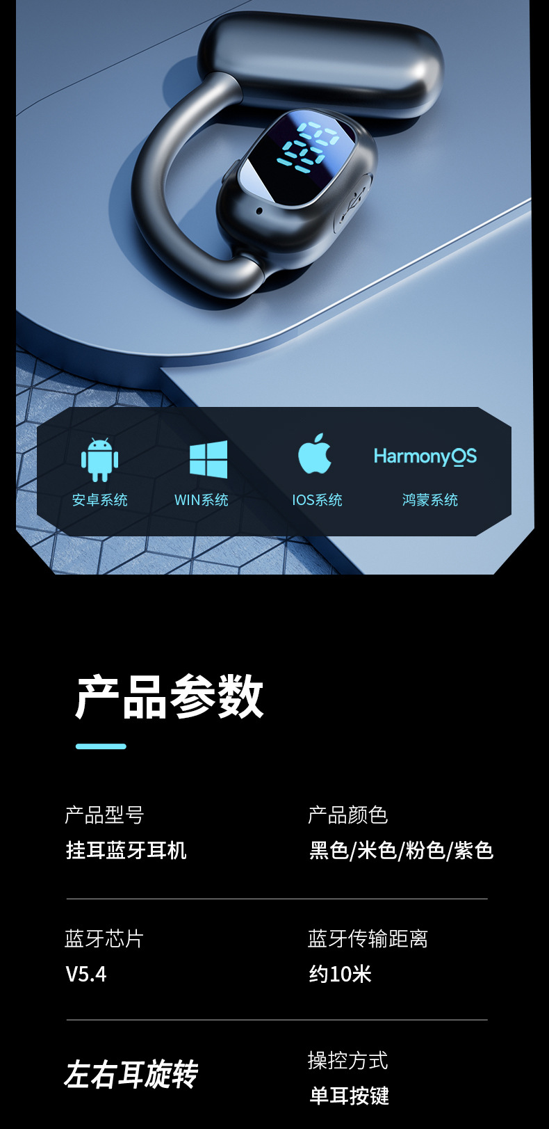 New Bluetooth earphones with left and right ear rotation hanging style suitable for Apple, Xiaomi, OPPO, Huawei, vivo