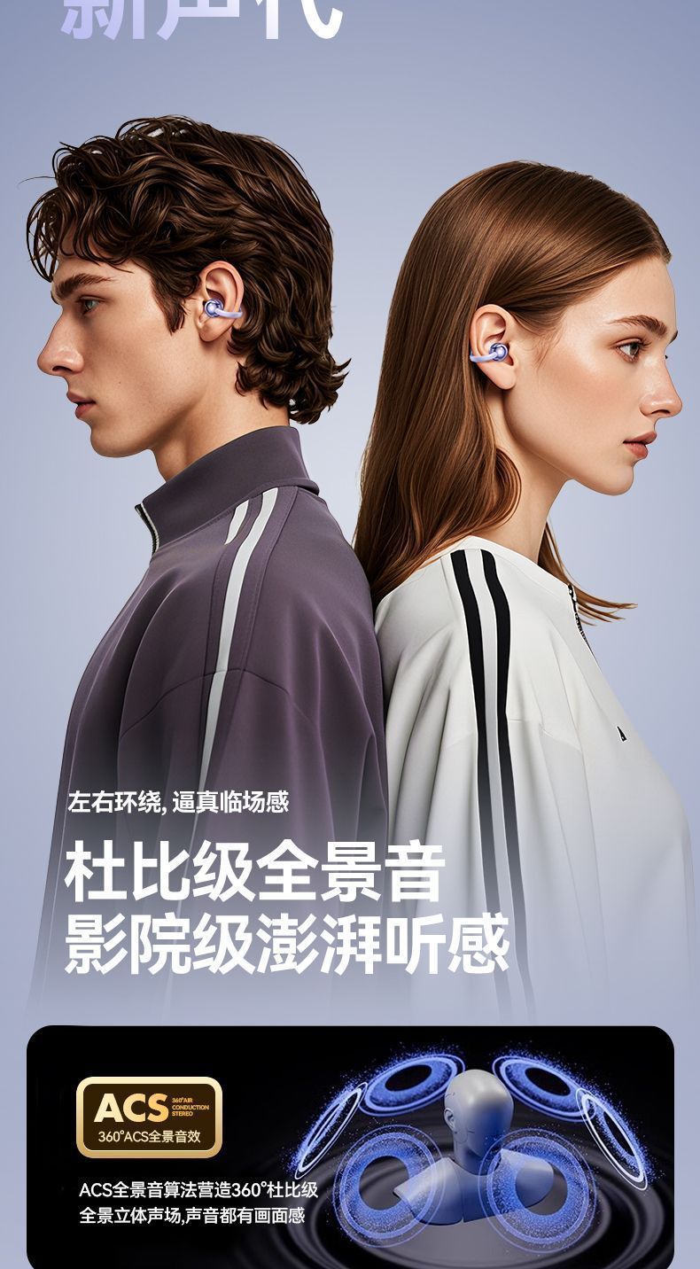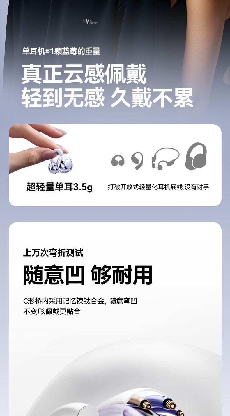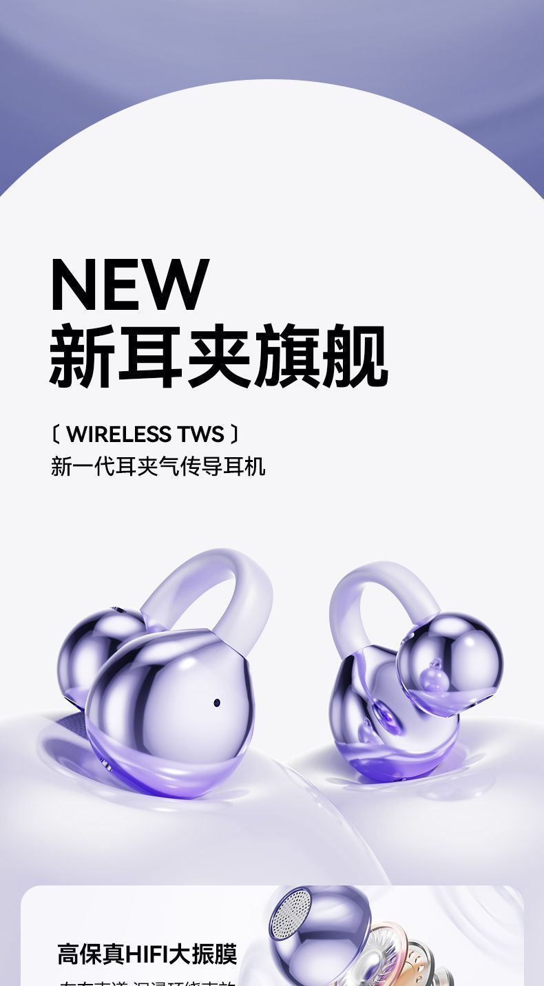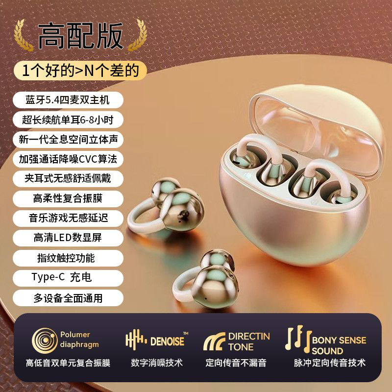 2025 new wireless ear clip Bluetooth earphones with bone conduction, long battery life, high aesthetic value, suitable for both men and women