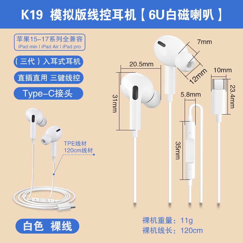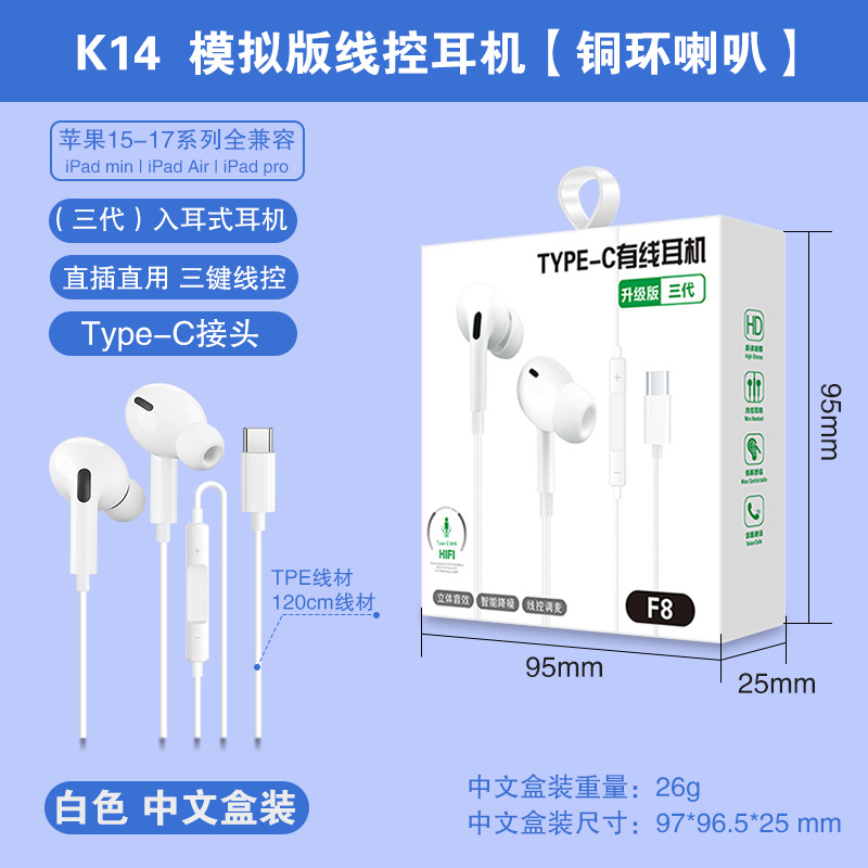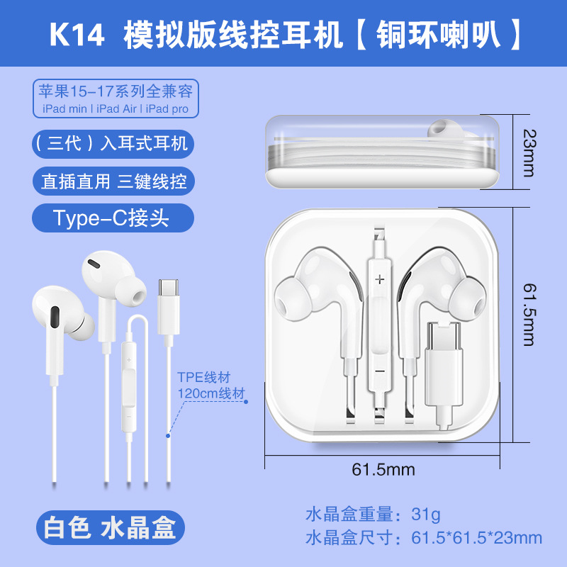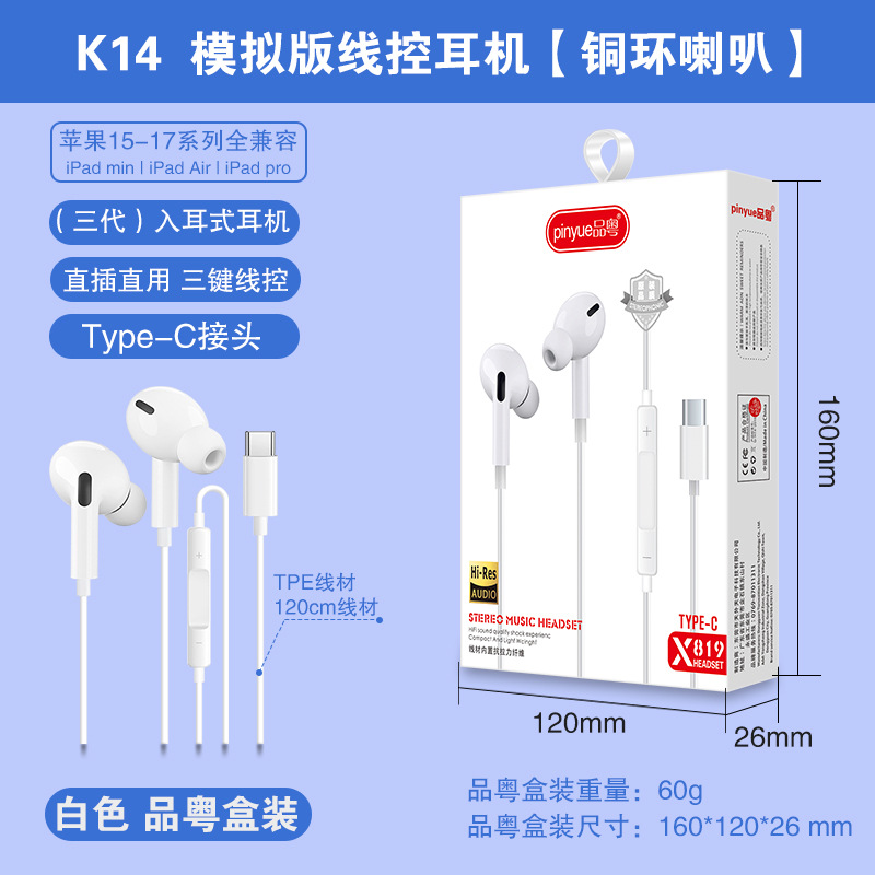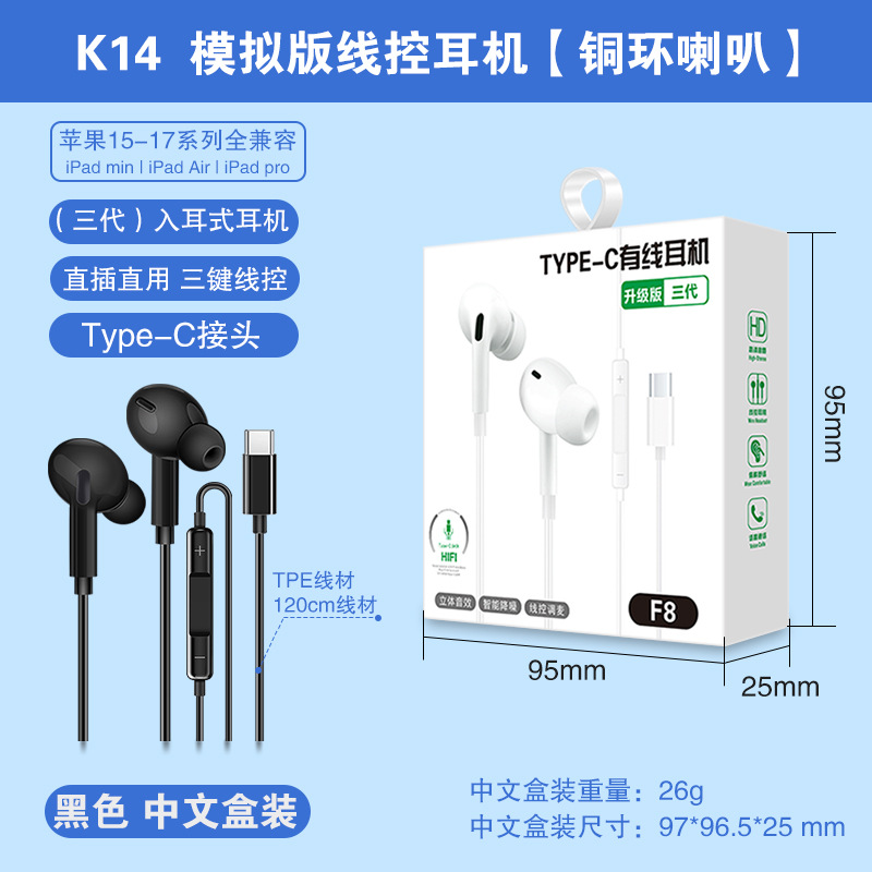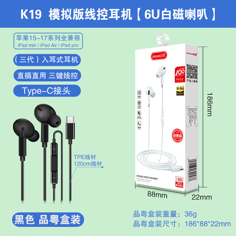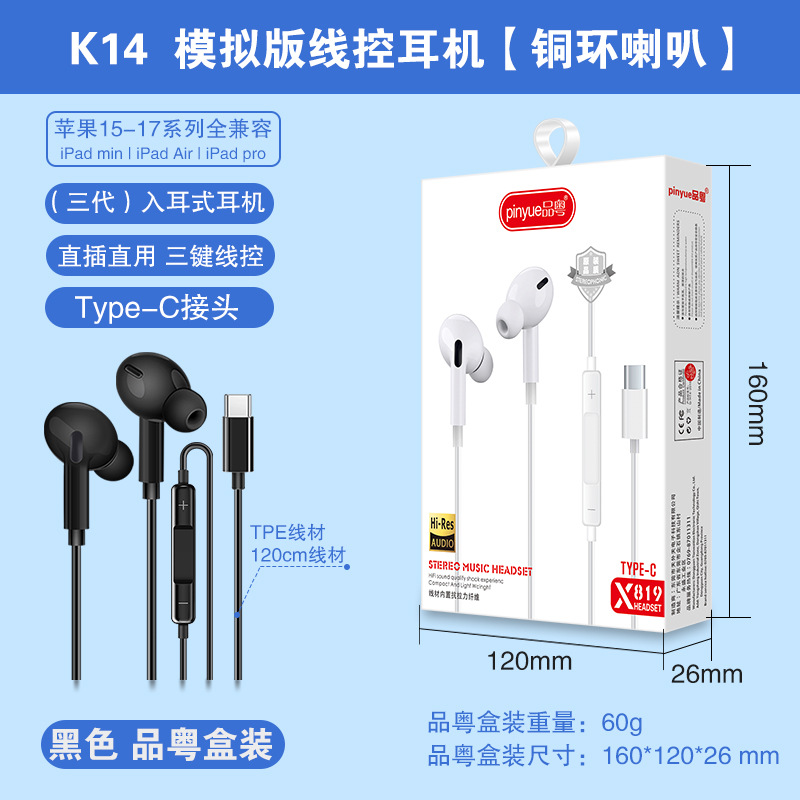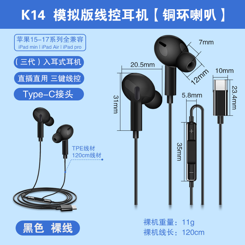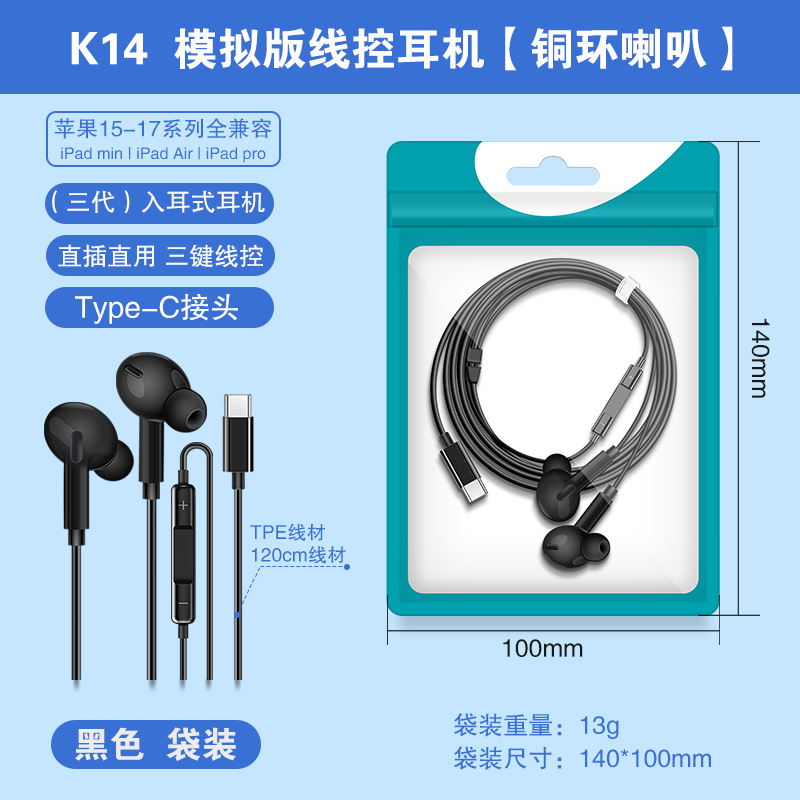 Typec wired earphones are suitable for Huawei Honor vivo gaming in ear mobile earphones, gaming and esports