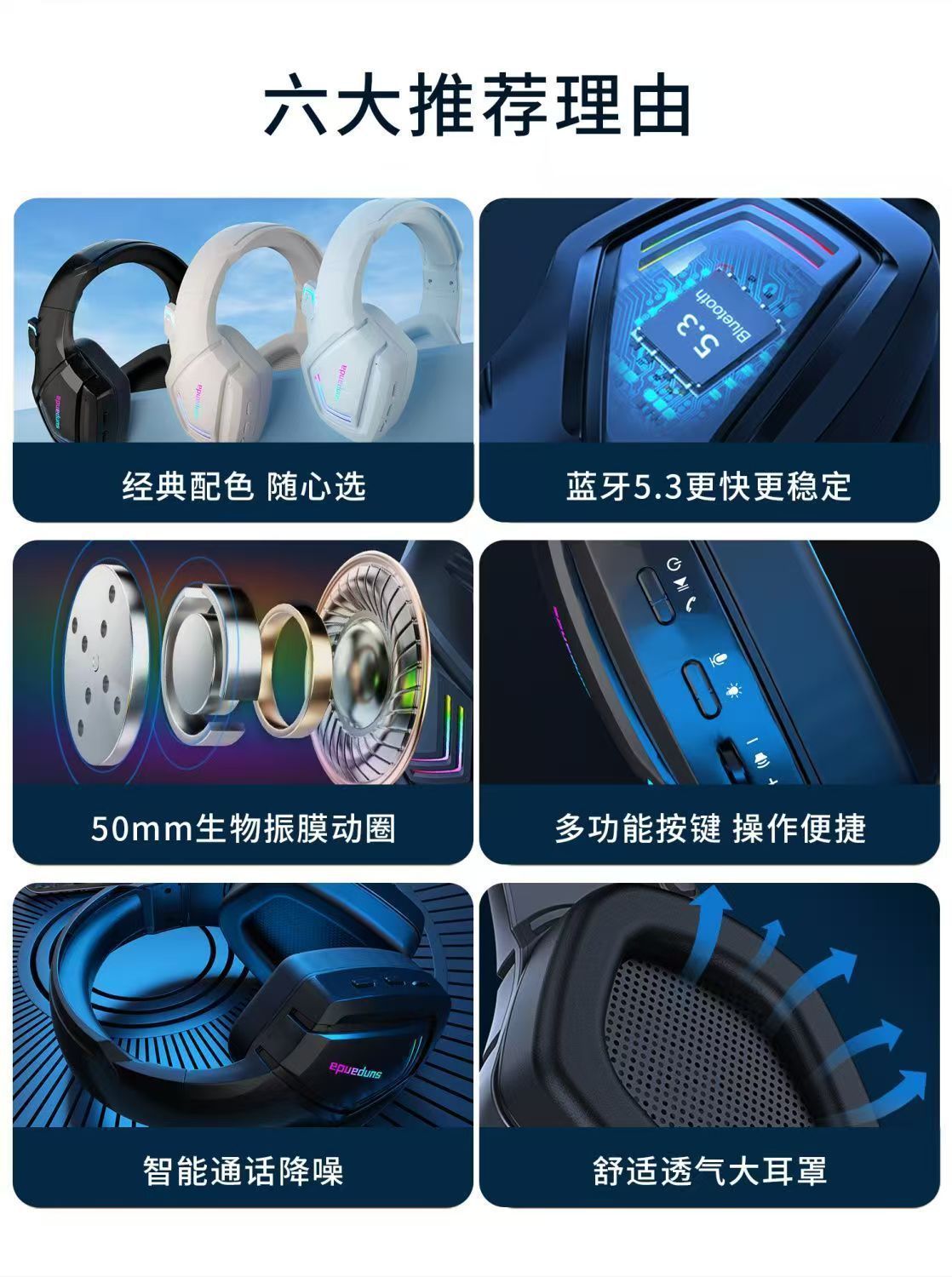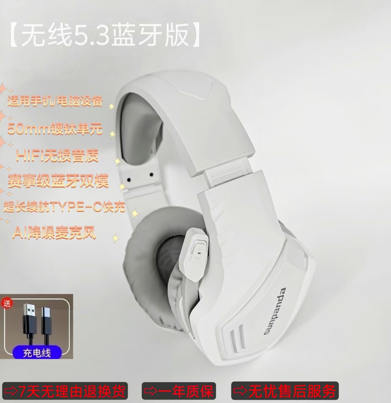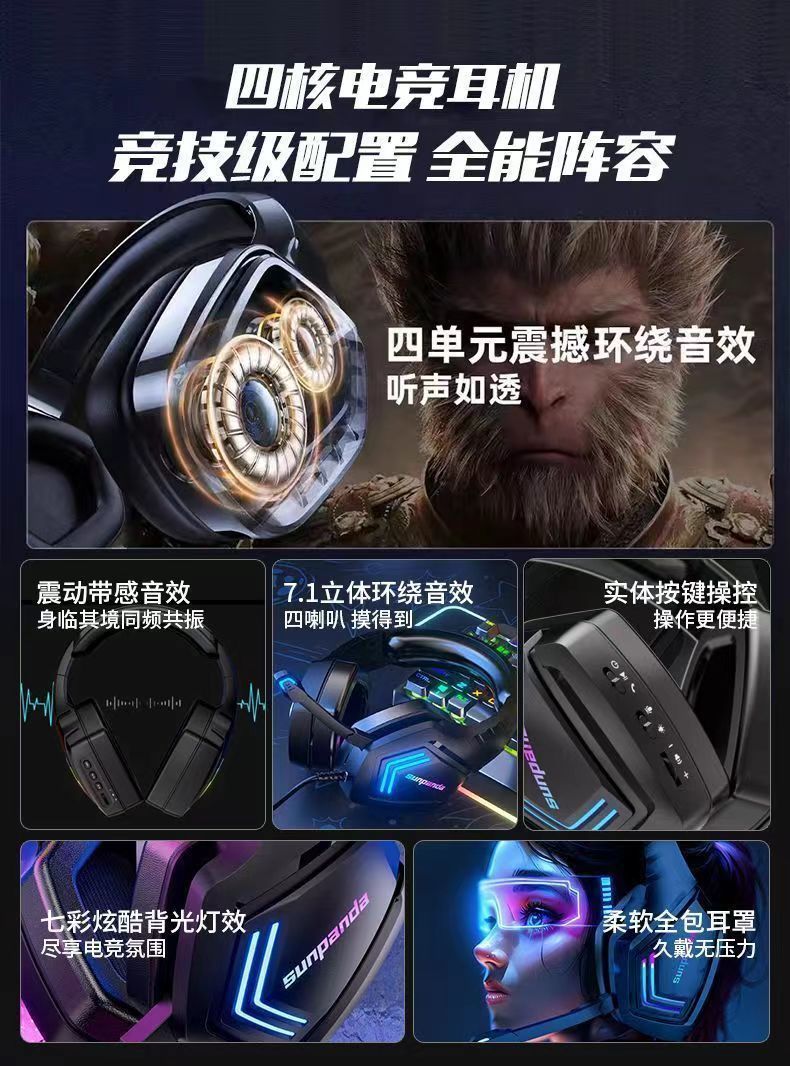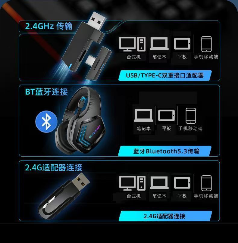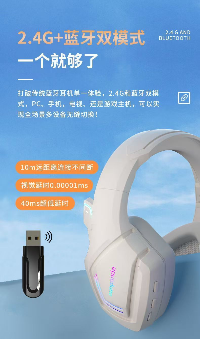 无线蓝牙耳机头戴式电竞游戏杜比HiFi音质低延迟带麦克风降噪通用