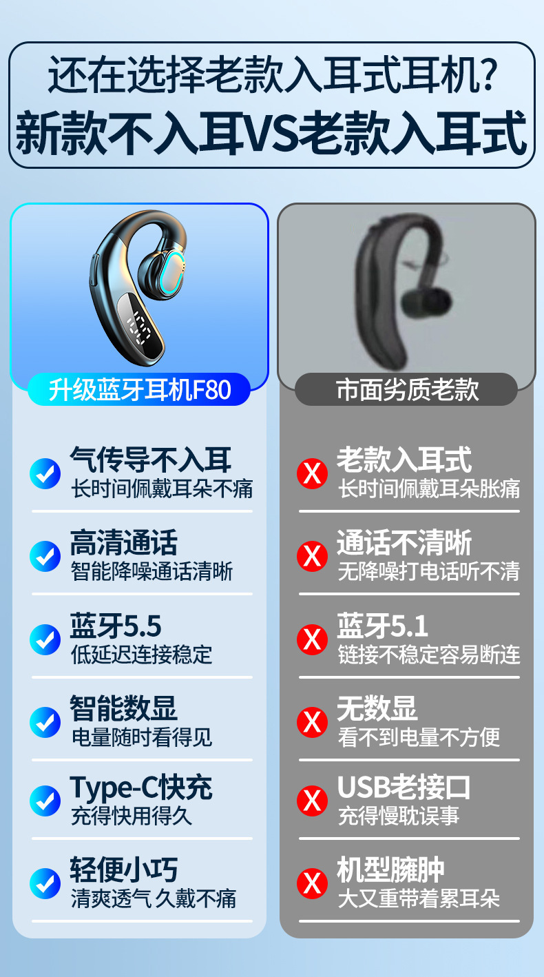 Новые беспроводные наушники Bluetooth F80 с подвесным ухом бизнес - газопровод с одним ухом цифровая оптовая трансграничная оптовая торговля