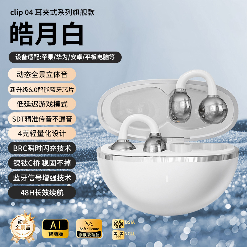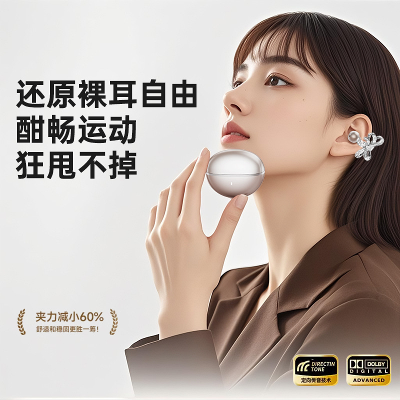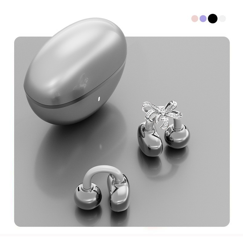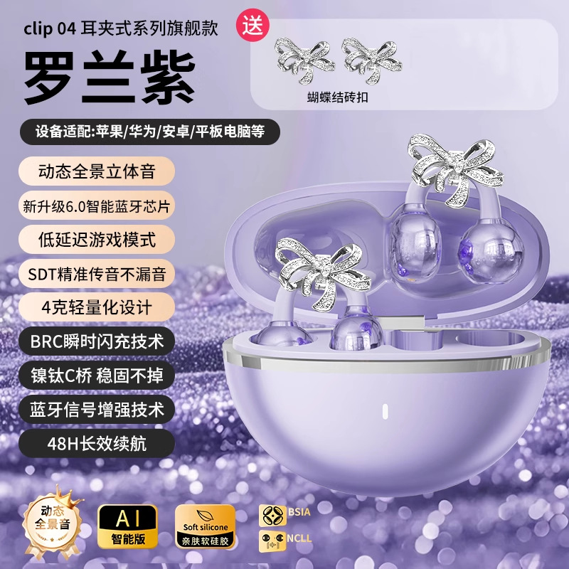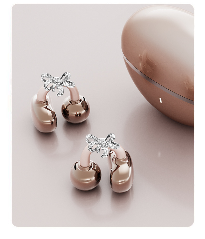 Cross border bow earrings with diamond buckle clip04 ear clip Bluetooth earphones with noise reduction AI intelligent translation Bluetooth earphones