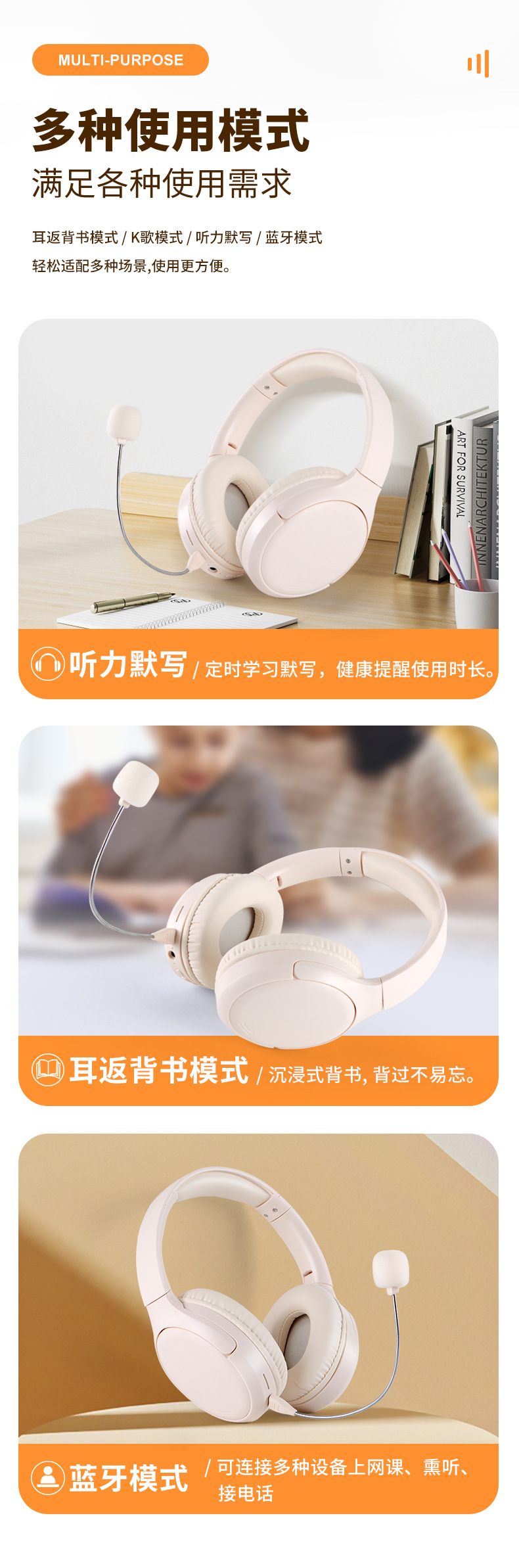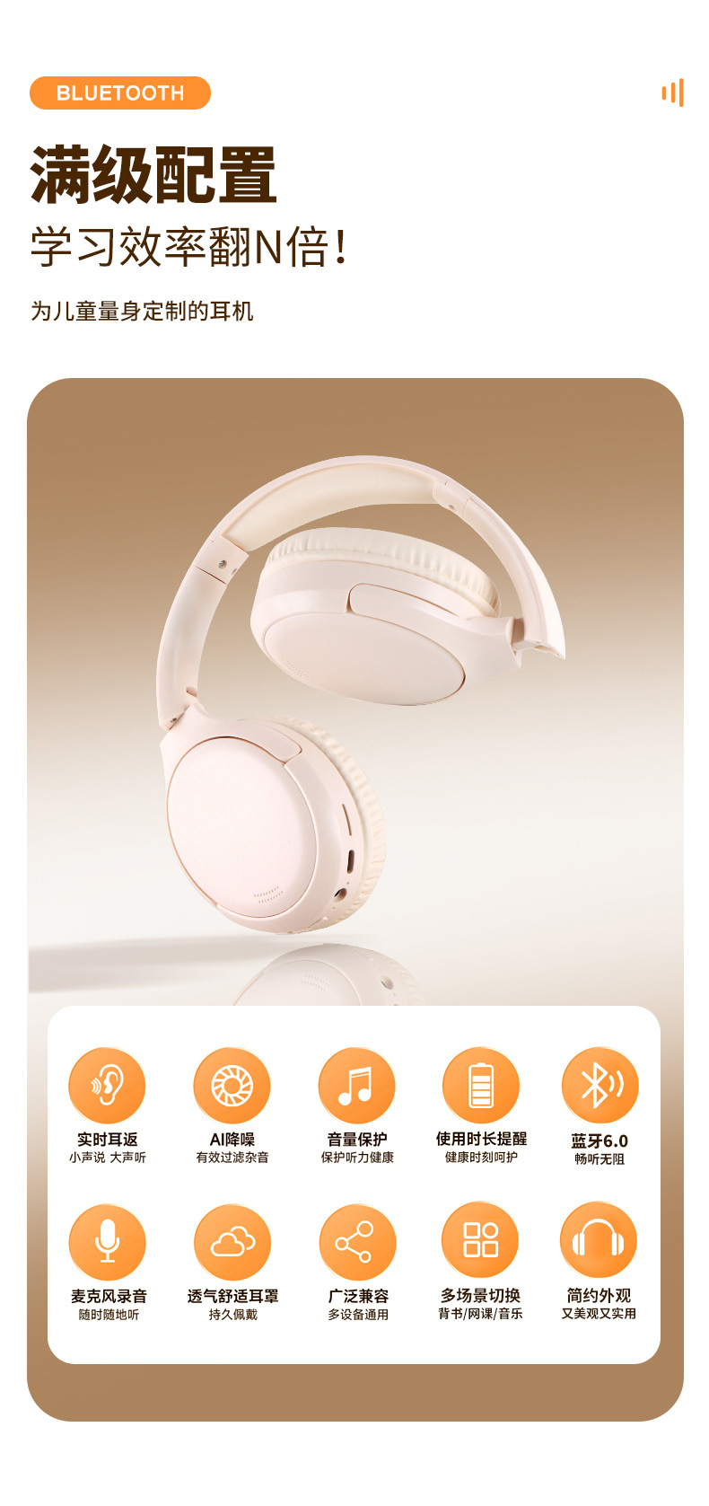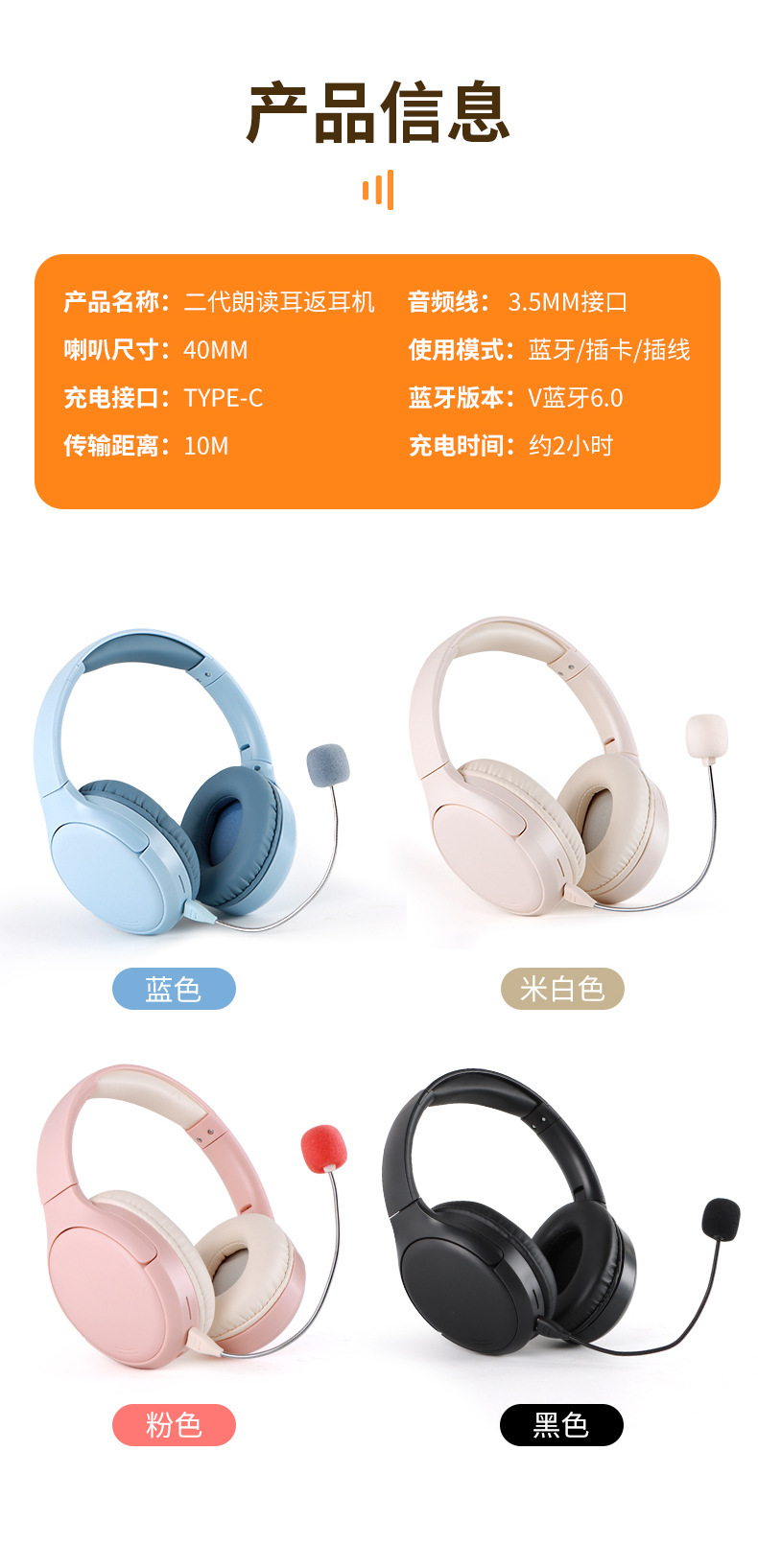 Student Ear Back Earphones Endorsement Artifact Long Range Wireless Bluetooth Recitation Learning Headset Bluetooth 6.0