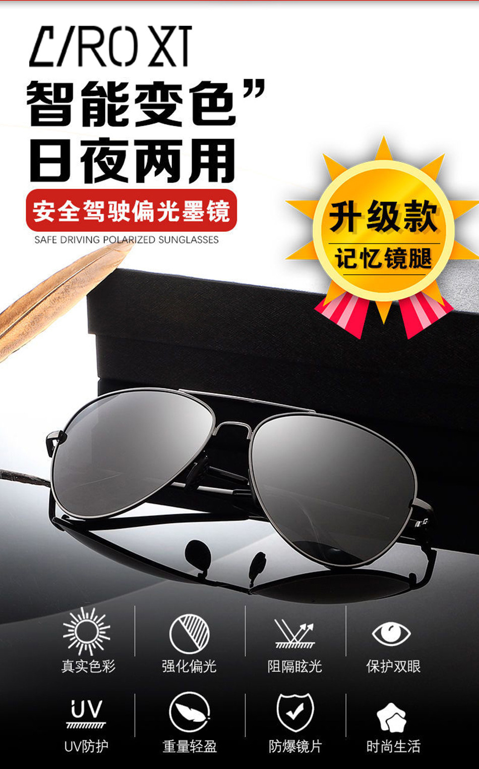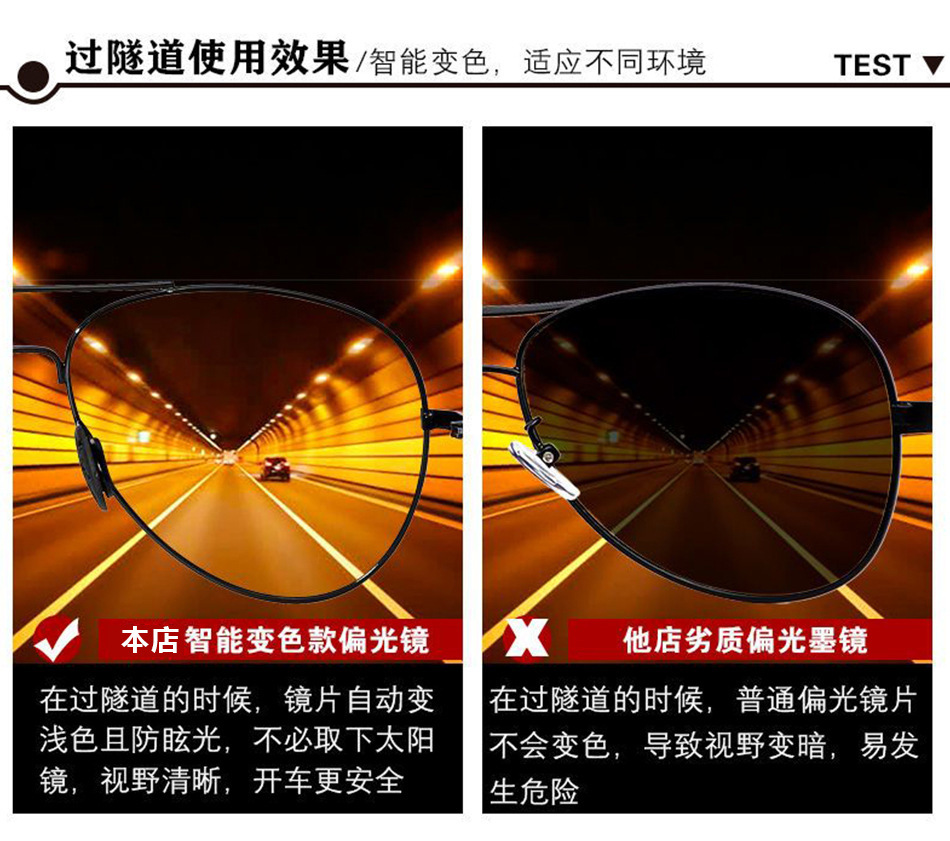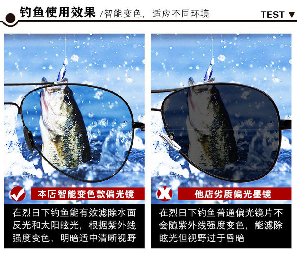 Day and night dual-use sunglasses, men's intelligent color changing polarized ultraviolet high-definition sunglasses, fishing and driving driver's glasses