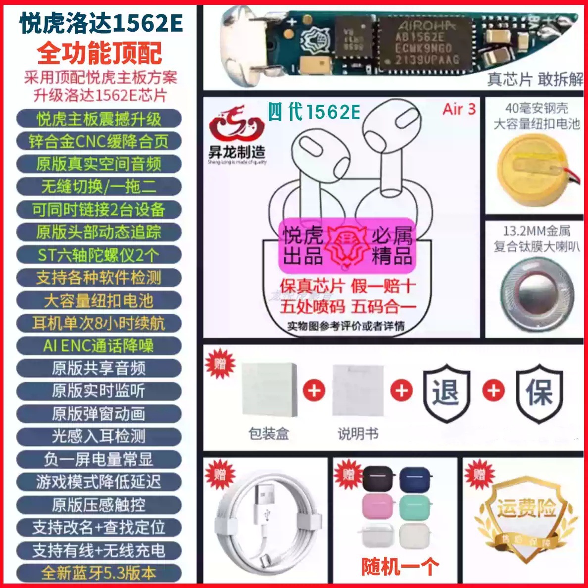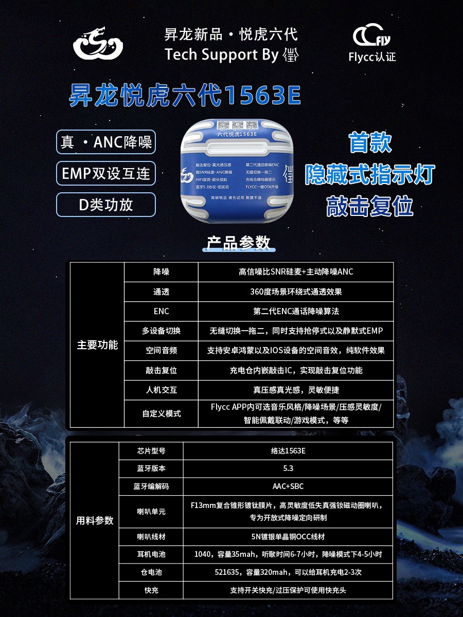 Huaqiangbei Air4 6th generation Yuehu Shenglong Luoda 1563E is suitable for Apple Bluetooth earphones with open noise cancellation