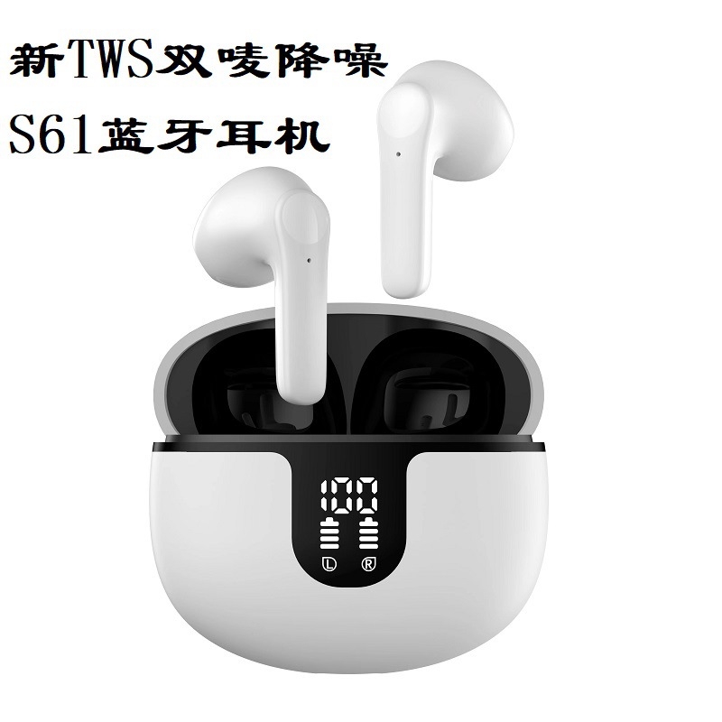 工厂源头tws私模S61蓝牙5.3耳机哇ENC唛降噪高清数显无线运动耳机