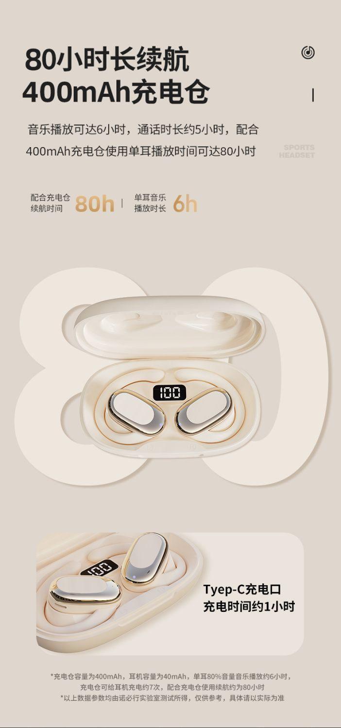 Berlin Voice's new ear hanging Bluetooth earphones, open earphones, wireless sports ear hanging, ultra long battery life wholesale