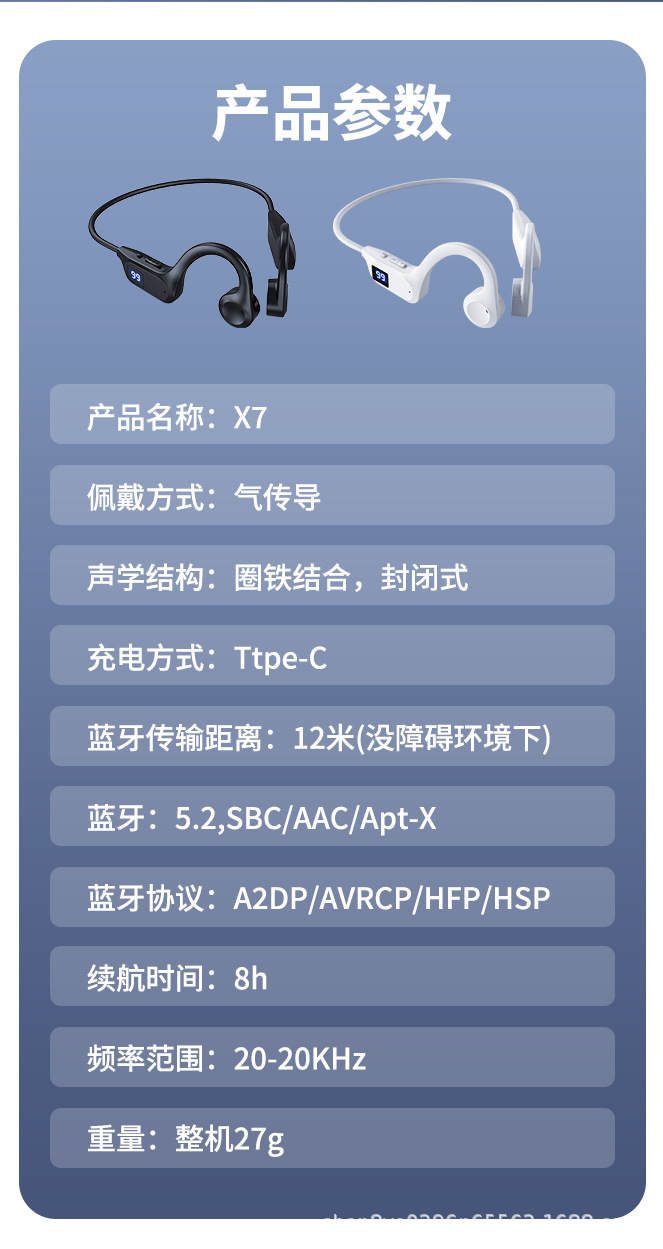 X7 Air Conducted Bluetooth Earphones No In Ear Long Range Cycling Running Sports Wholesale Wireless Ear Hanging Type