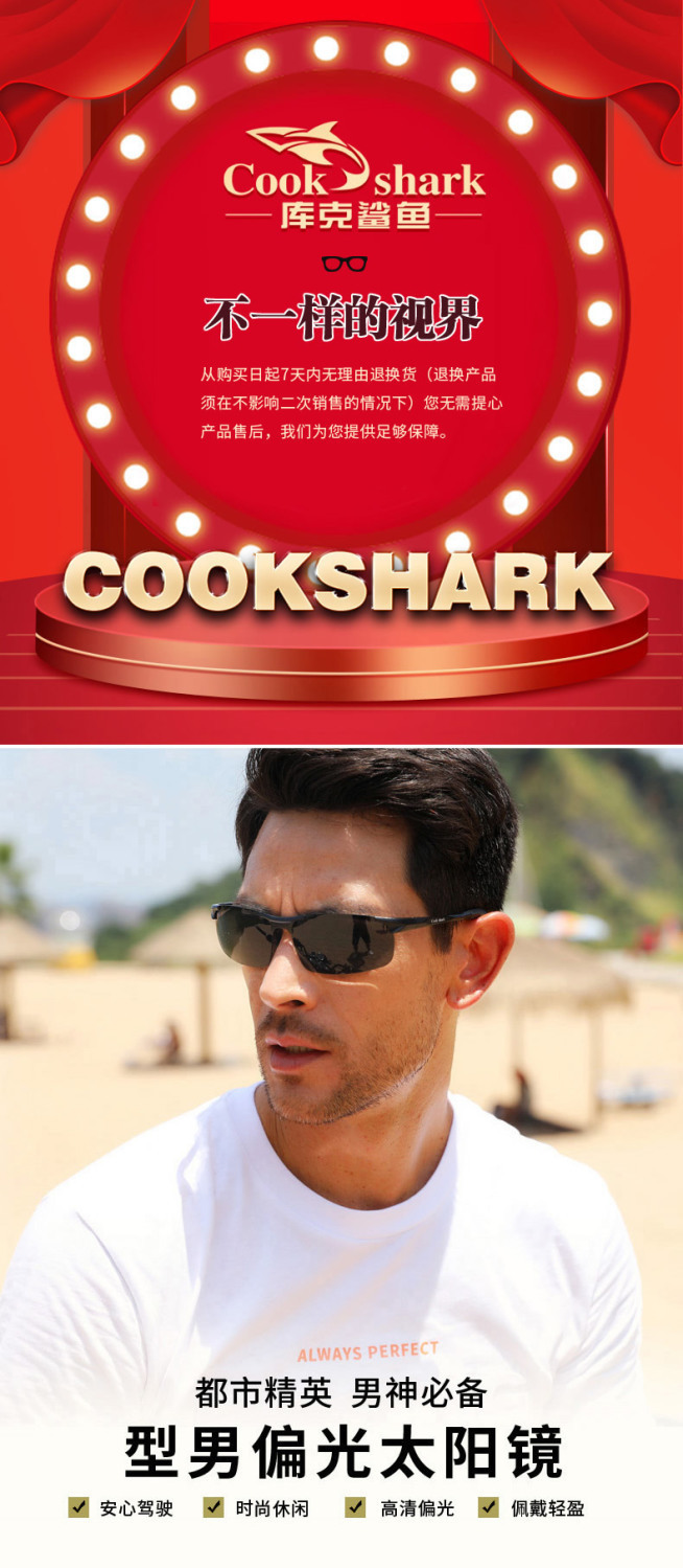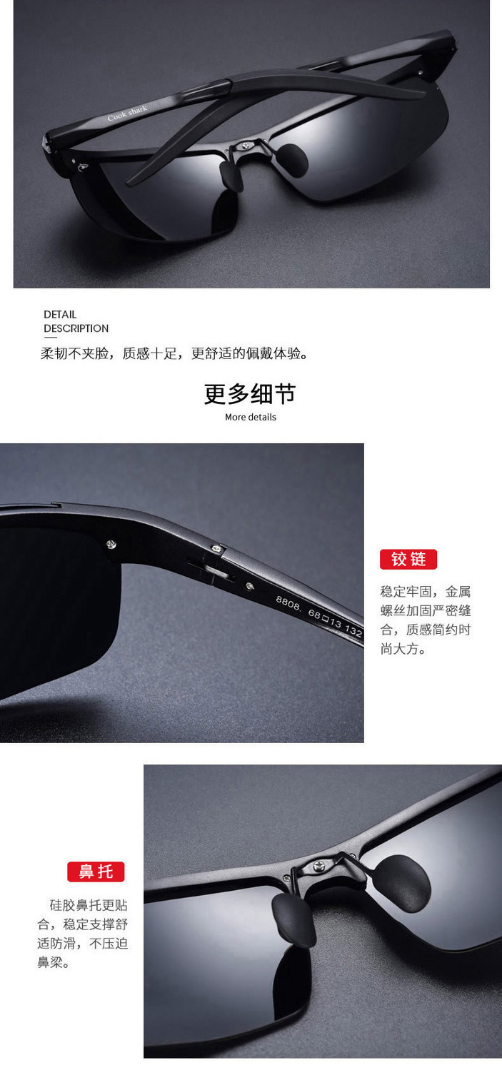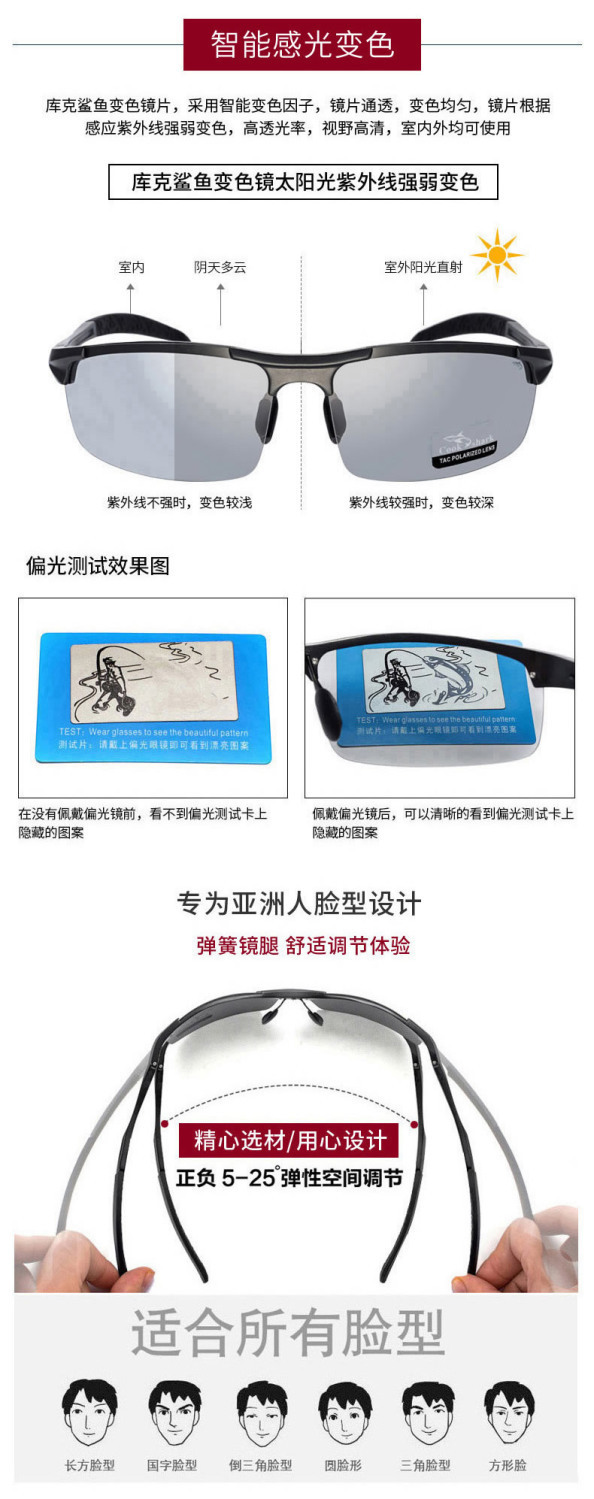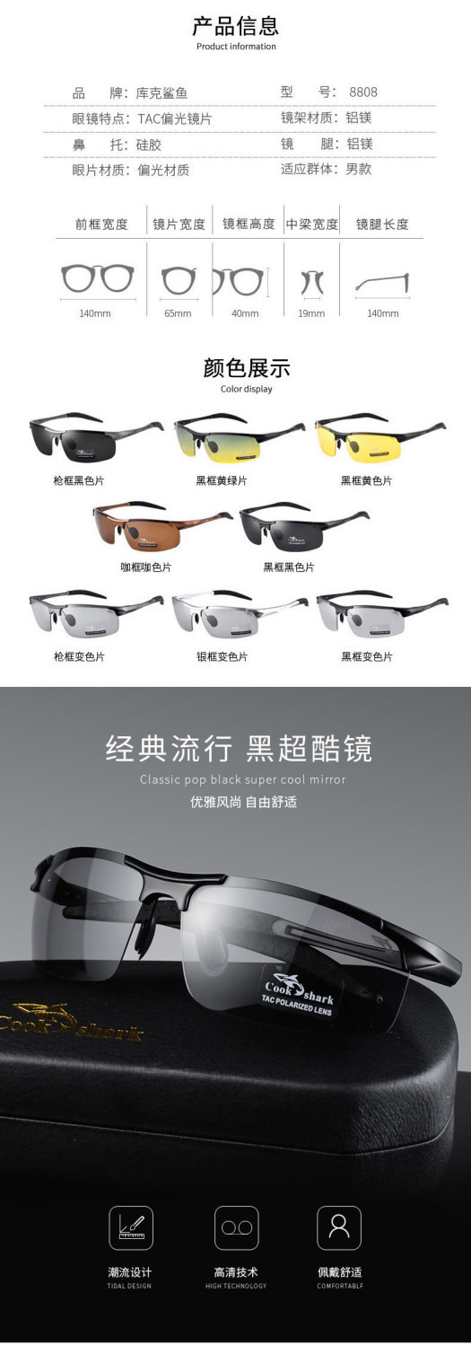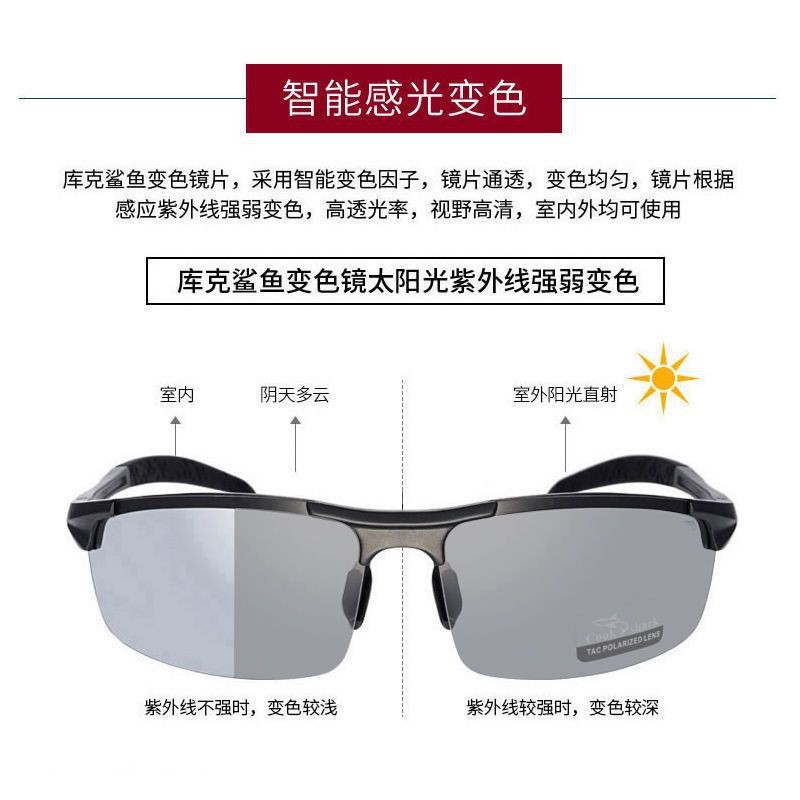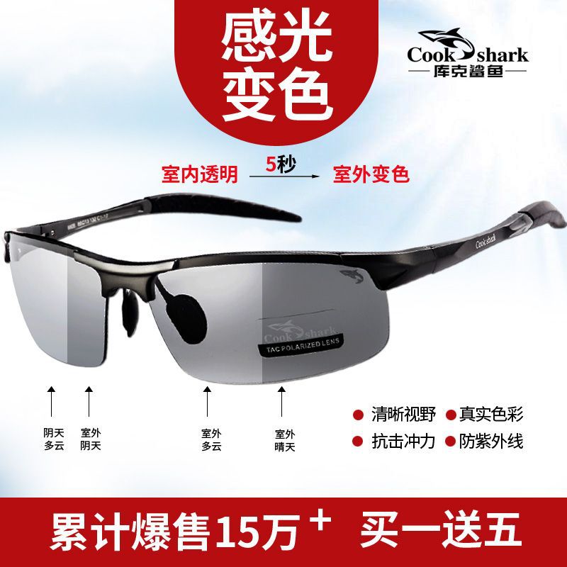 Cook Shark Color Changing Sunglasses Fishing Outdoor Men Polarized Day and Night Sunglasses Driving Glasses