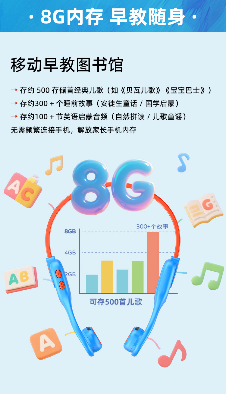 Cross border x12 children's headphones with 8GB memory download, reading headset, student bone conduction exercise headphones
