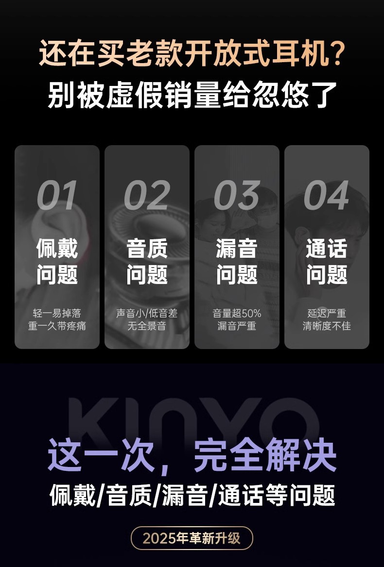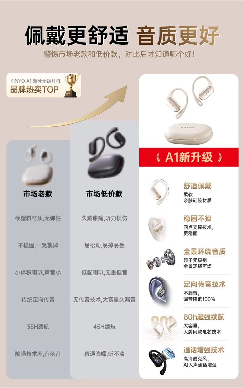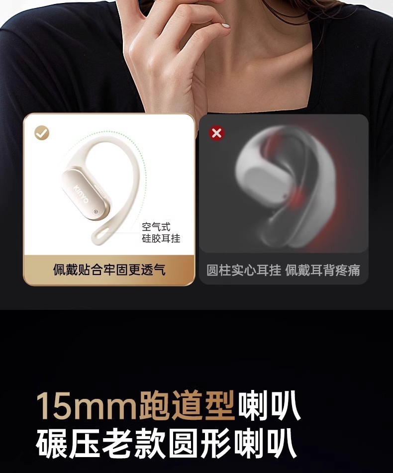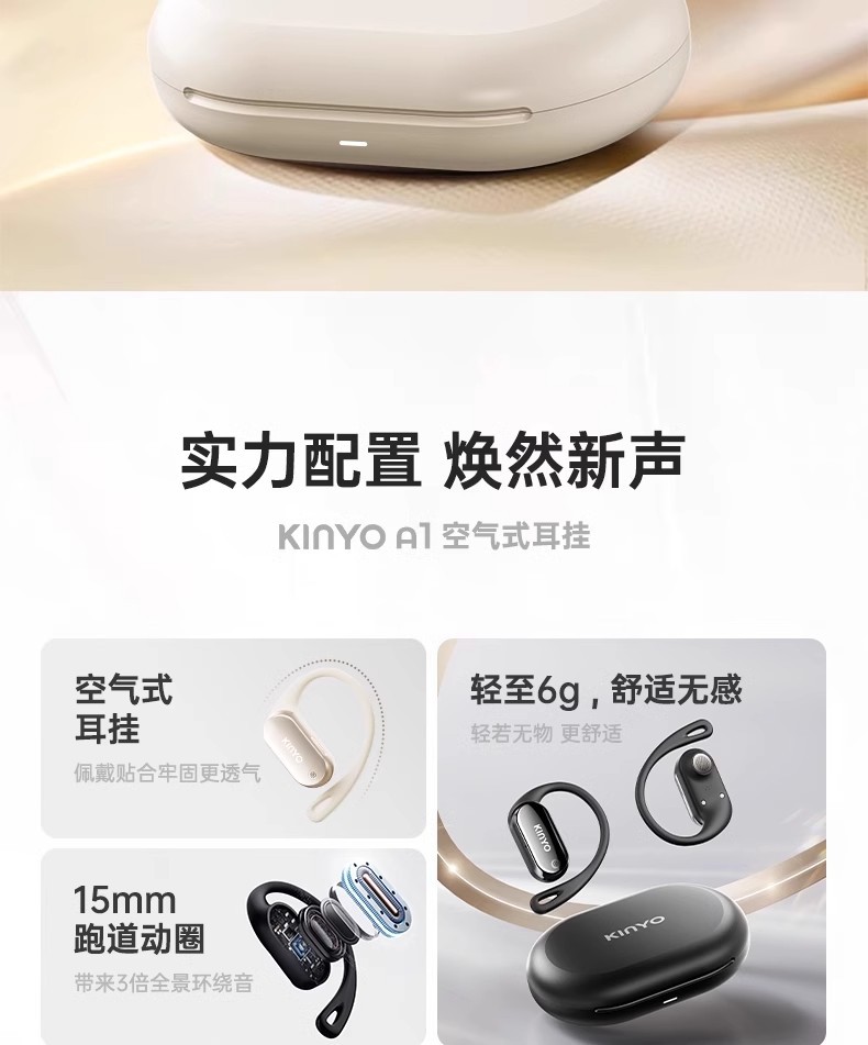 Jinyun A1 New 2025 Bluetooth Earphones Wireless Over the Ear Lightweight, Portable, Long Range Open End Earphones