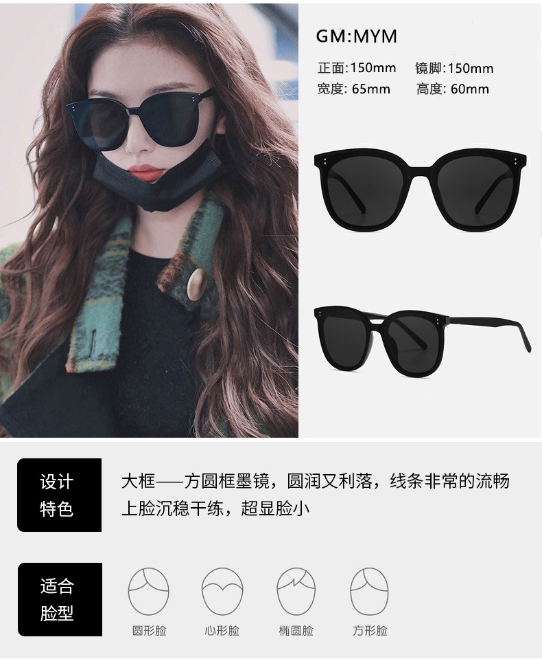 GM sunglasses for women with a high-end feel, Korean version, internet celebrity trend 2025, new UV protection and sun protection, big face slimming sunglasses