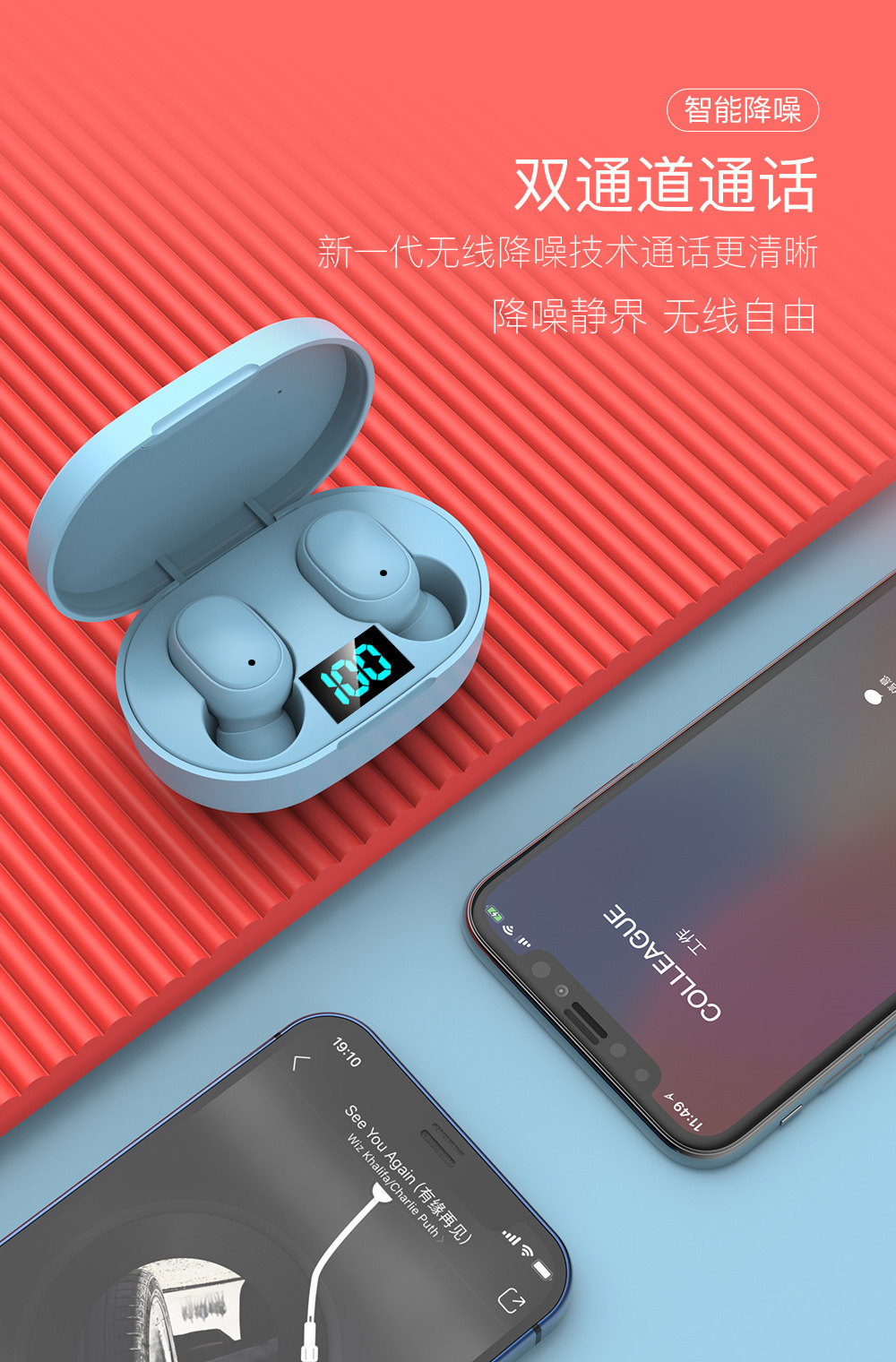 E6S Bluetooth Наушники Беспроводное движение ушей Цифровое снижение шума
