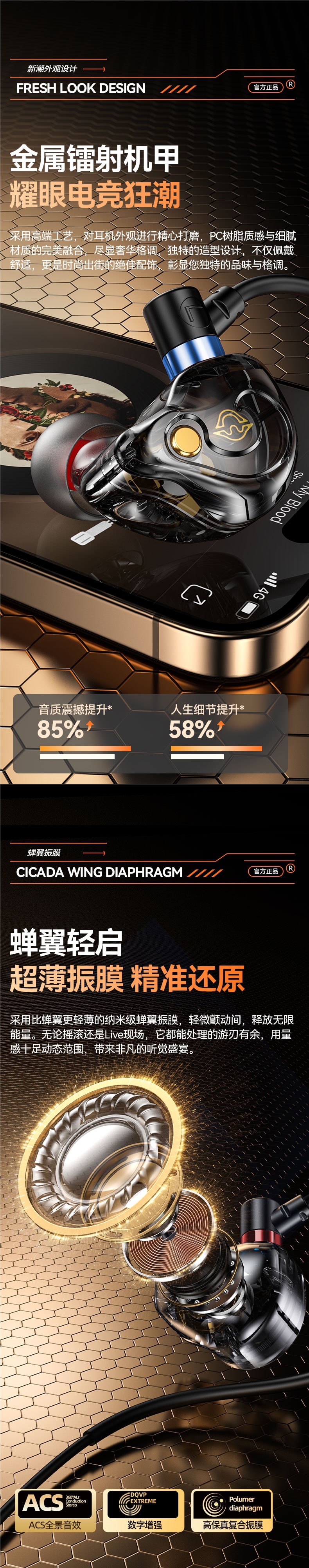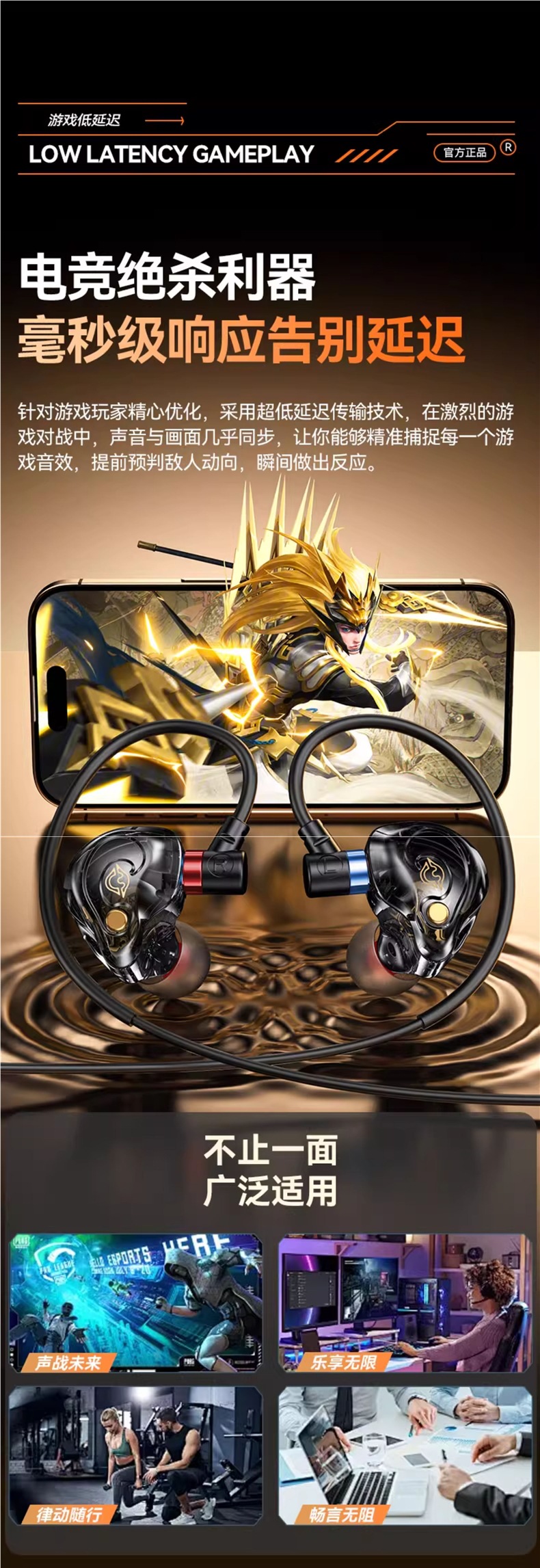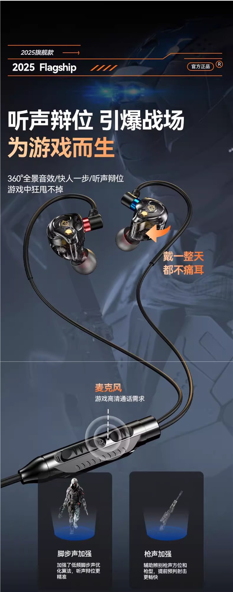 New model suitable for Delta earphones, wired gaming, e-sports, mobile phone, computer, in ear with microphone, no delay in listening and debate position