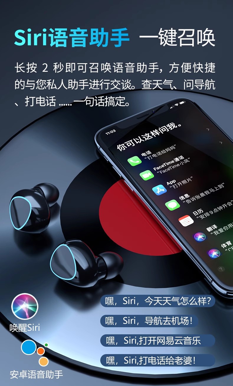 | 功能 | 防水;立体声;降噪;电量显示;超长续航;语音控制;支持音乐;其他 |