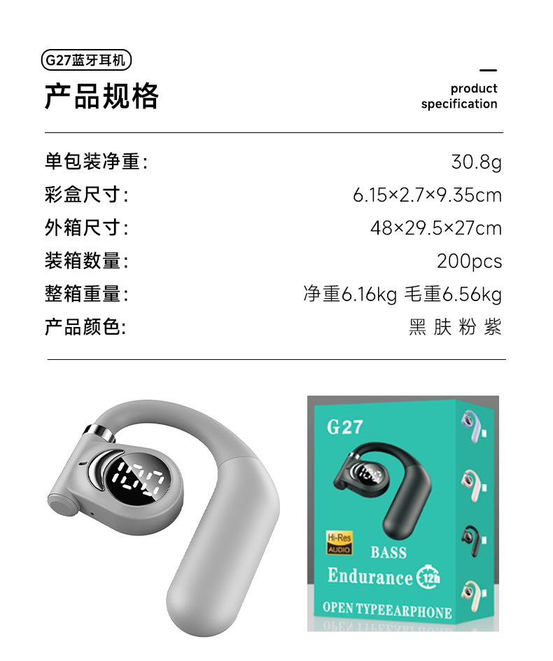 Тщательно выбирайте G27LED заряд цифровой экран беспроводные наушники Bluetooth с одним ухом висит ухо без внешней торговли низкая задержка