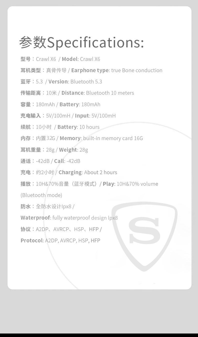 | 功能 | 防水;降噪;骨传导;超长续航;通话功能;语音控制;支持音乐 |