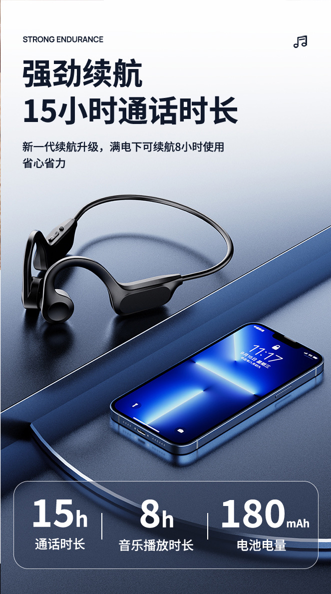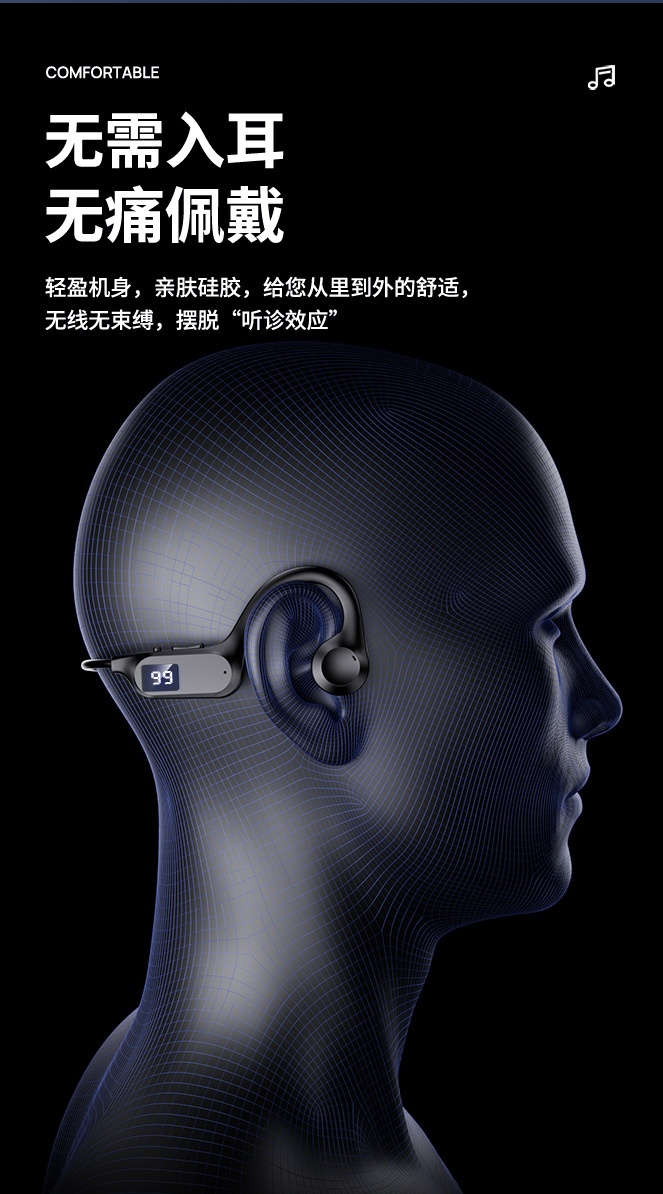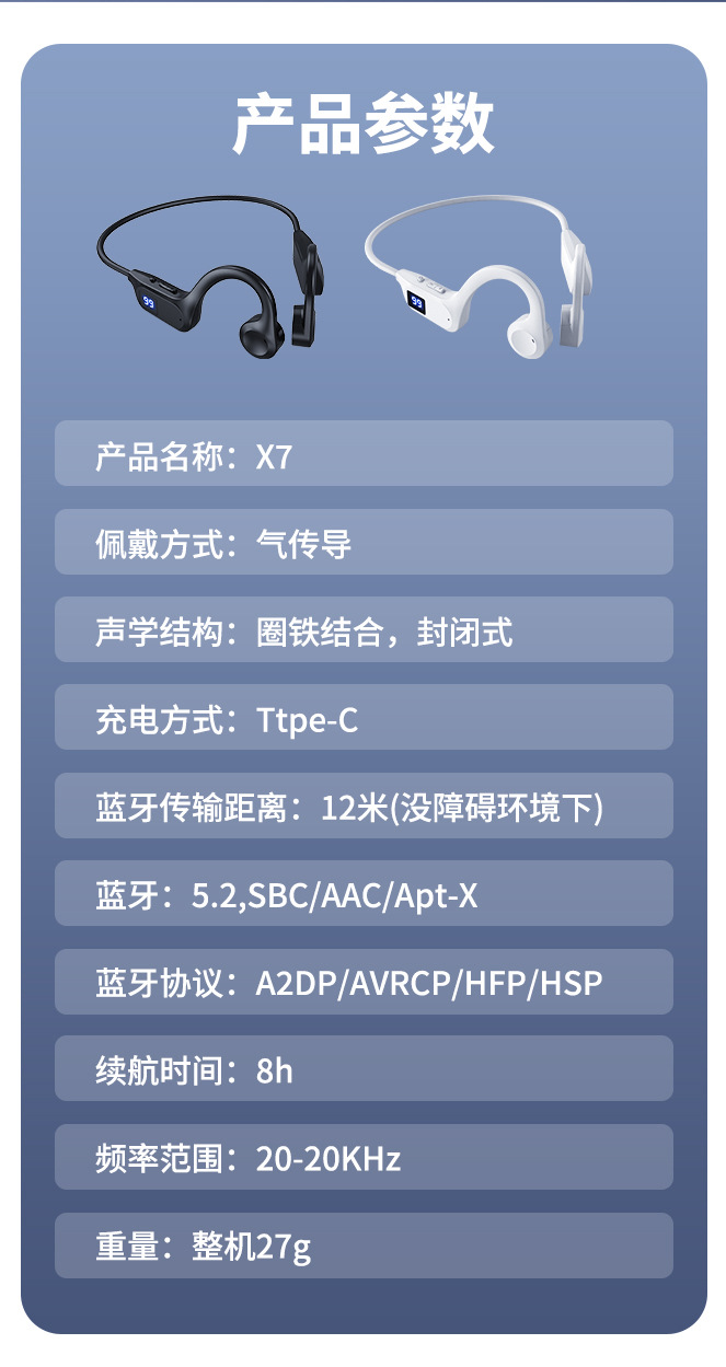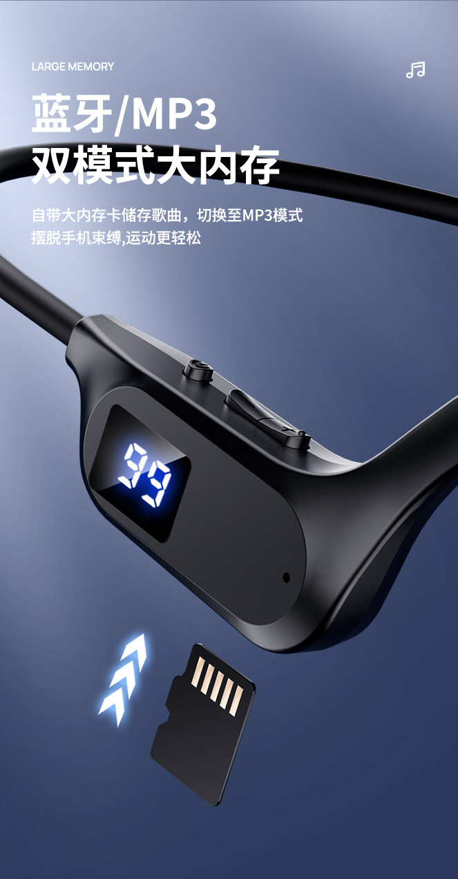 2025 Новый газопровод X7 Беспроводная подвеска Bluetooth Наушники Спорт Цифровая карта Bluetooth Музыка Двойной режим