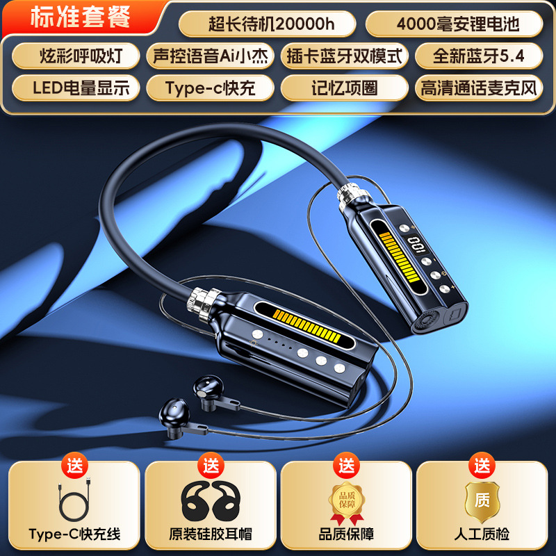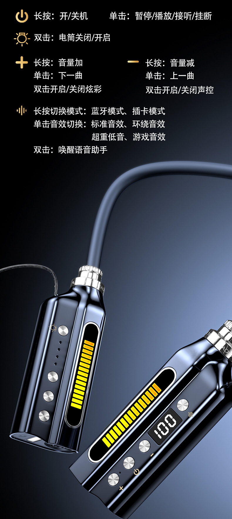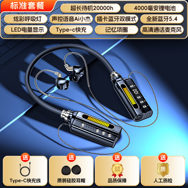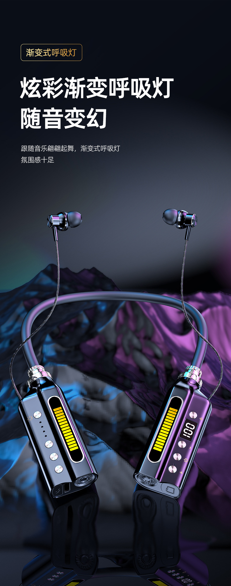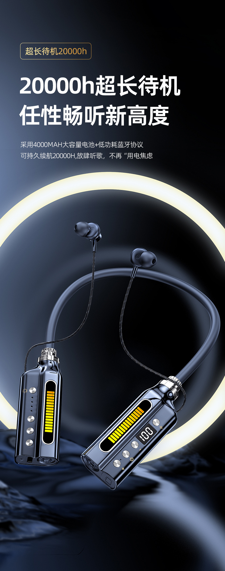 Dual battery Bluetooth earphones, neck hanging wireless, ultra long battery life, heavy bass, colorful lights, high battery capacity, private model, e-commerce wholesale