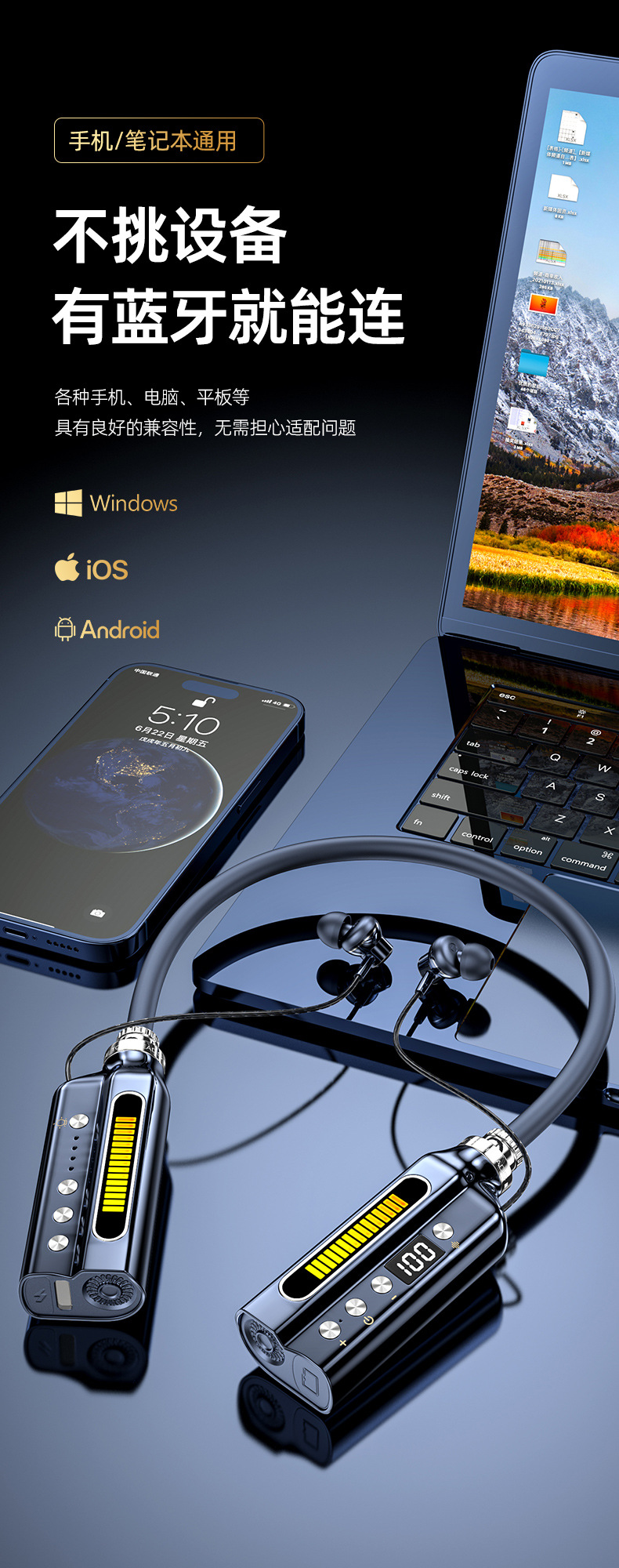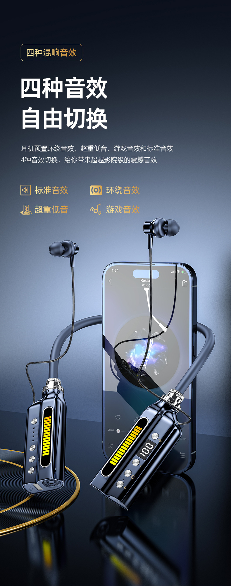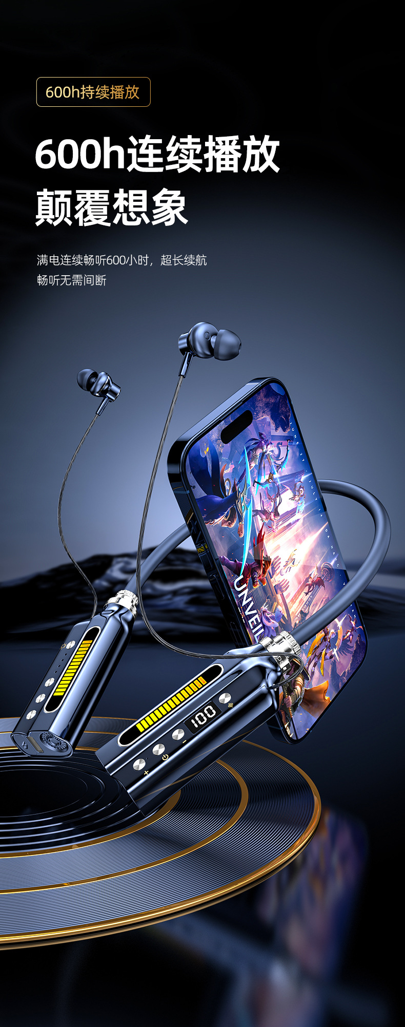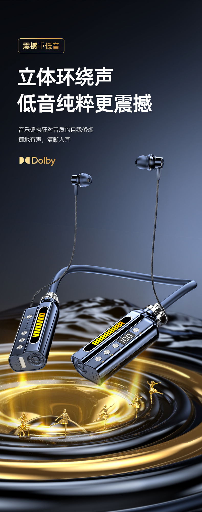 Dual battery Bluetooth earphones, neck hanging wireless, ultra long battery life, heavy bass, colorful lights, high battery capacity, private model, e-commerce wholesale