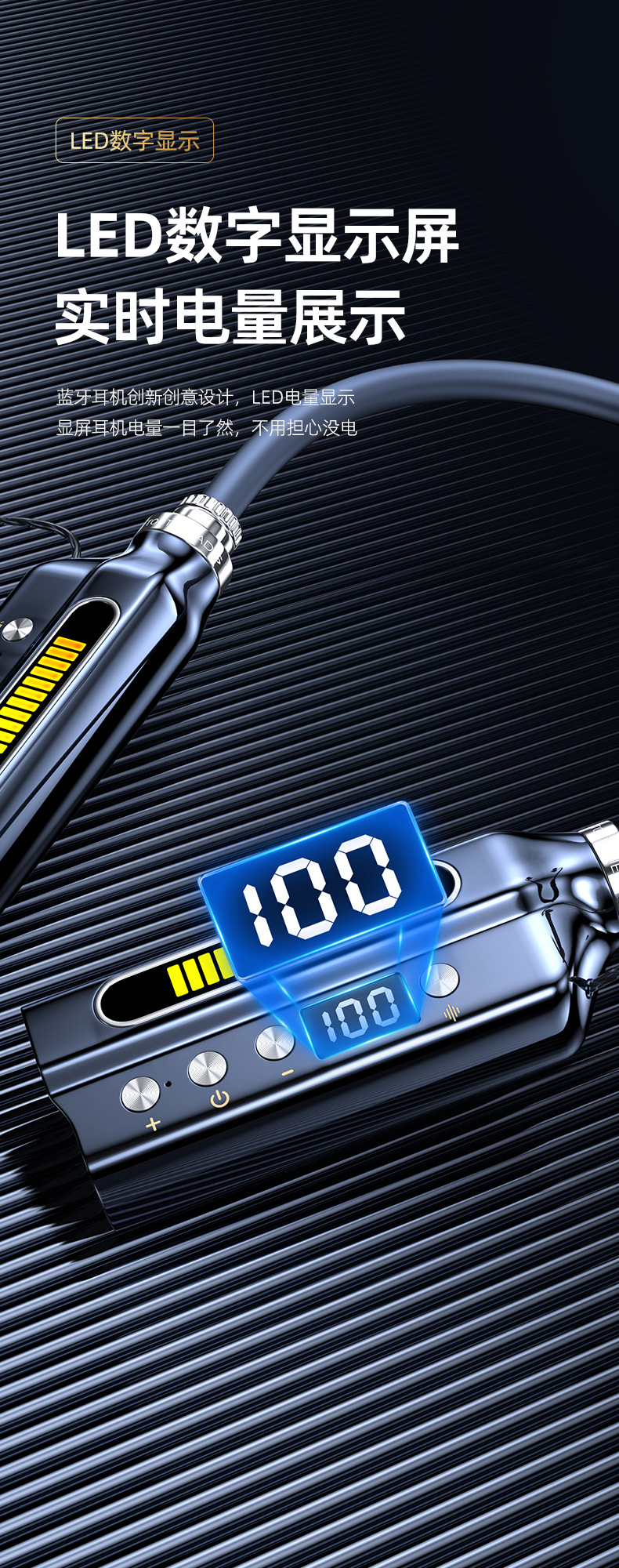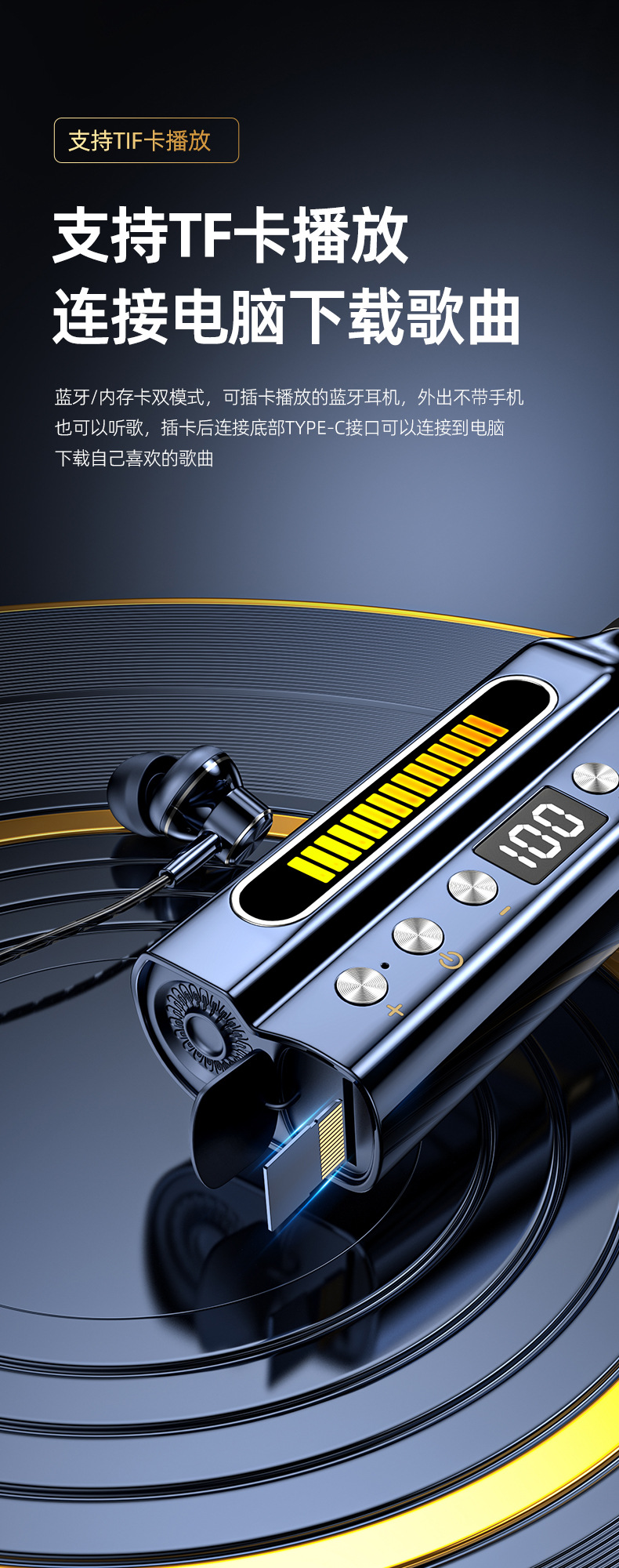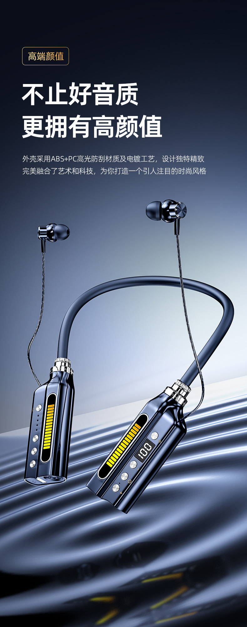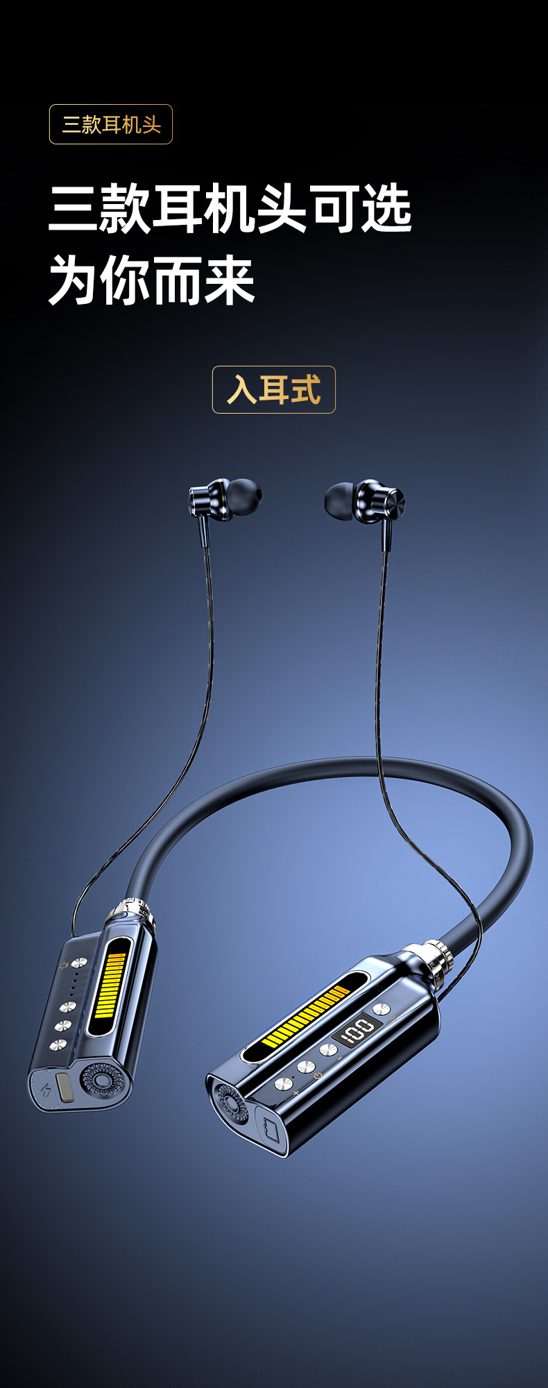 Dual battery Bluetooth earphones, neck hanging wireless, ultra long battery life, heavy bass, colorful lights, high battery capacity, private model, e-commerce wholesale