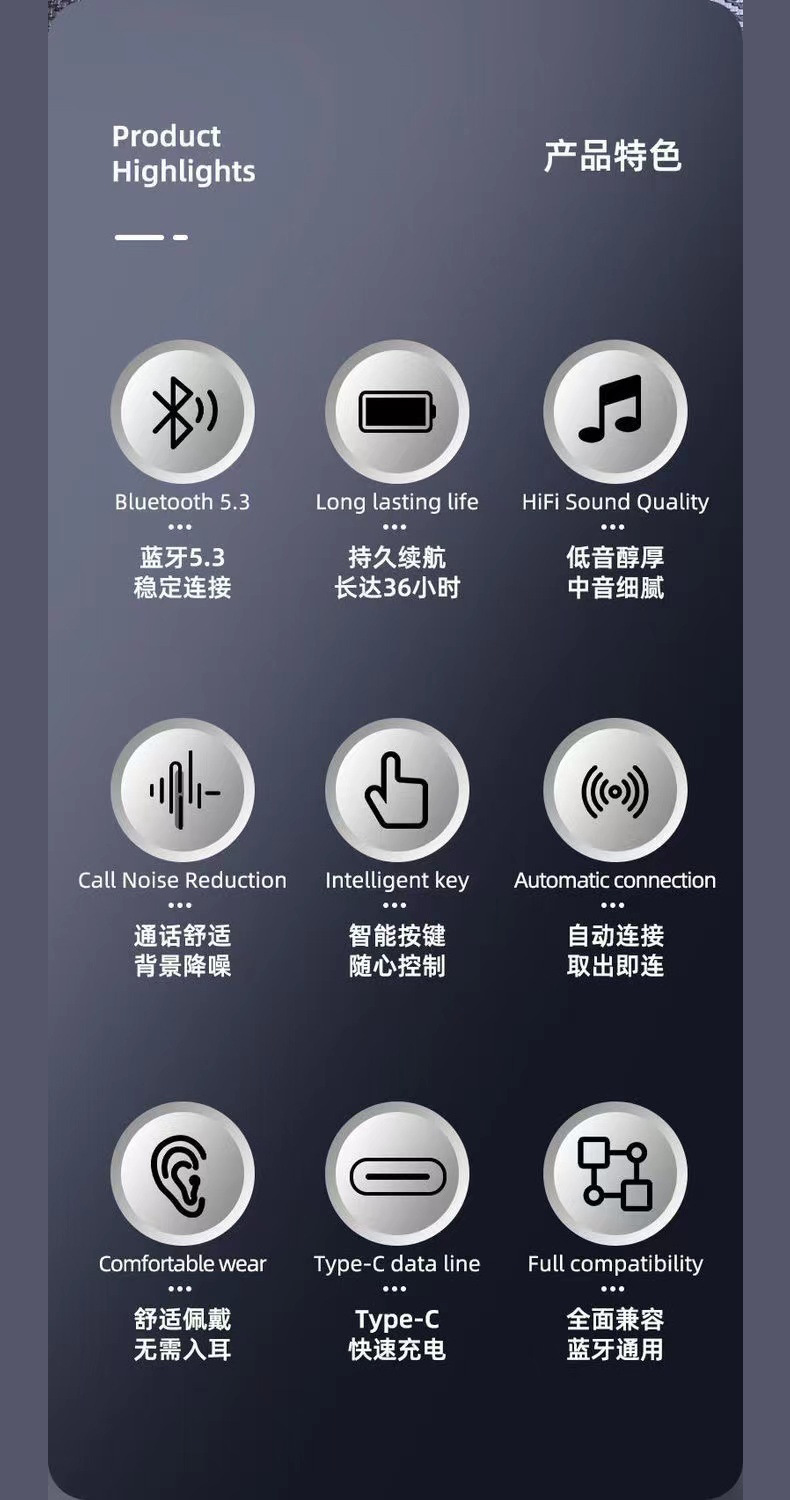 Cross border Bluetooth earphones T7500 non in ear sports clip on earphones with ultra long battery life and wireless gaming earphones