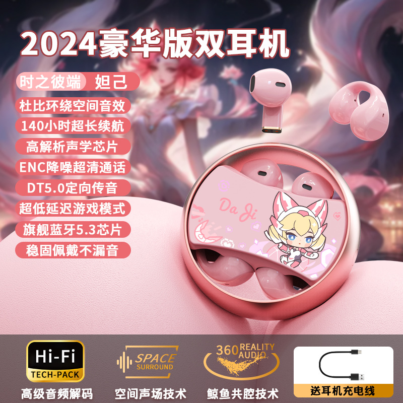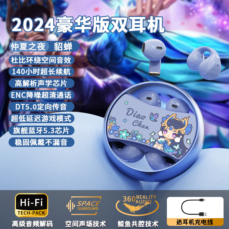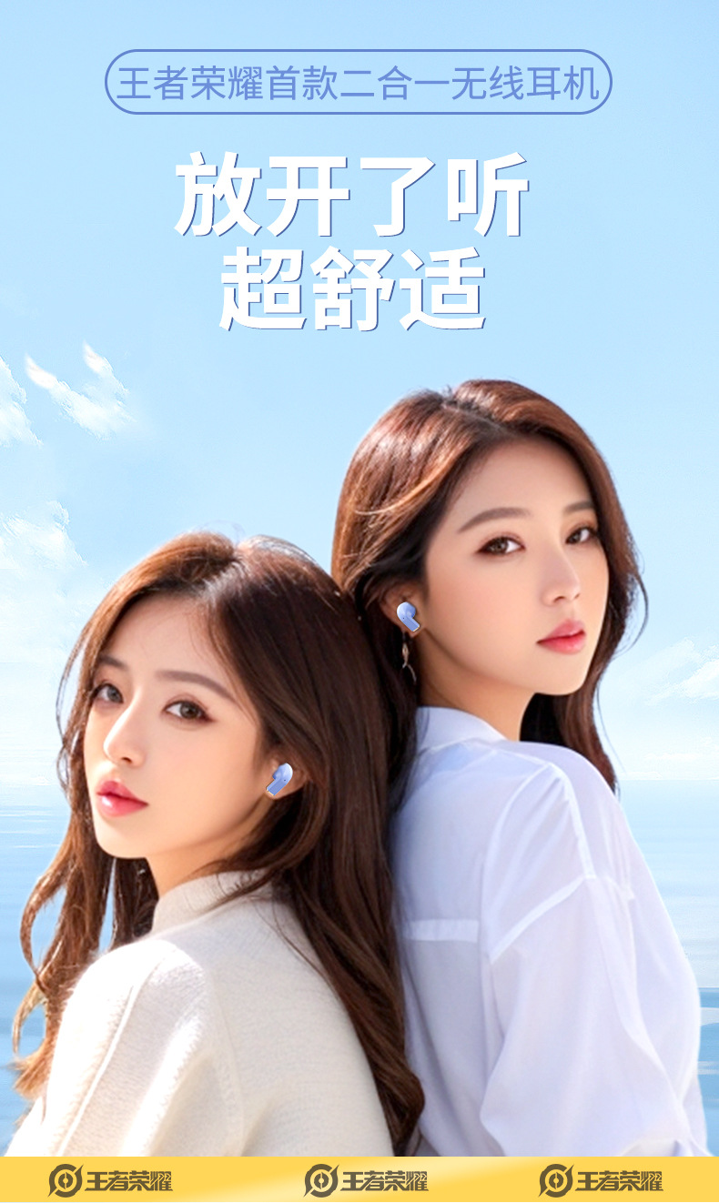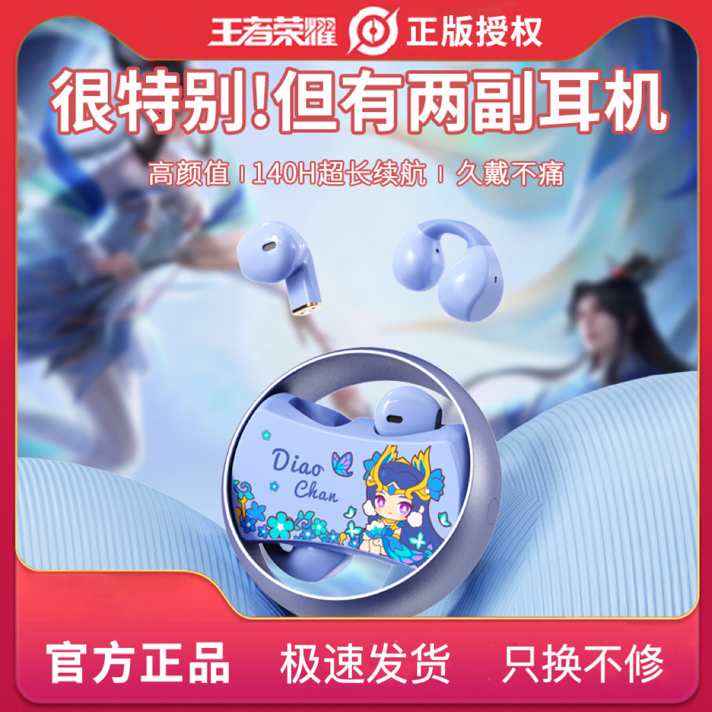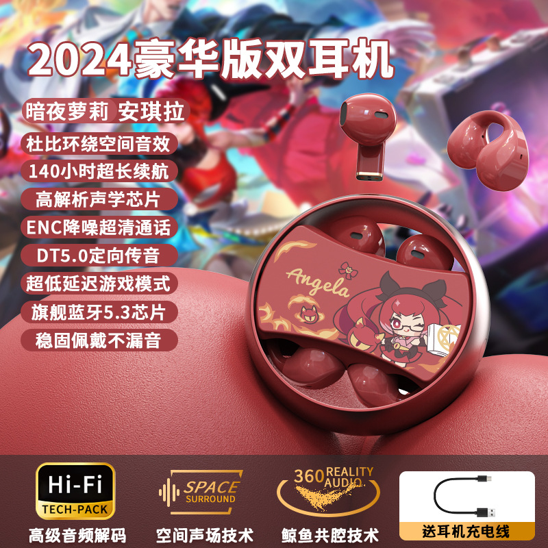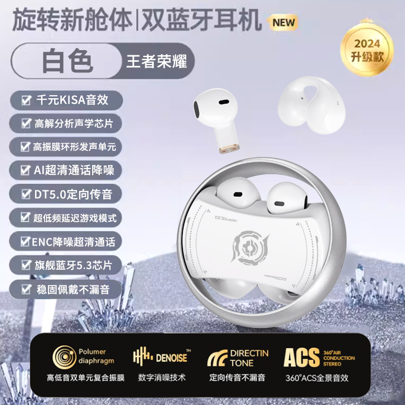 King of Glory Dual ear Wireless Bluetooth Earbuds with In Ear Clip for Dual purpose Esports Gaming Noise Reduction Metal Rotatable
