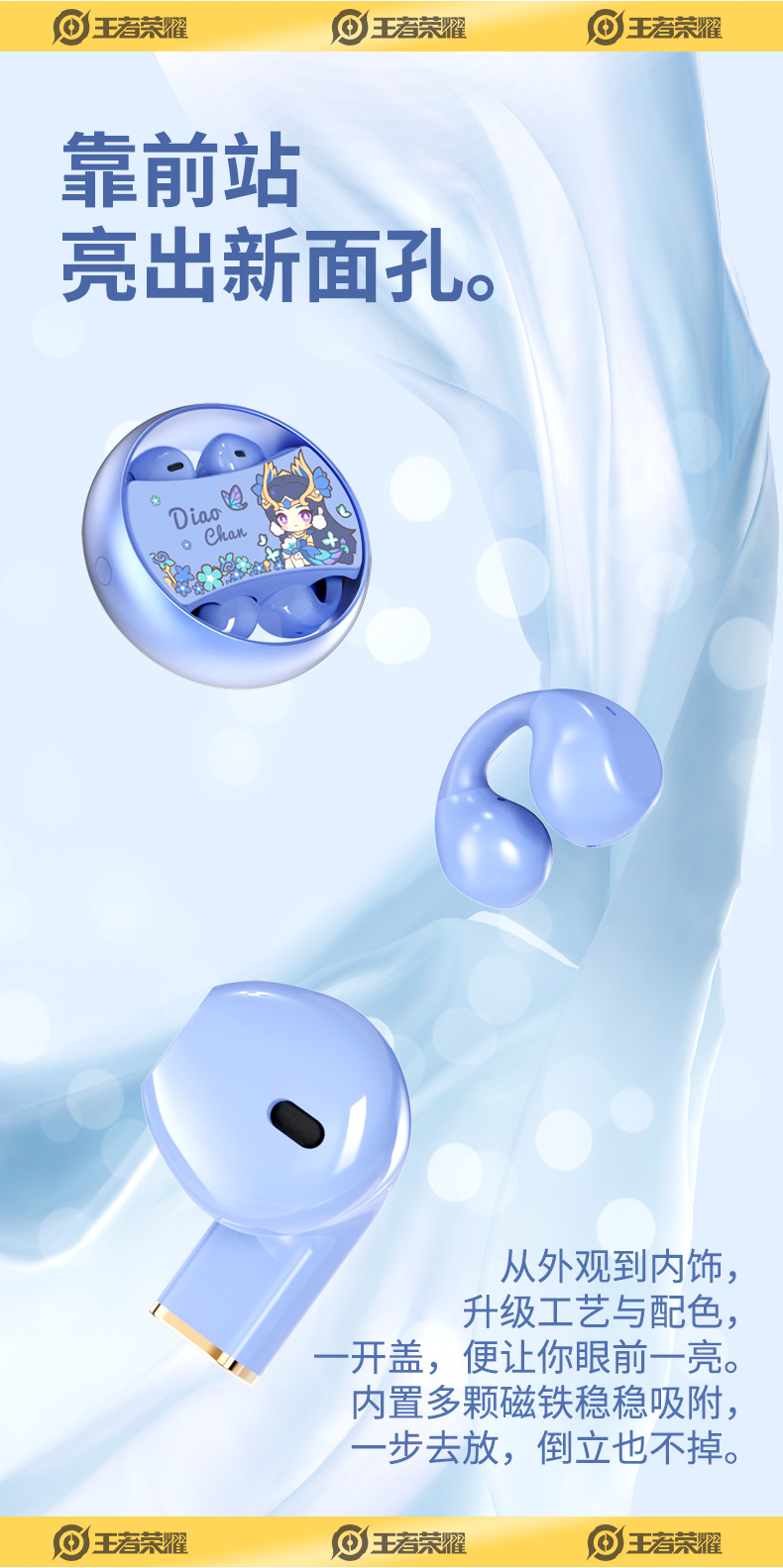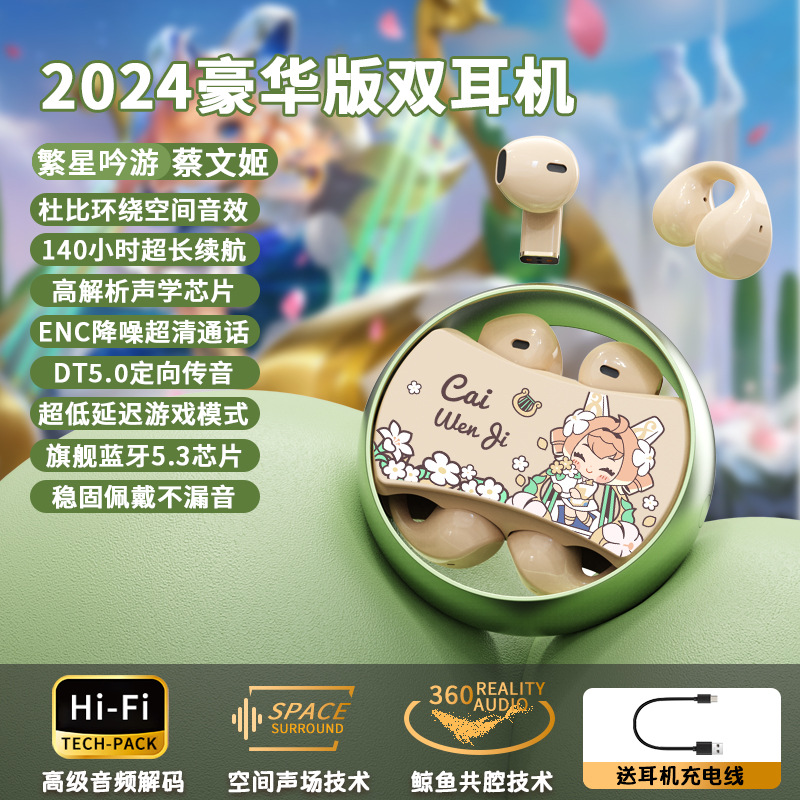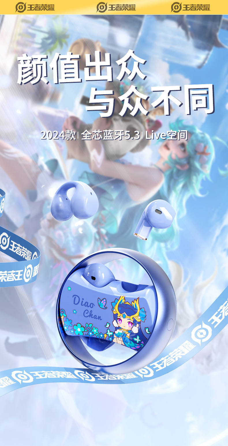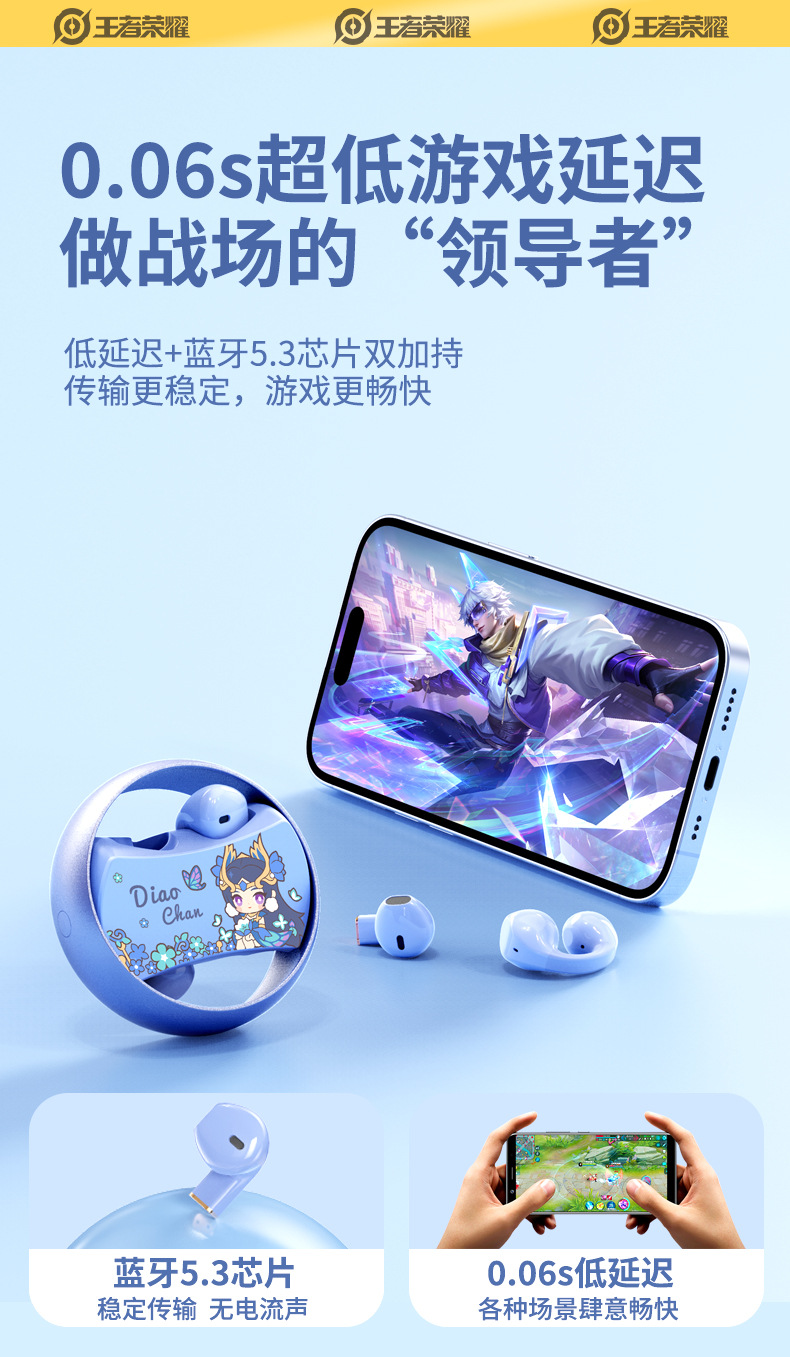King of Glory Dual ear Wireless Bluetooth Earbuds with In Ear Clip for Dual purpose Esports Gaming Noise Reduction Metal Rotatable