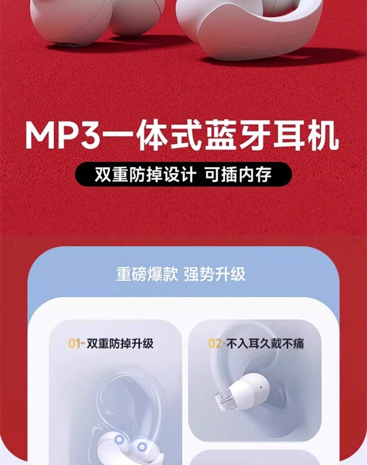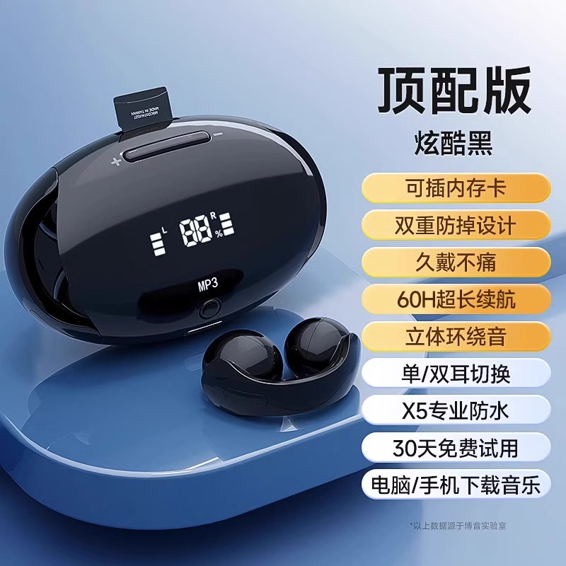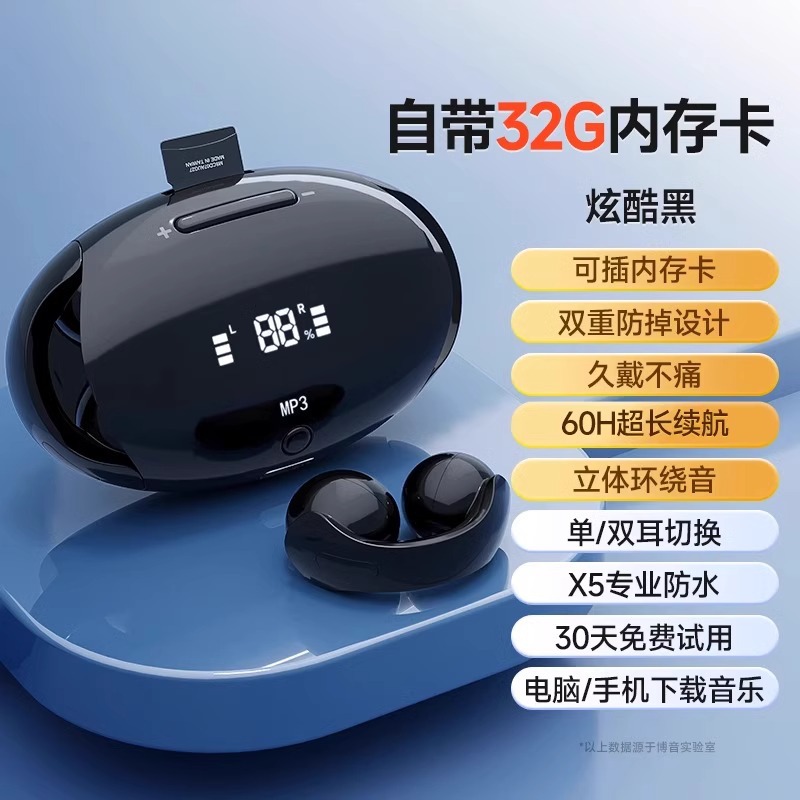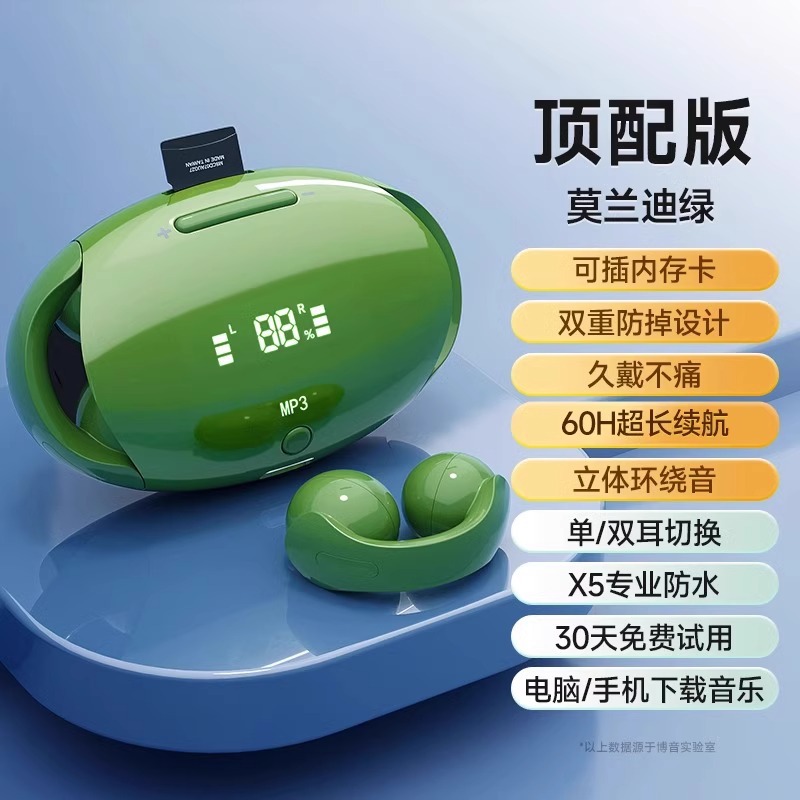 MP3 card insertable Bluetooth wireless earphones for sports and running, with built-in memory and integrated SD for music