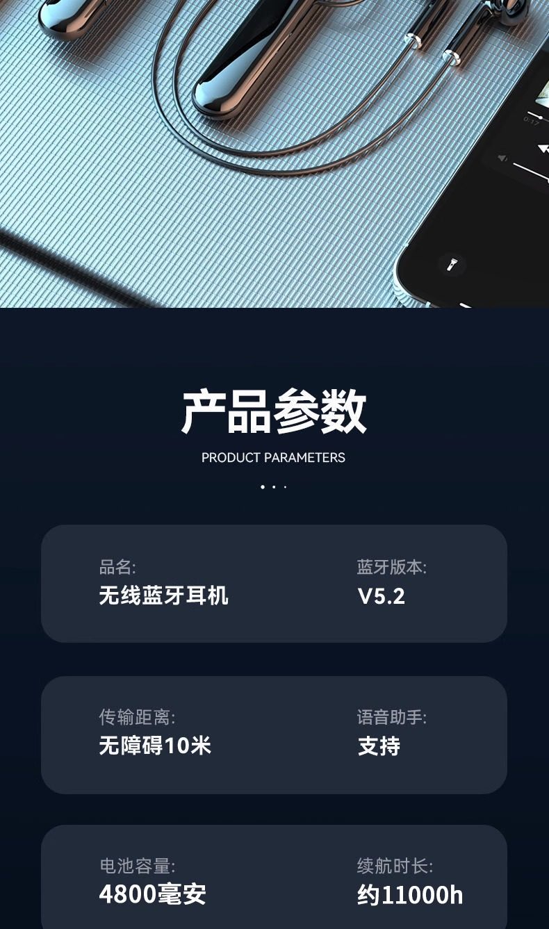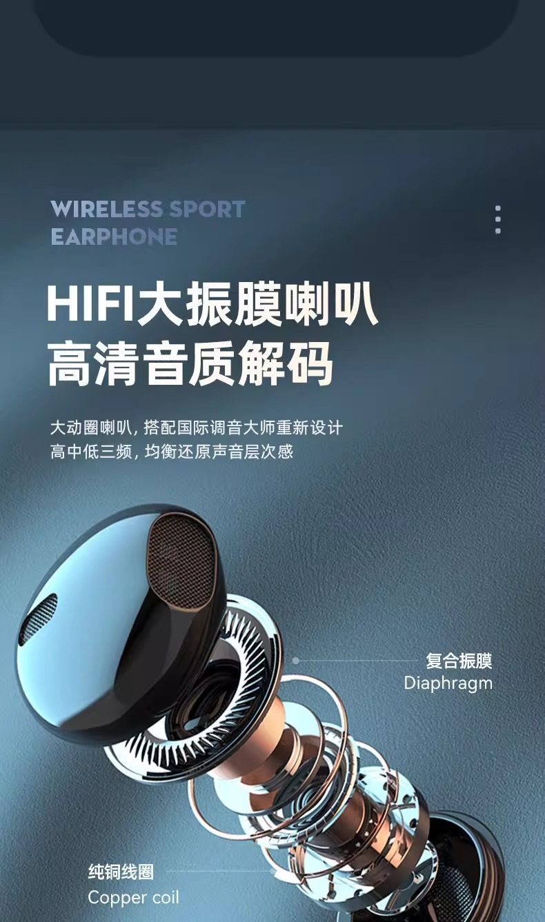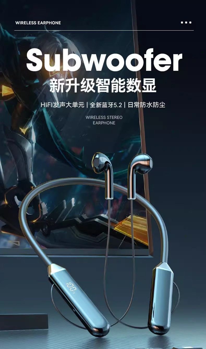 Bluetooth earphones, neck hanging sports, ultra long standby, mobile phone, universal stereo, long battery life, ear hanging style, new model