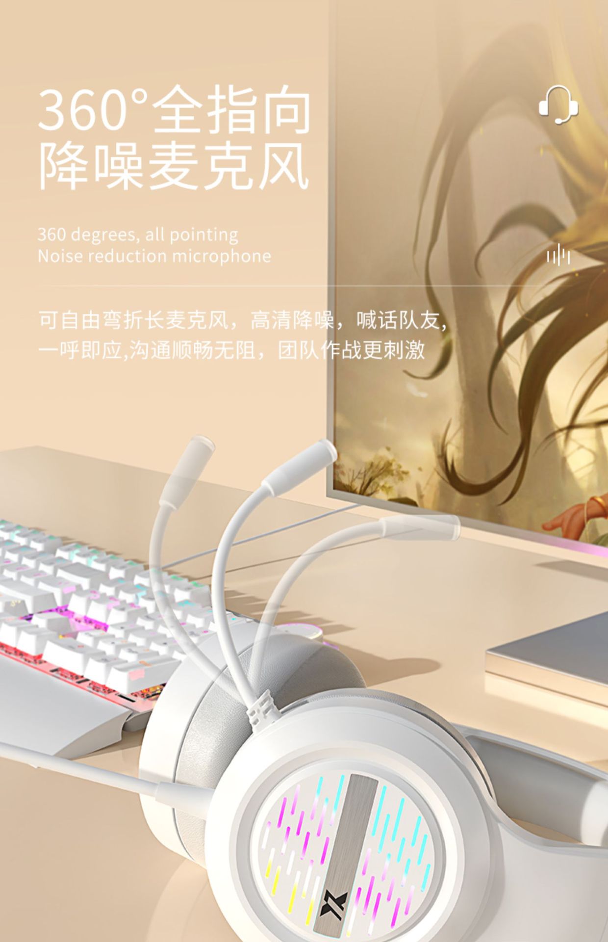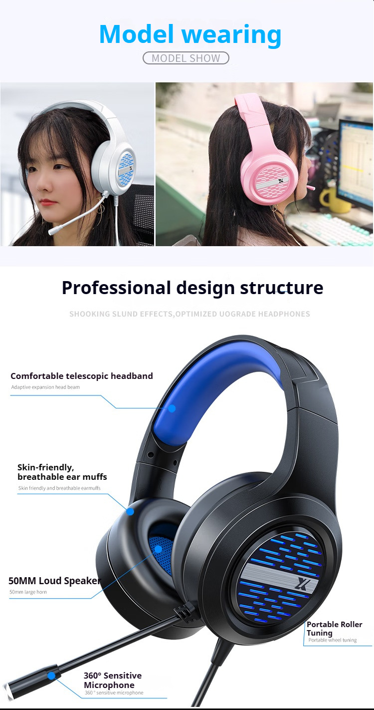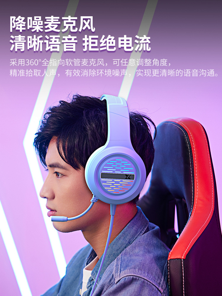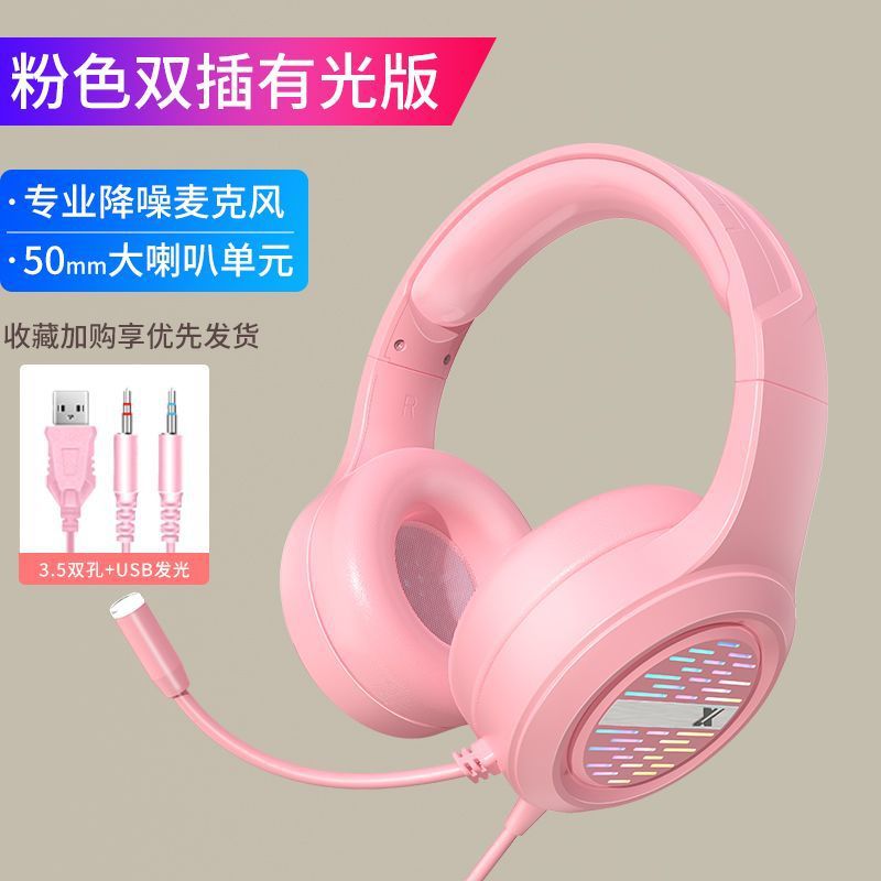 Forerunner X12 Head mounted Earphones for Gaming, Esports, Wired USB, Dedicated Internet Cafe Laptop, Pink Noise Reduction