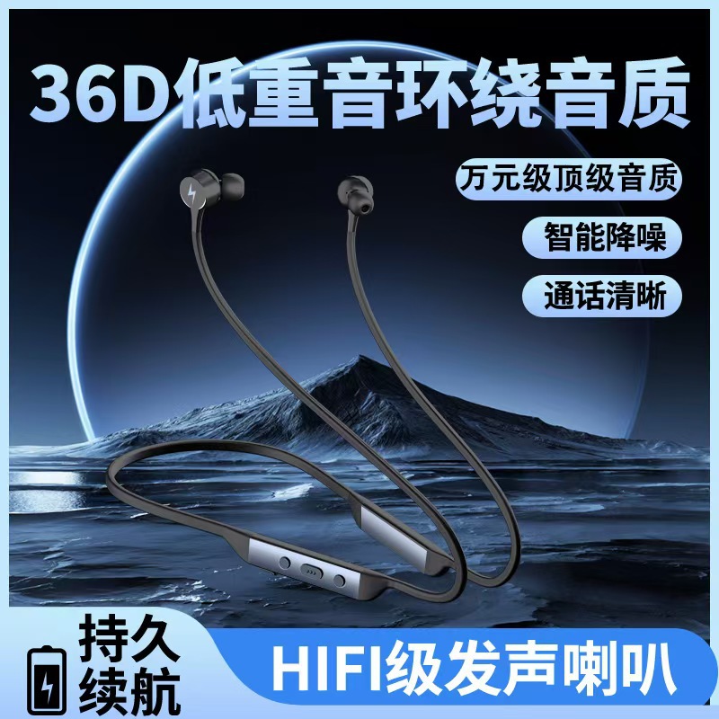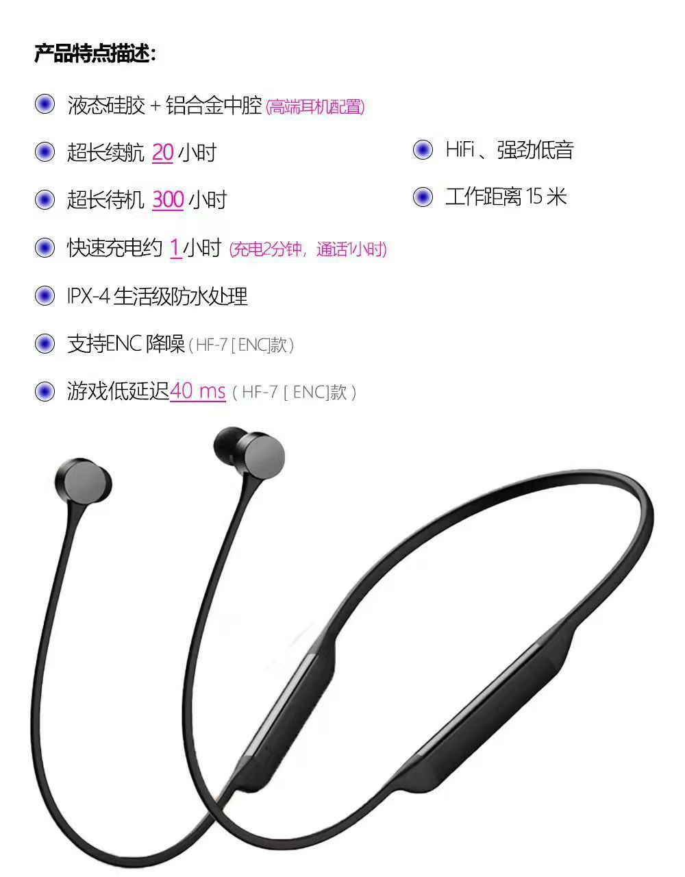 Cross border HF-7 neck hanging fast charging sports noise cancelling Bluetooth earphones with ultra long standby and true 3D neck hanging sports earphones