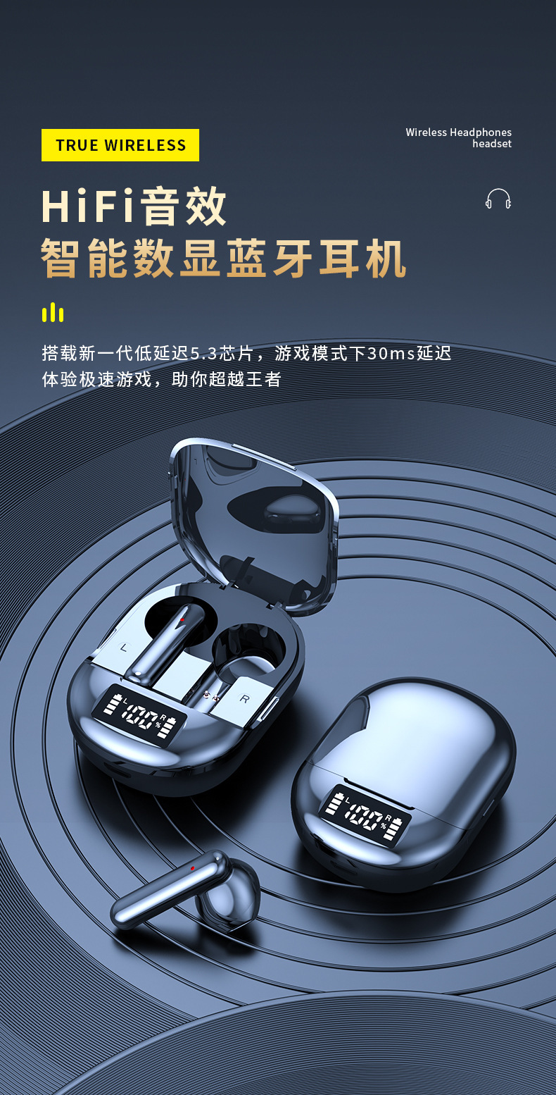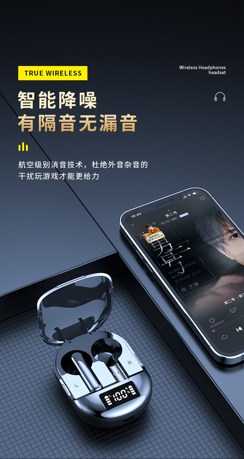 Cross border private model new product K40 wireless Bluetooth earphones TWS 5.3 digital display low latency in ear Bluetooth earphones