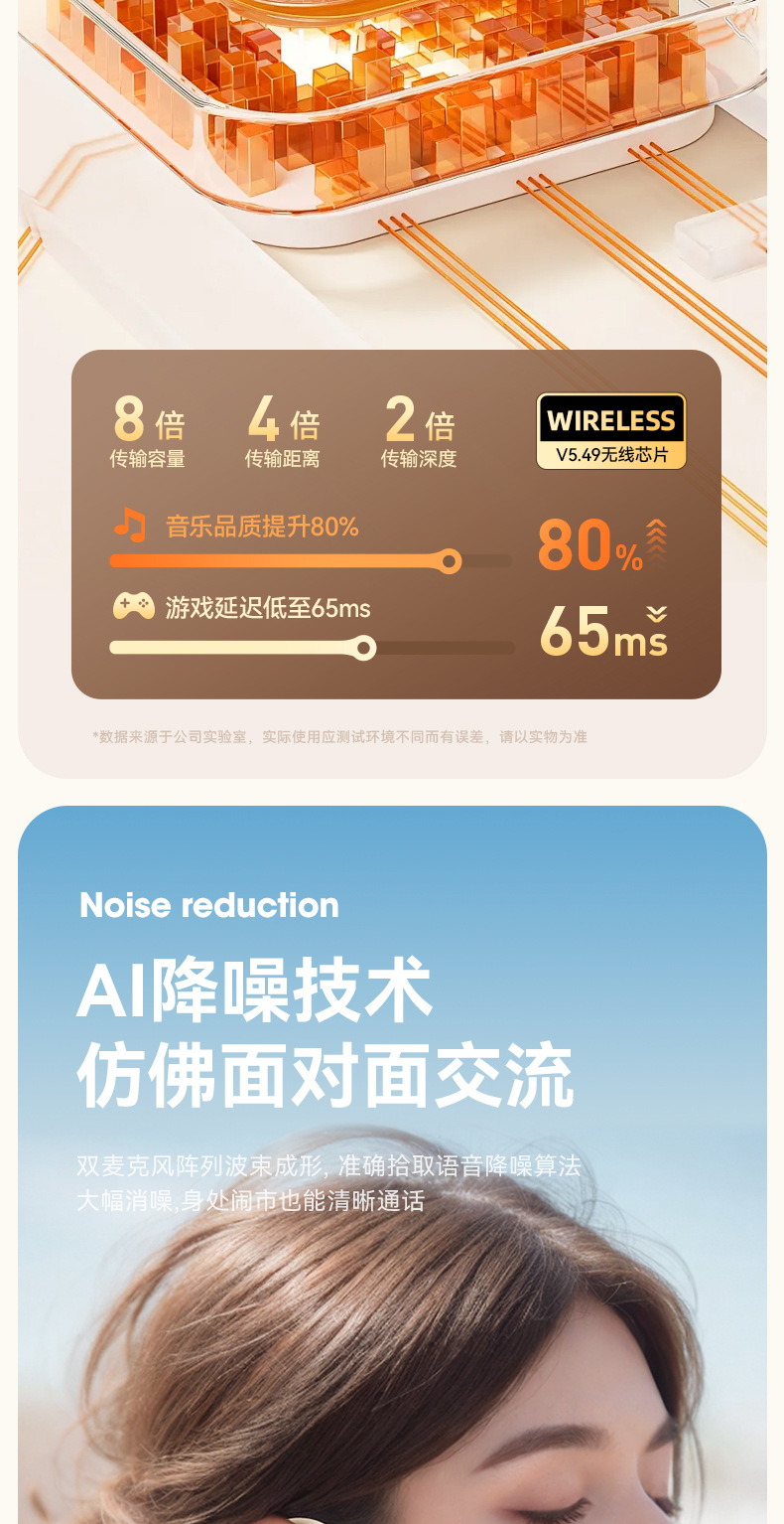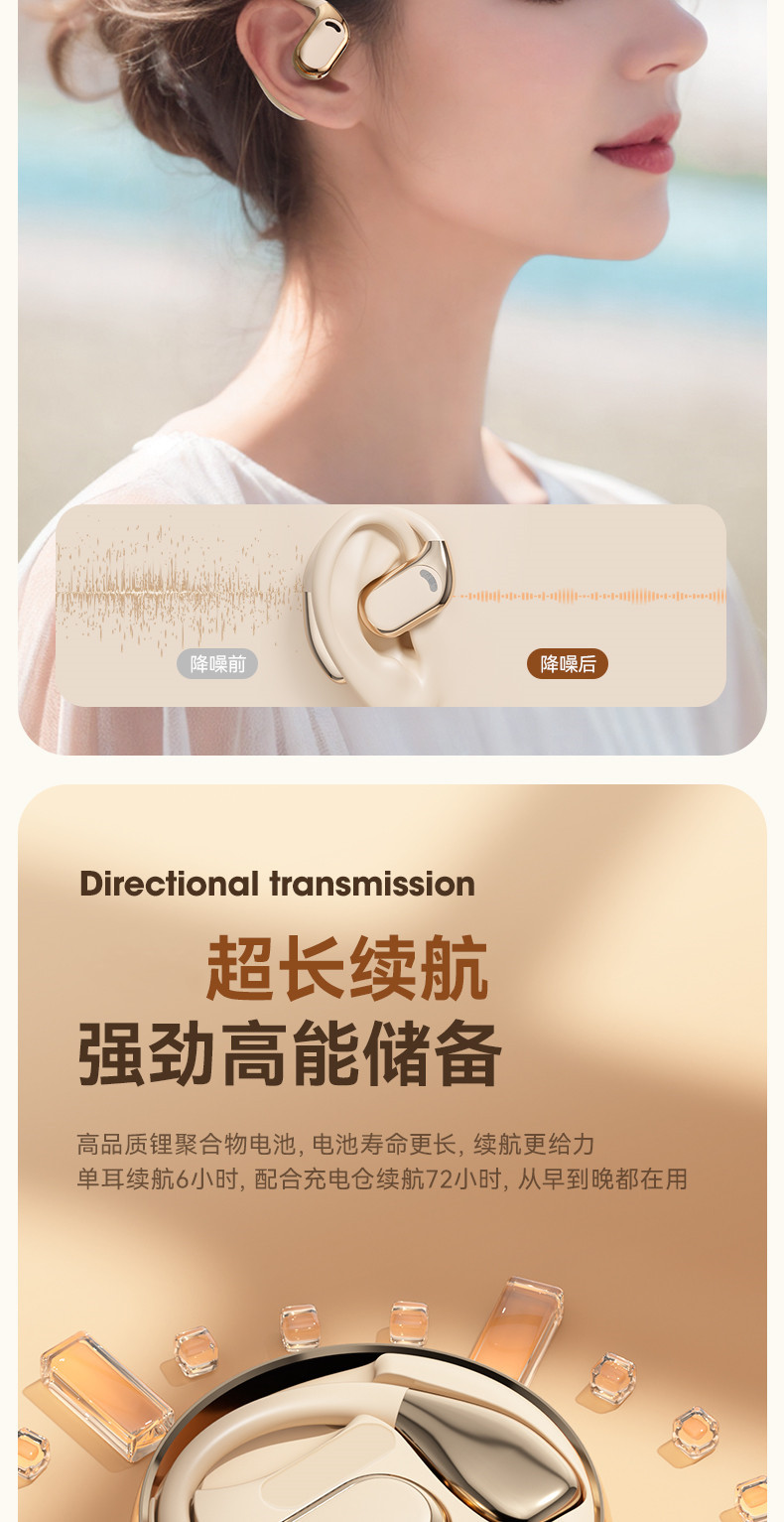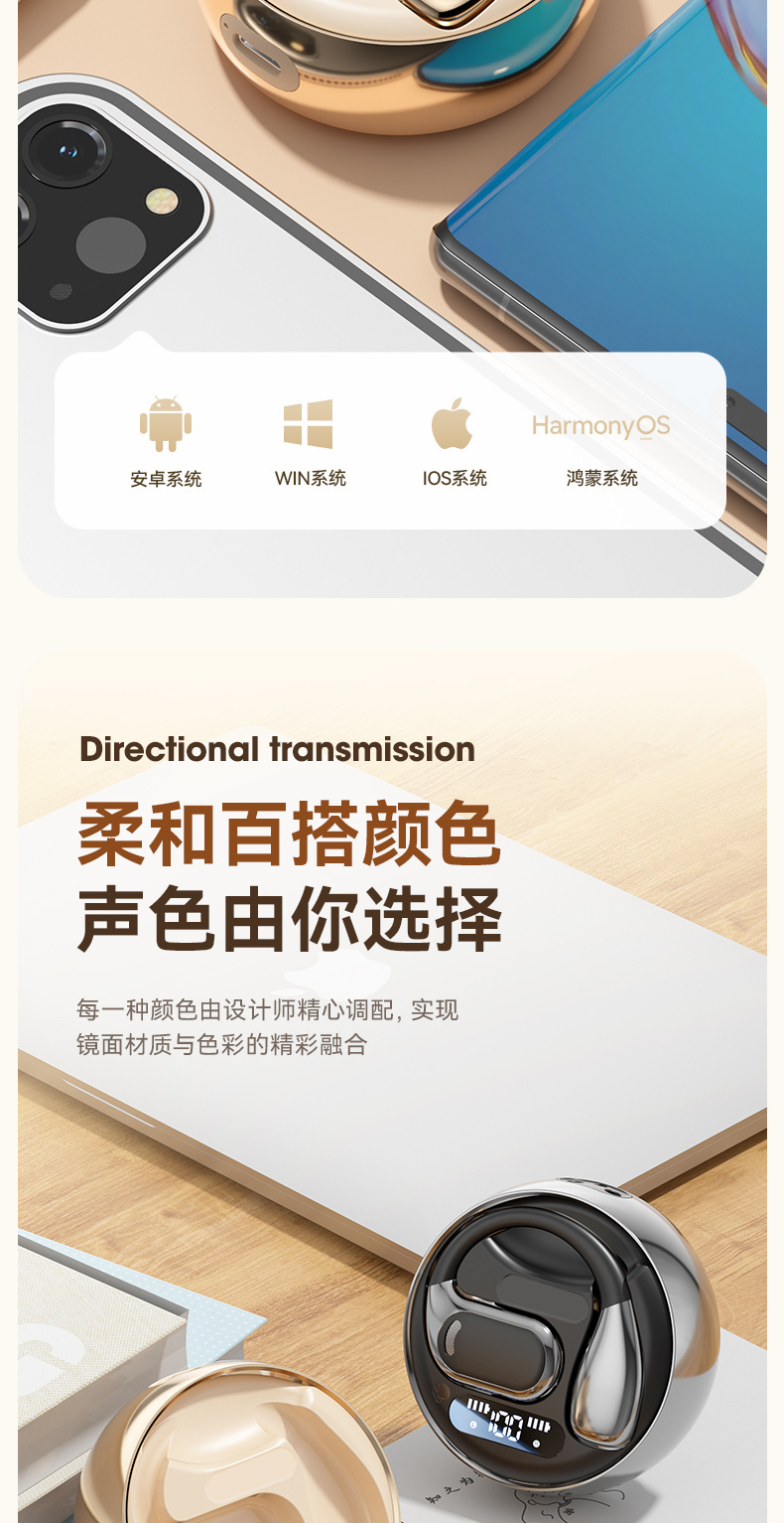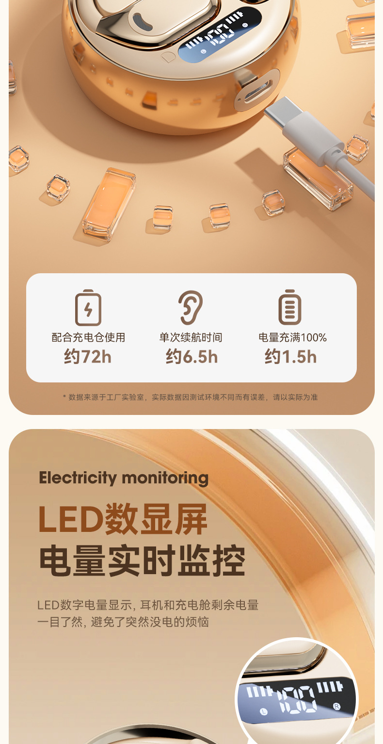 New popular M76 Bluetooth earphones with high power display, high-quality noise reduction, no in ear suspension, and ultra long battery life