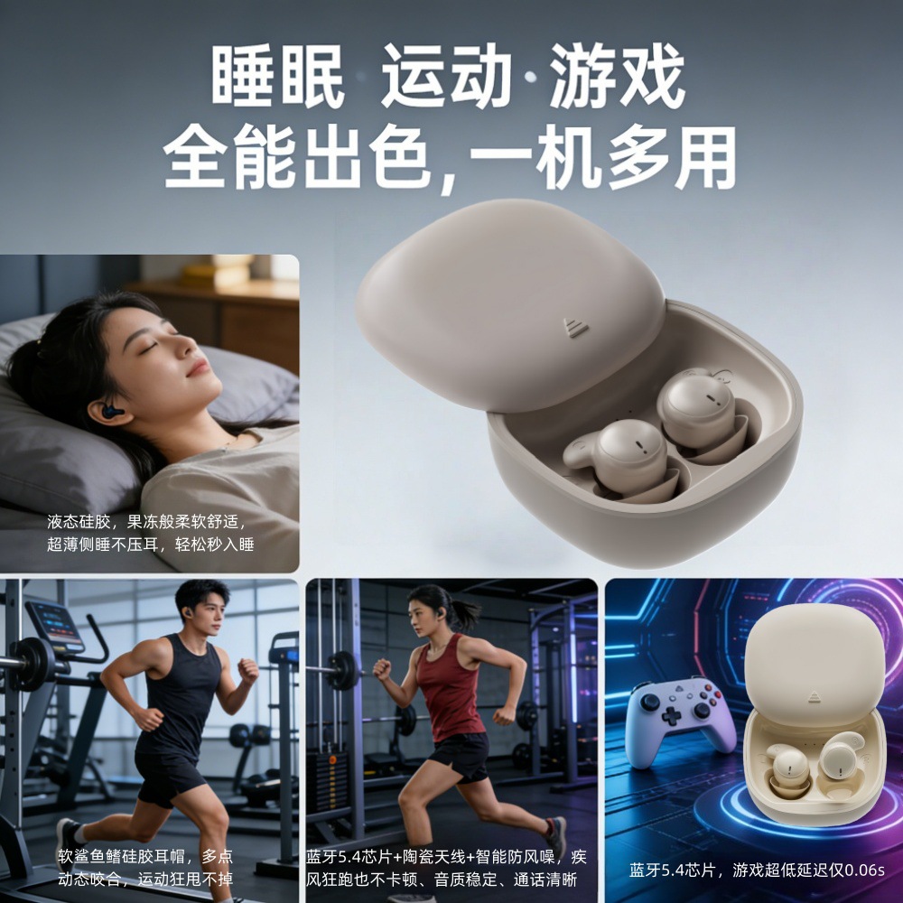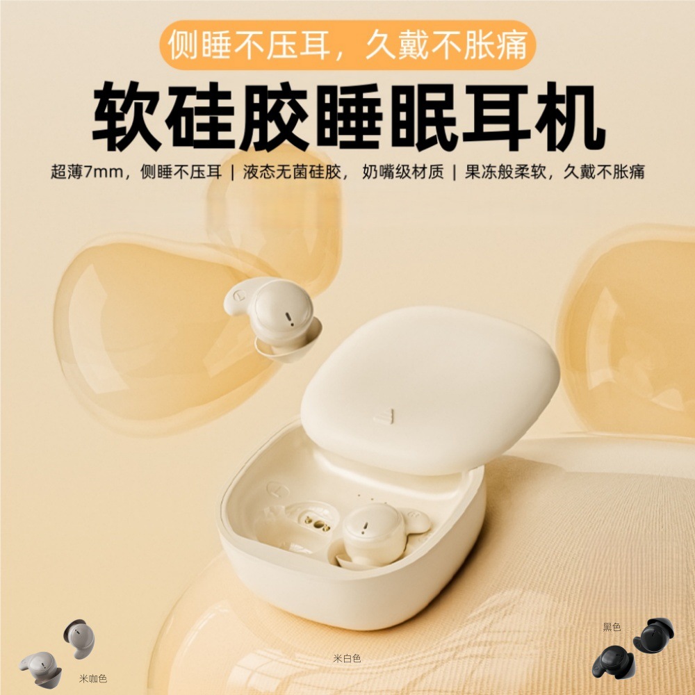 | 睡眠耳机侧睡不压耳 | 液态硅胶,果冻般柔软舒适,久戴不胀痛;超薄仅7mm,侧睡无痕不压耳,轻松秒入睡 |