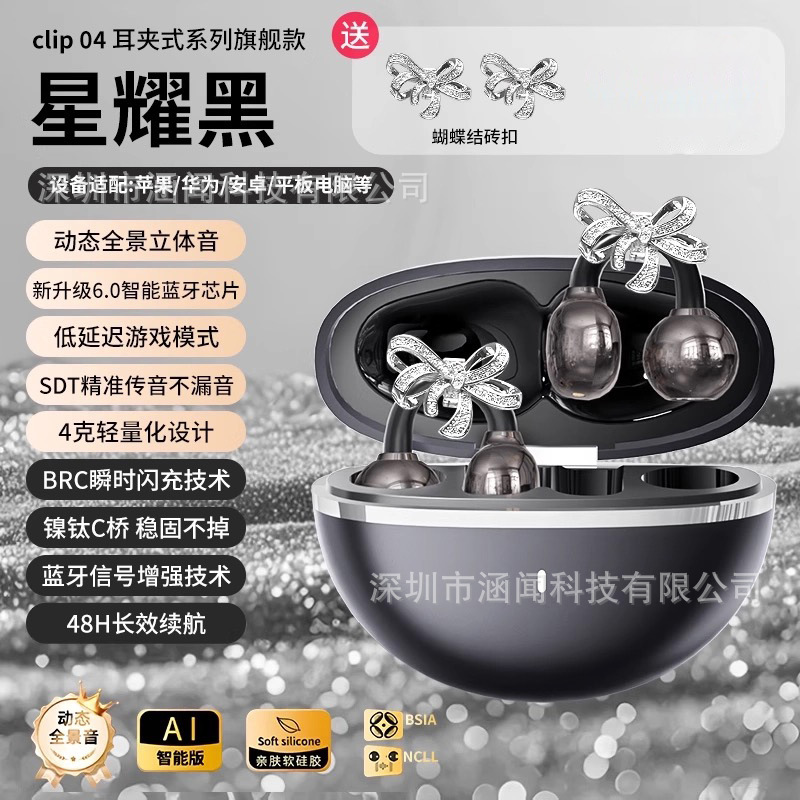 New butterfly diamond buckle earphones clip04 clip on star ring earphones with high-end niche design DIY earrings earphones