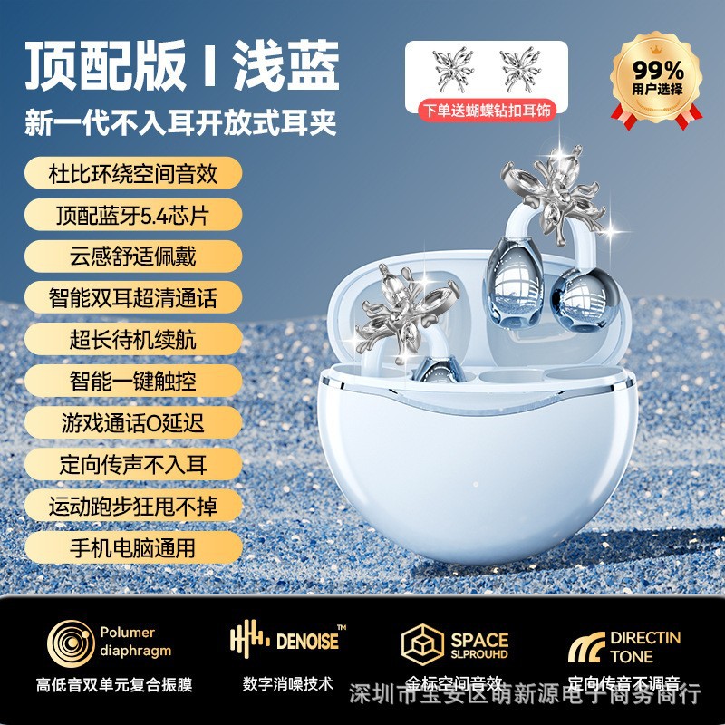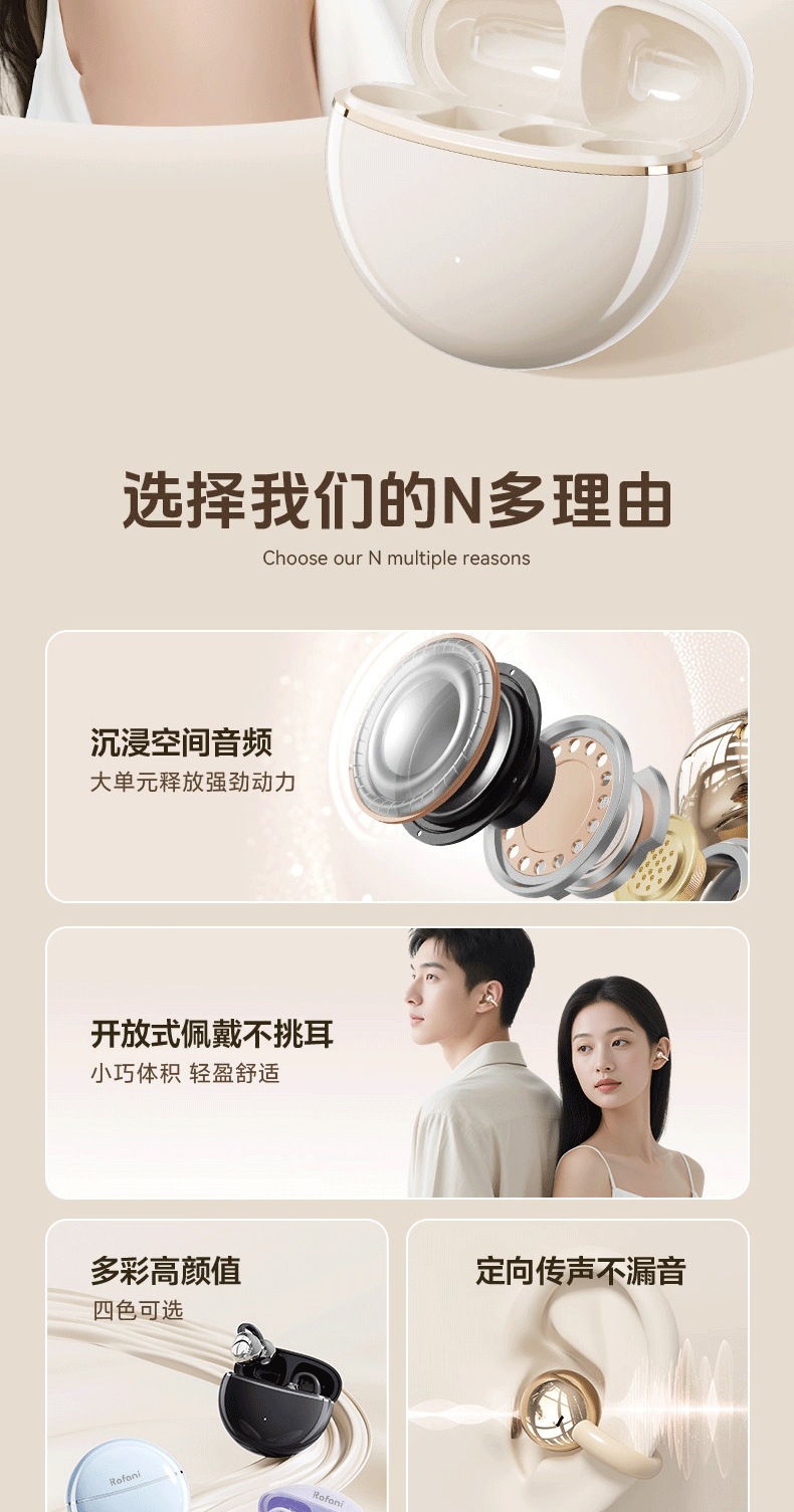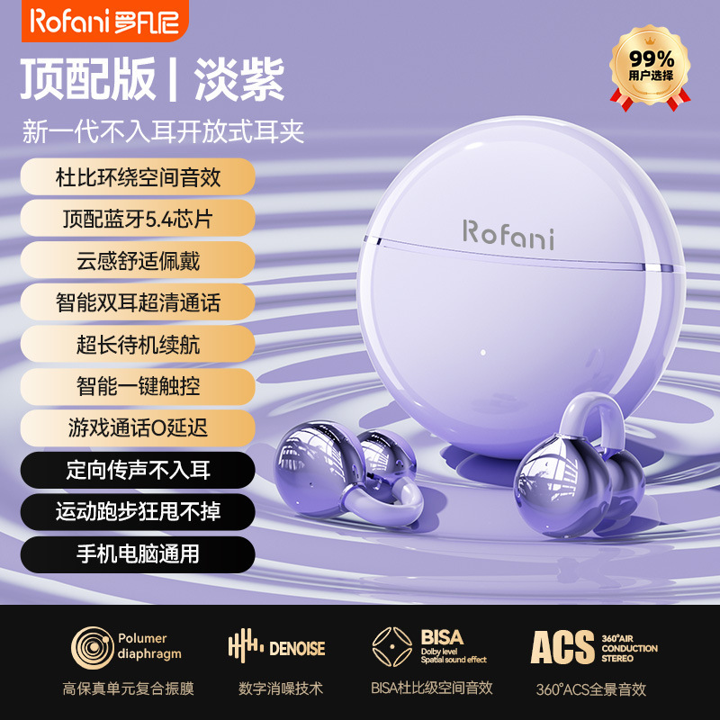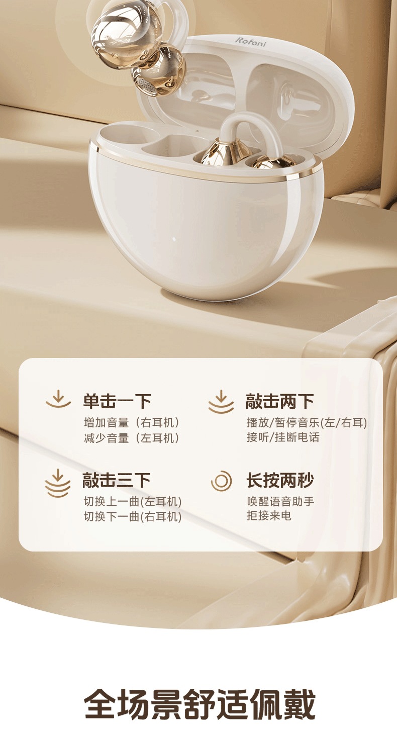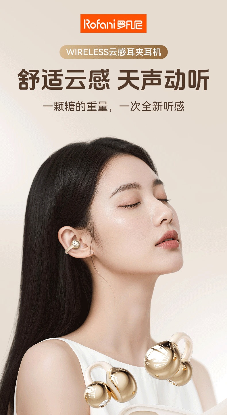 Rofani Bluetooth Earphones Aesthetic Cloud Comfort 5.4 Chip Non Stunning Ear Clip on Student Earphones