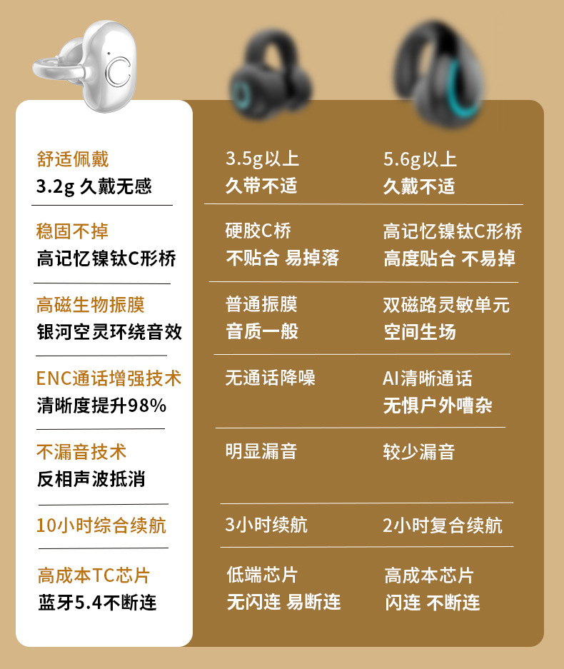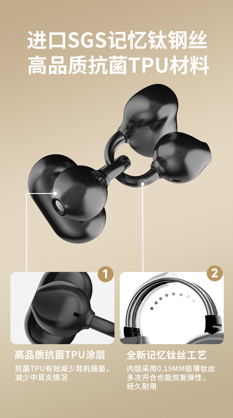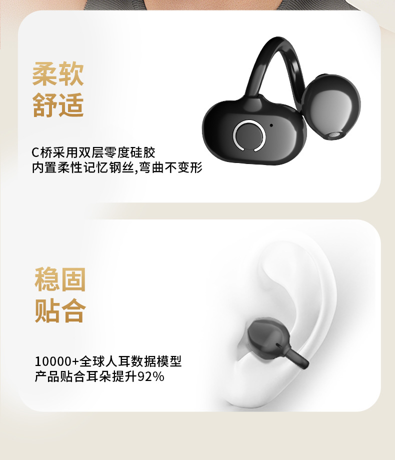 2025 new Bluetooth earphones with wireless ear clips for ultra long battery life, long-lasting standby without pain, bone conduction C-type ear clip